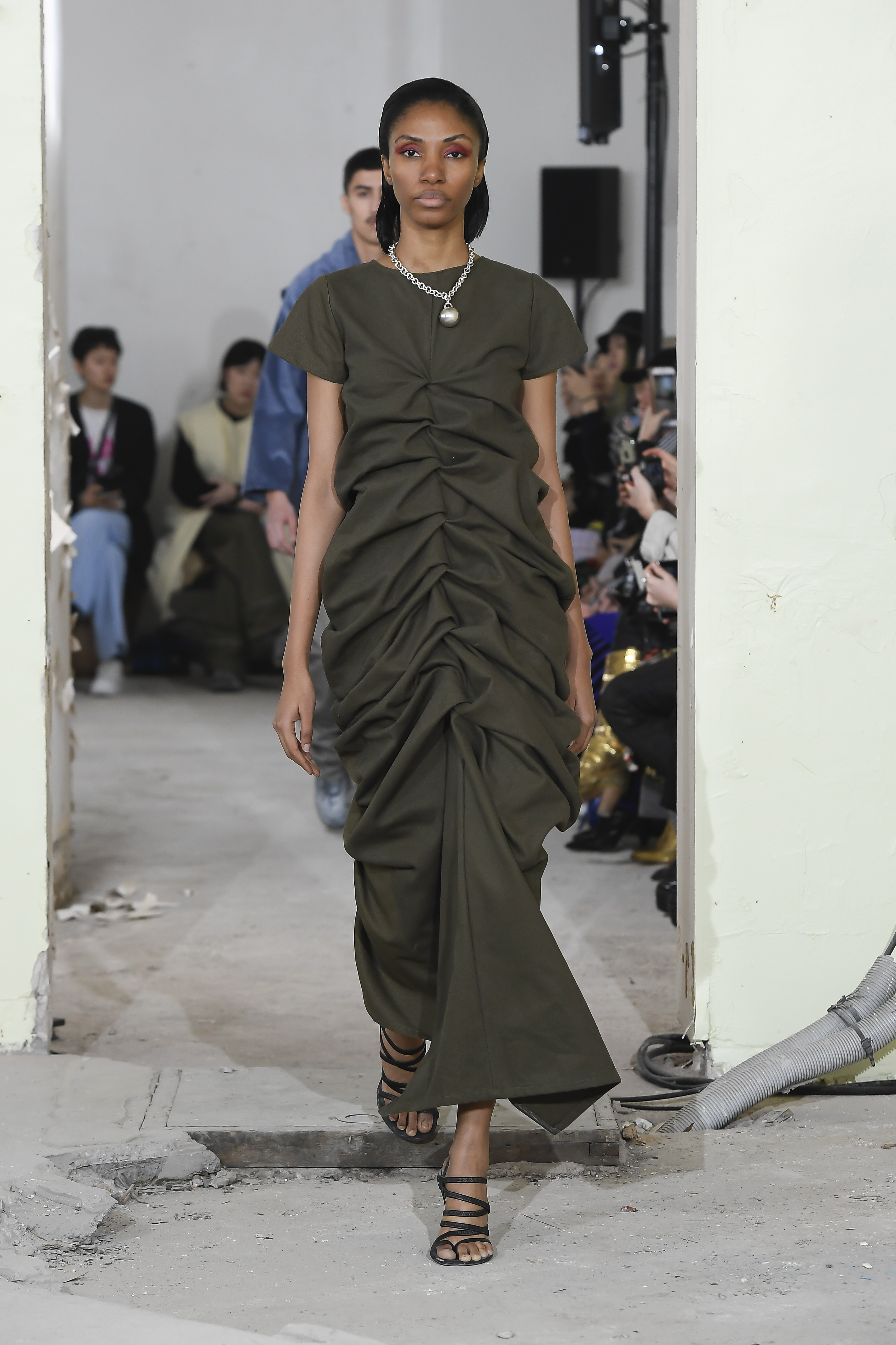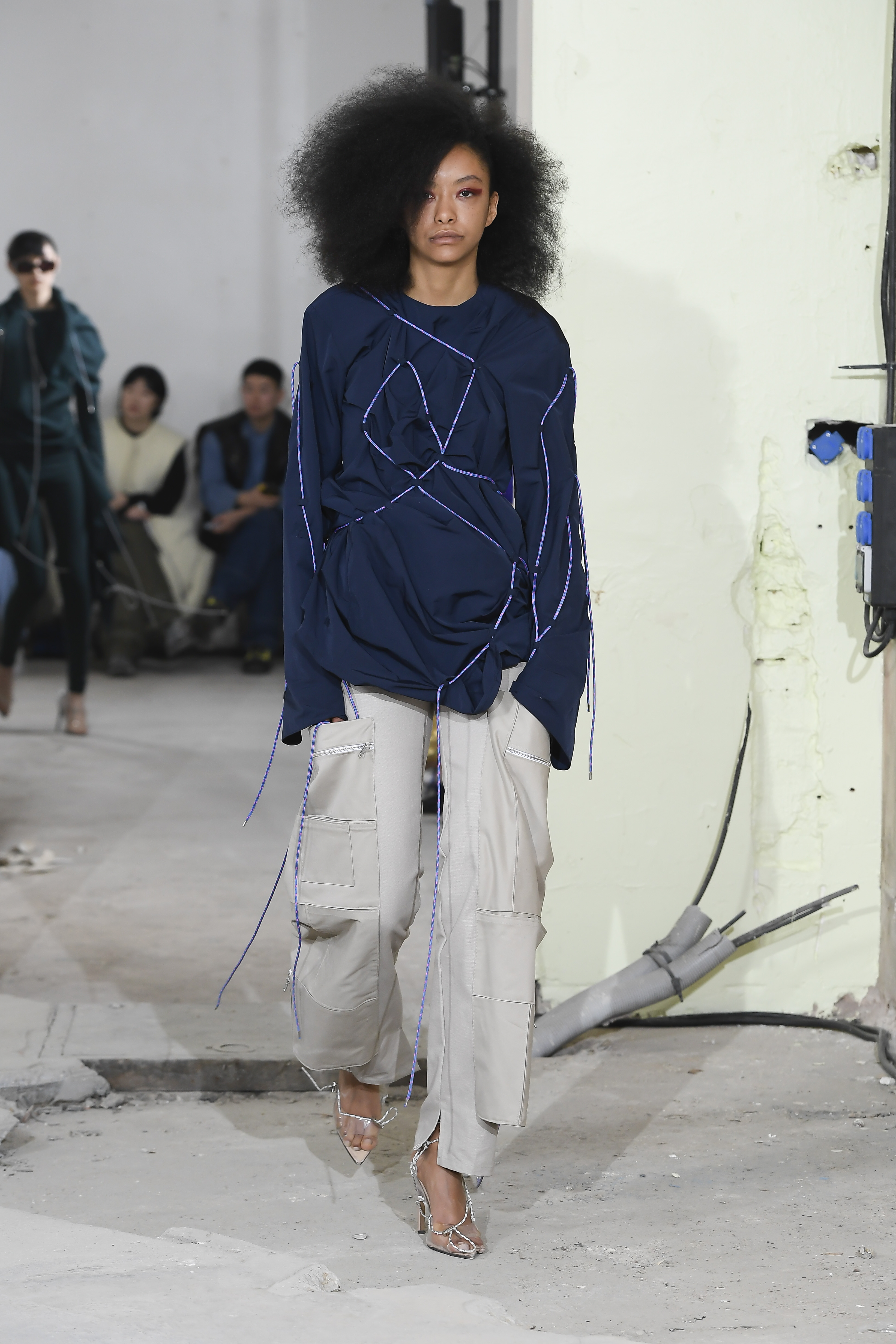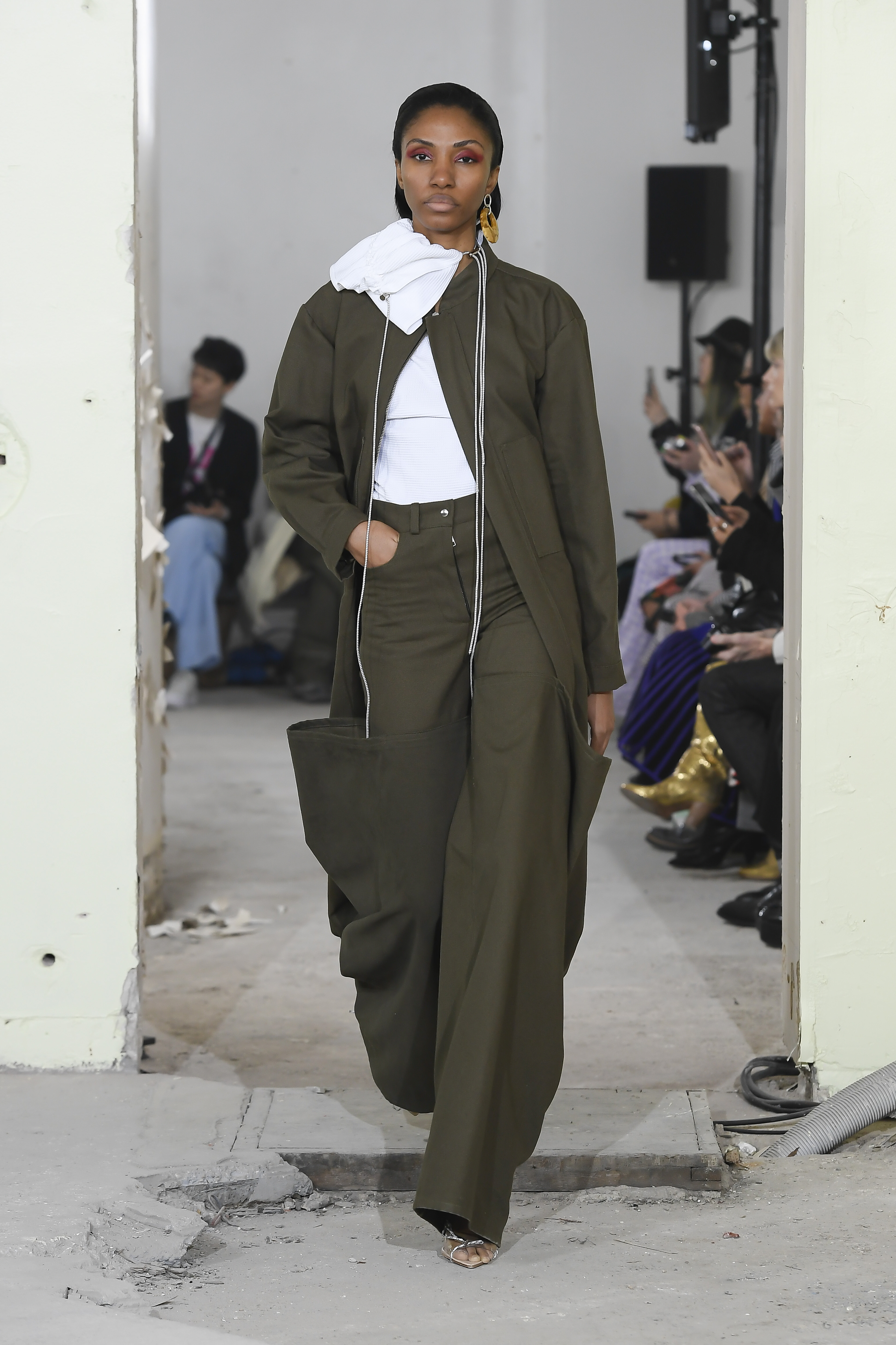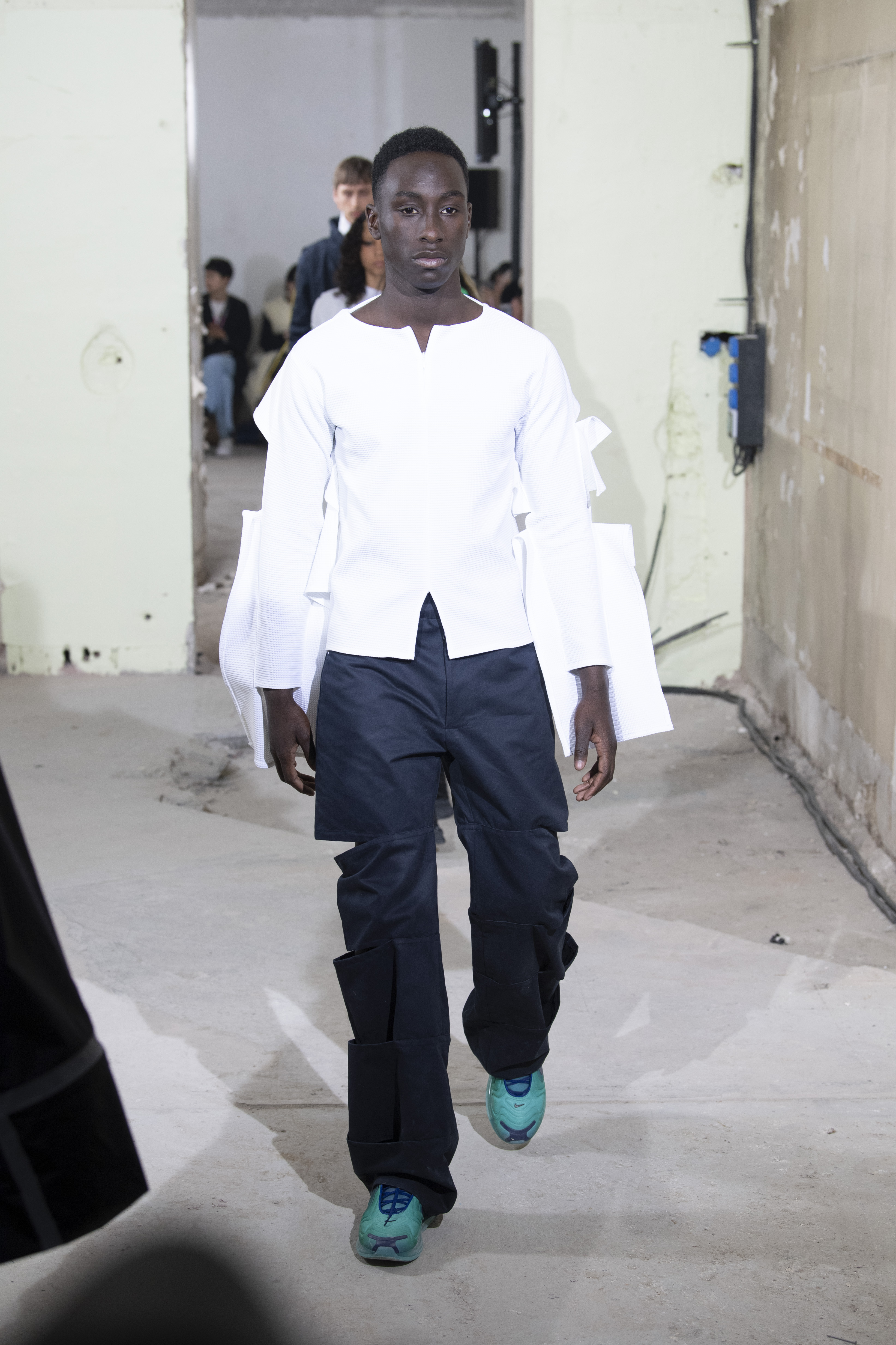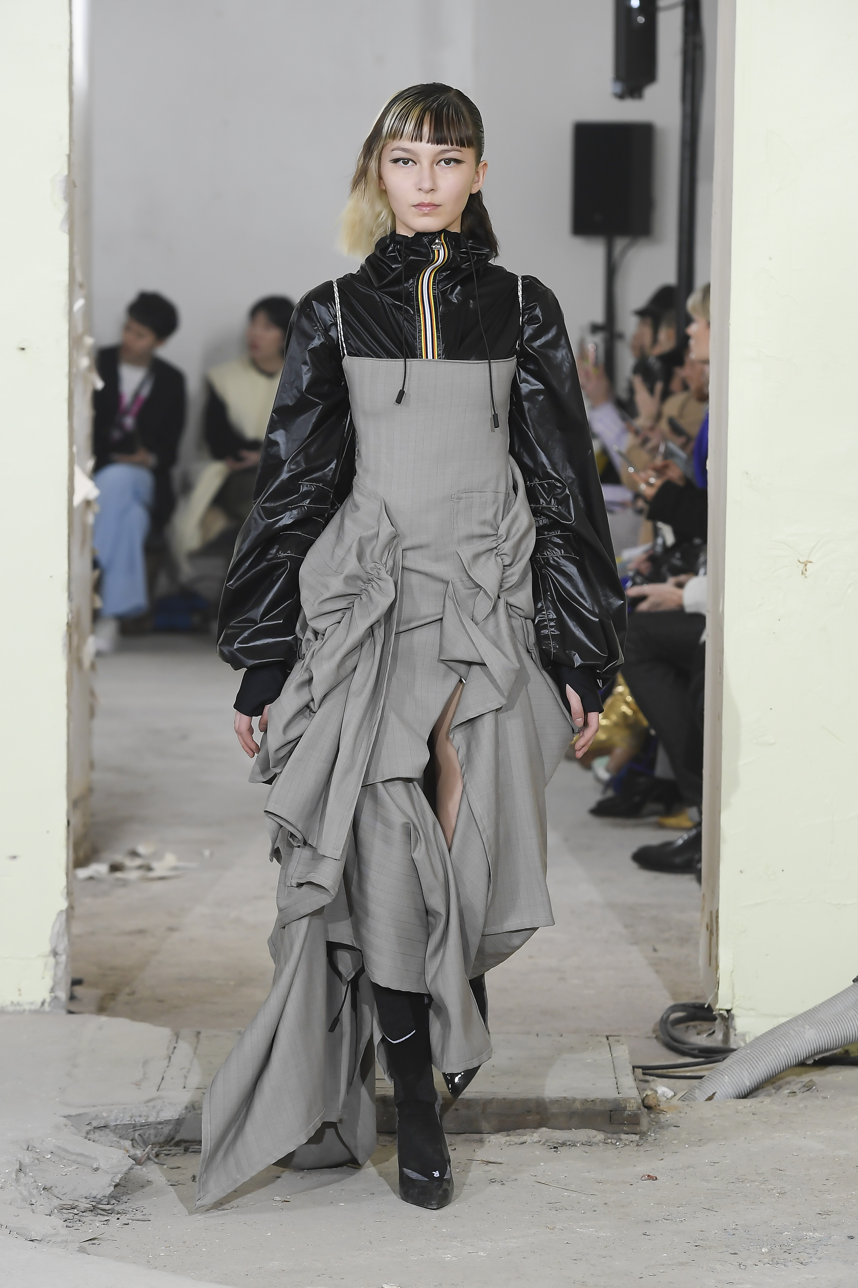Pour leur défilé automne-hiver 2019/2020, les silhouettes mélangent parfaitement les codes du streetwear et des techniques Couture. Une vision futuriste du monde qui les entoure, parfois gris, comme Paris un soir d’orage. C’est une réalité visiblement triste de notre époque que la marque nous propose avec des looks tout en volume accompagnés d’une touche de féminité. Découvrez dès maintenant toutes les silhouettes du défilé femme automne-hiver 2019/2020 de la marque Afterhomework (Paris).