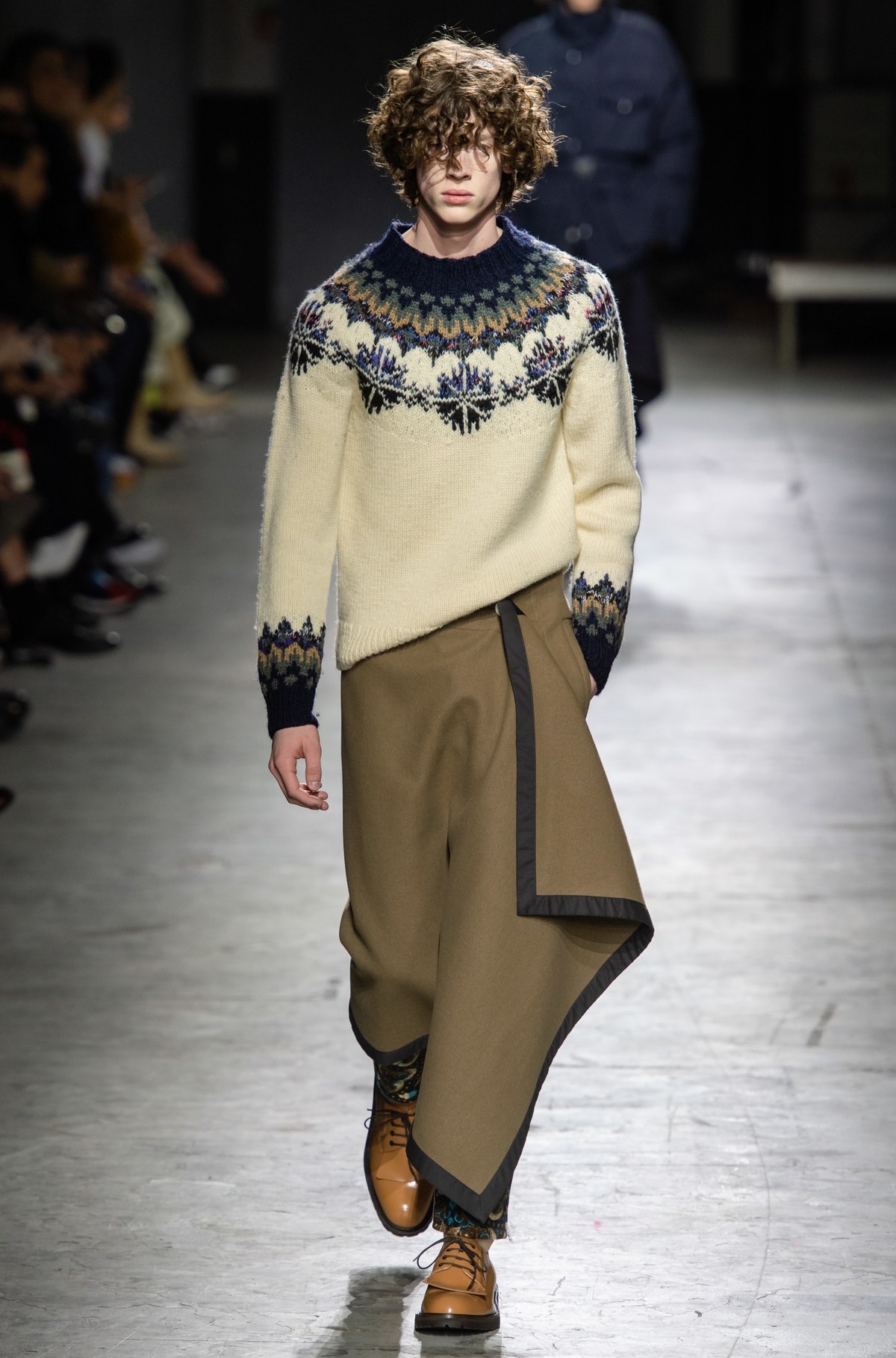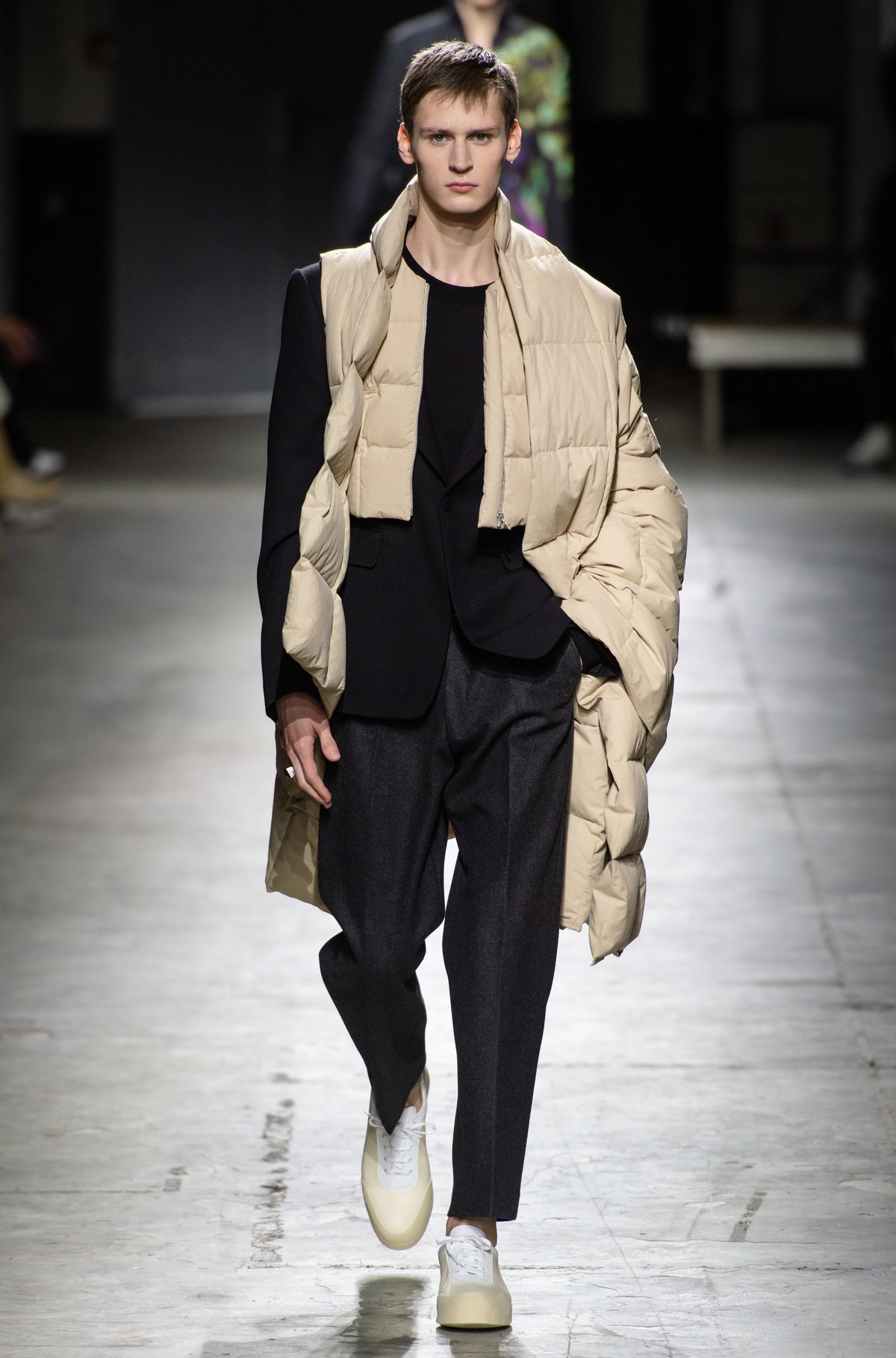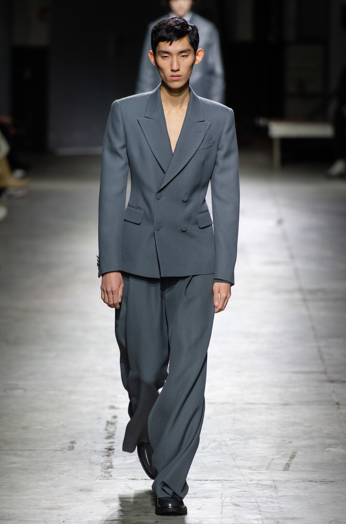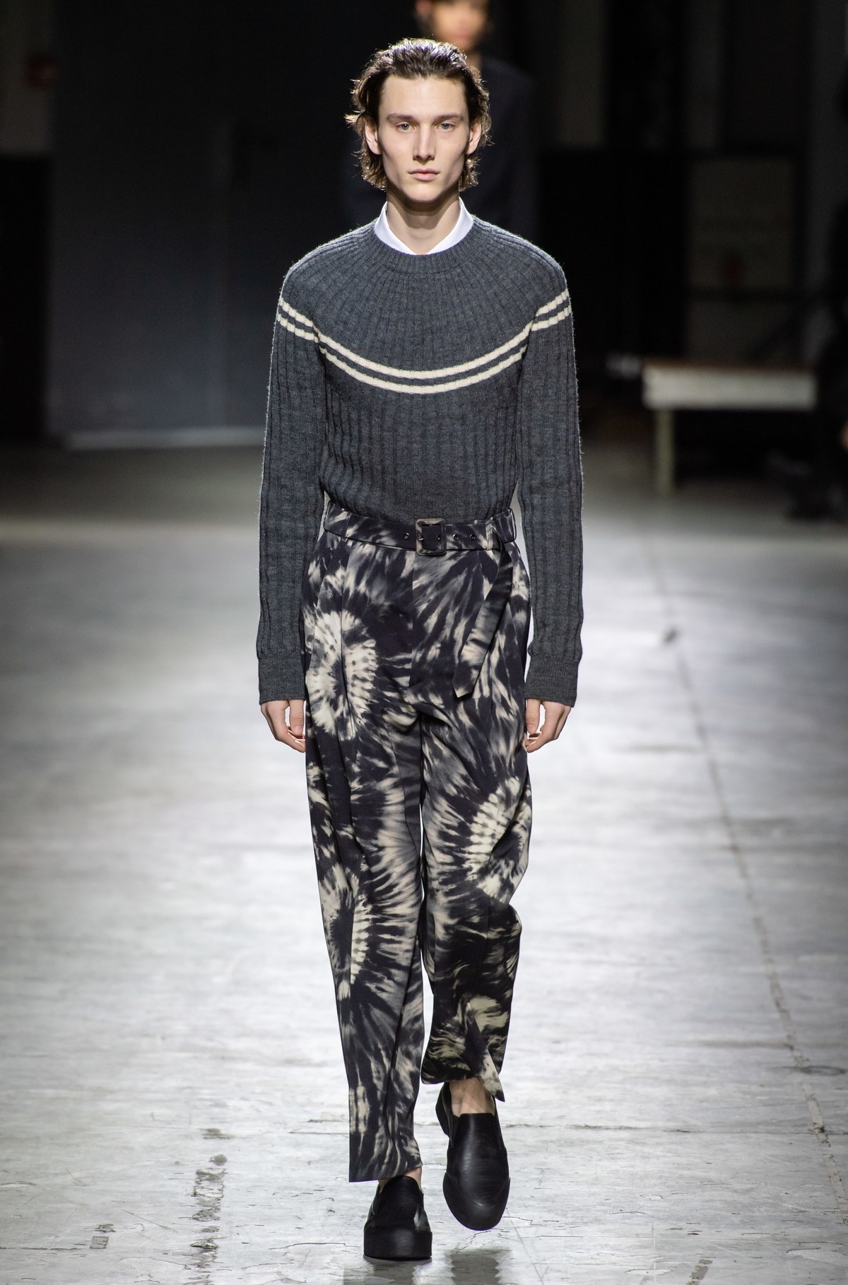 Le designer ne laisse rien au hasard. Notamment avec la bande son du défilé : une accumulation d’interviews de ses idoles, de David Bowie à Yves Saint Laurent en passant par David Hockney. Un choix qui vient soutenir un message fort : celui de s’habiller comme le héros que l’on veut être. Découvrez ci-dessous tous les looks du défilé homme automne-hiver 2019/2020 de Dries Van Noten.