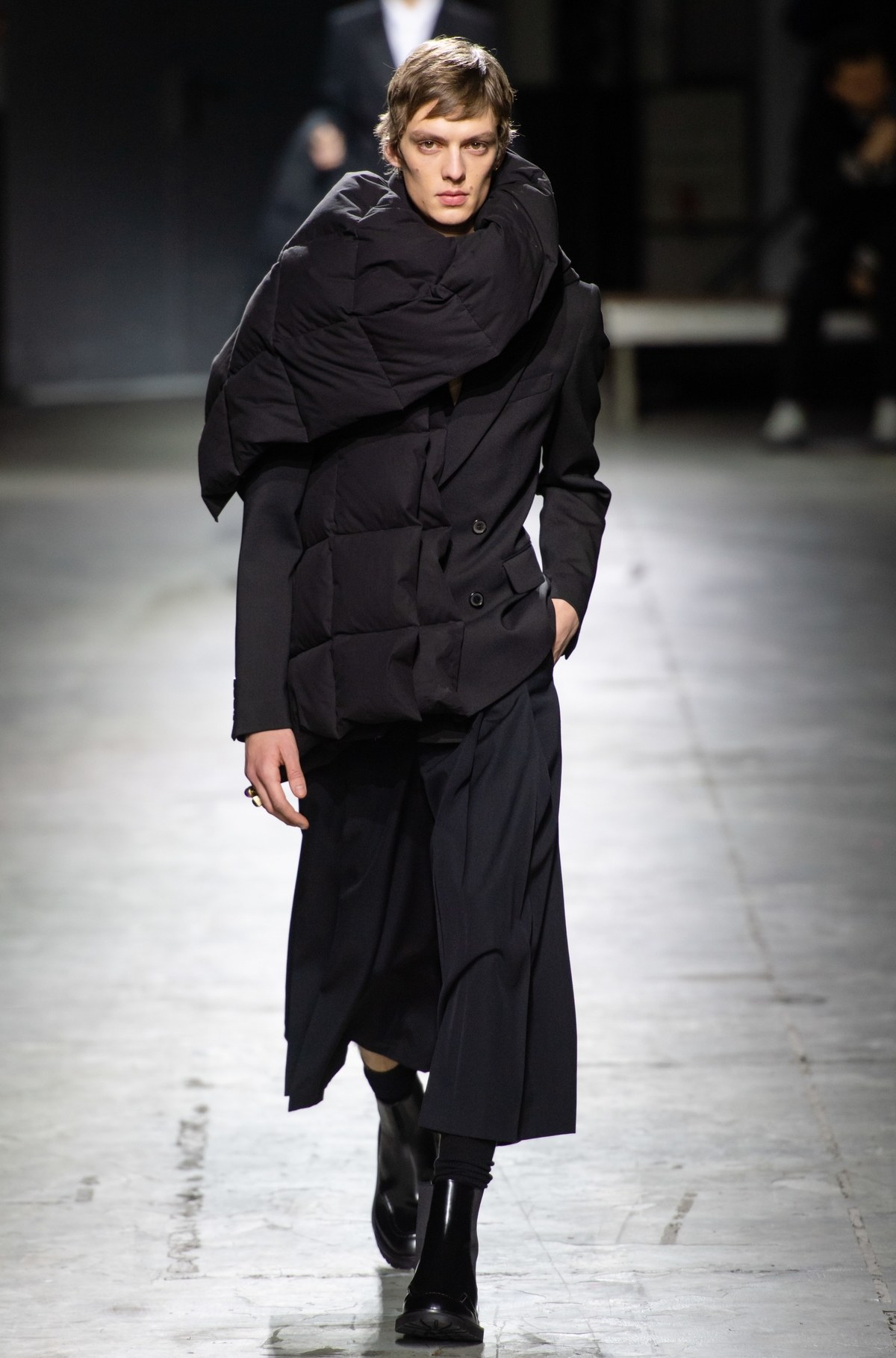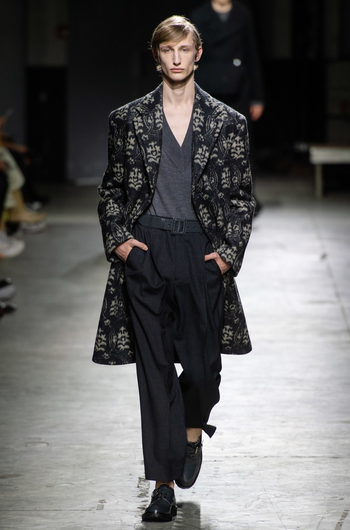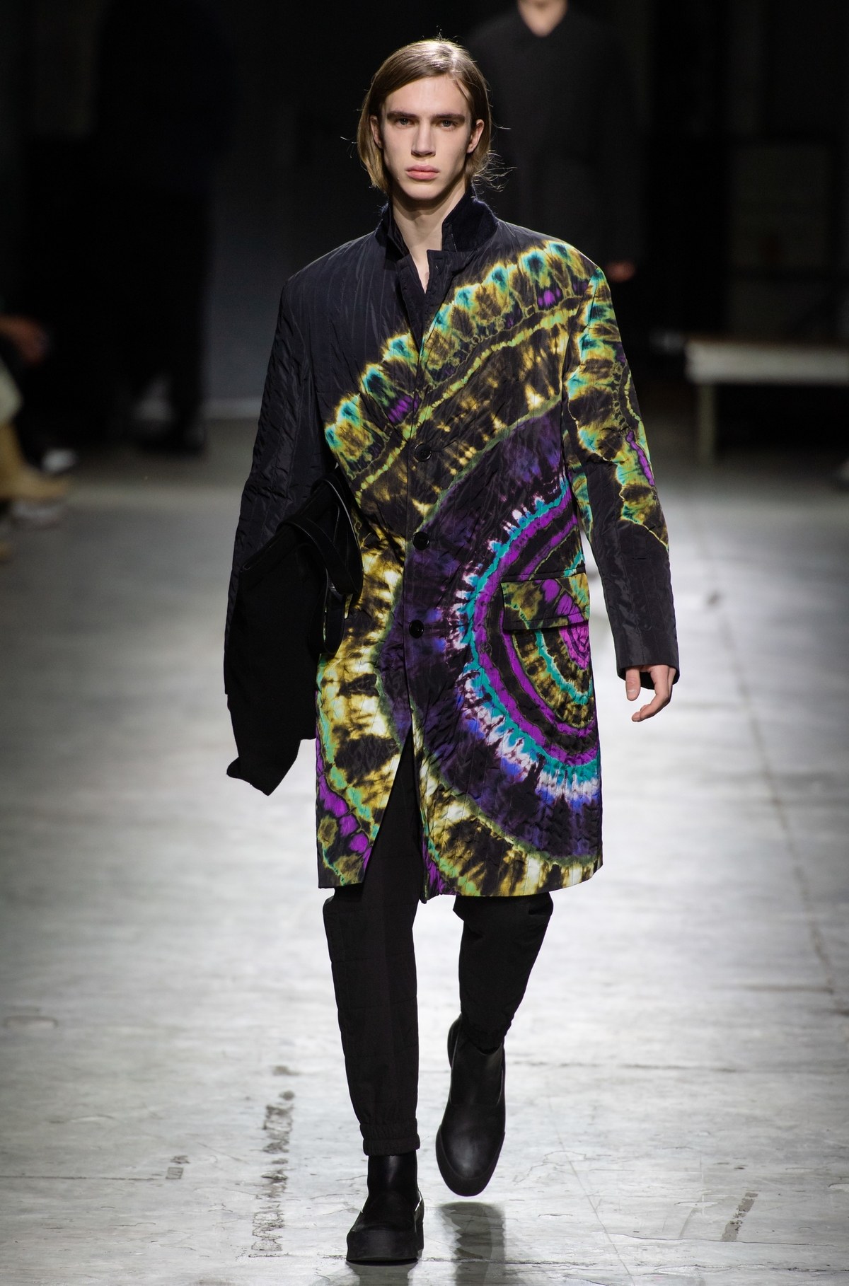 Il rassure cependant ses fans assidus avec quelques imprimés tie and dye bien étudiés. Des couleurs maîtrisées et des motifs domptés pour venir sublimer une panoplie d’accessoires hivernaux. On découvre des écharpes et des sacs réinventés dans des doudounes. Une fois de plus Dries Van Noten crée un vestiaire atypique mêlant coupes classiques et prises de risque.