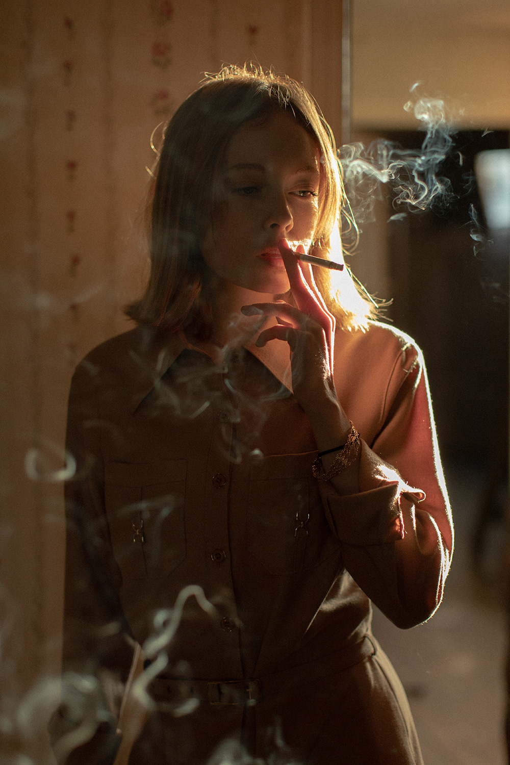 11. Smoke : J’ai pu avoir une grande maison dans son jus, de vieux papier peint vintage des murs crades, bref le rêve 🙂 , je lui ai demandé de venir avec ses propres vêtements vintage. A l’étage, coup de chance un rayon de soleil passait, j’ai donc demandé si elle fumait, elle m’a dit oui, j’ai dis « allez ». Cela a suffit.