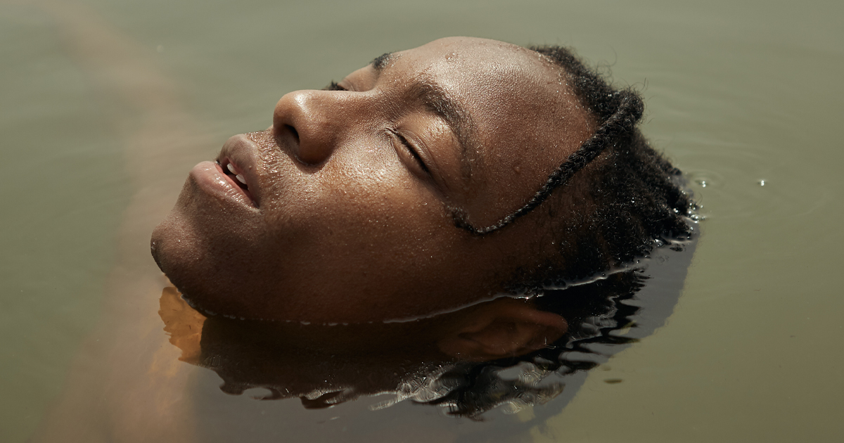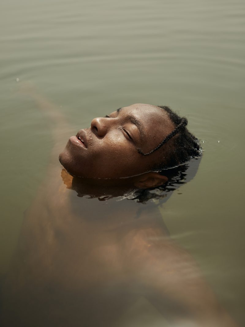 1. Milky Way. Cette image a été capturée dans les eaux sacrées du lac Bakré, en Côte dʼIvoire. Moustapha semble avoir le visage flotté entre ciel et eau. La transparence de lʼeau laiteuse dans lequel il baigne, nous transmet un sentiment de bienfaisance et de quiétude.