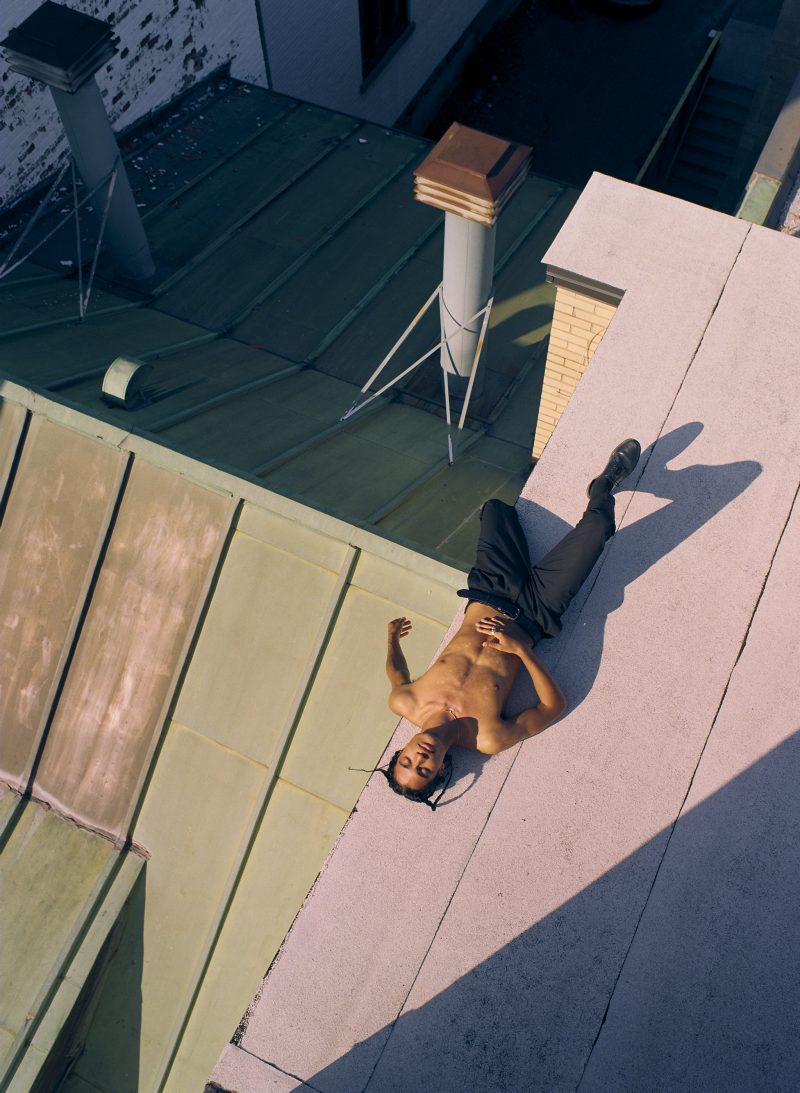 4. London Calling. Dan Luke mʼa contacté par hasard, par lʼentremise dʼune amie de Paris. Ce musicien et mannequin regorge de charisme. Lʼidée mʼest venue de capter son univers sur le toit dʼun studio de musique, rassemblant ses passions. Se rattachant à aucune époque, cette image est emplie de signatures. Le toit cuivré, emblème de Montréal, fait référence à ma ville natale. La chaîne à son cou, mienne, transpose ma personne dans lʼimage et les souliers portés font références au jazz. Homme inspirant, rencontre mémorable.