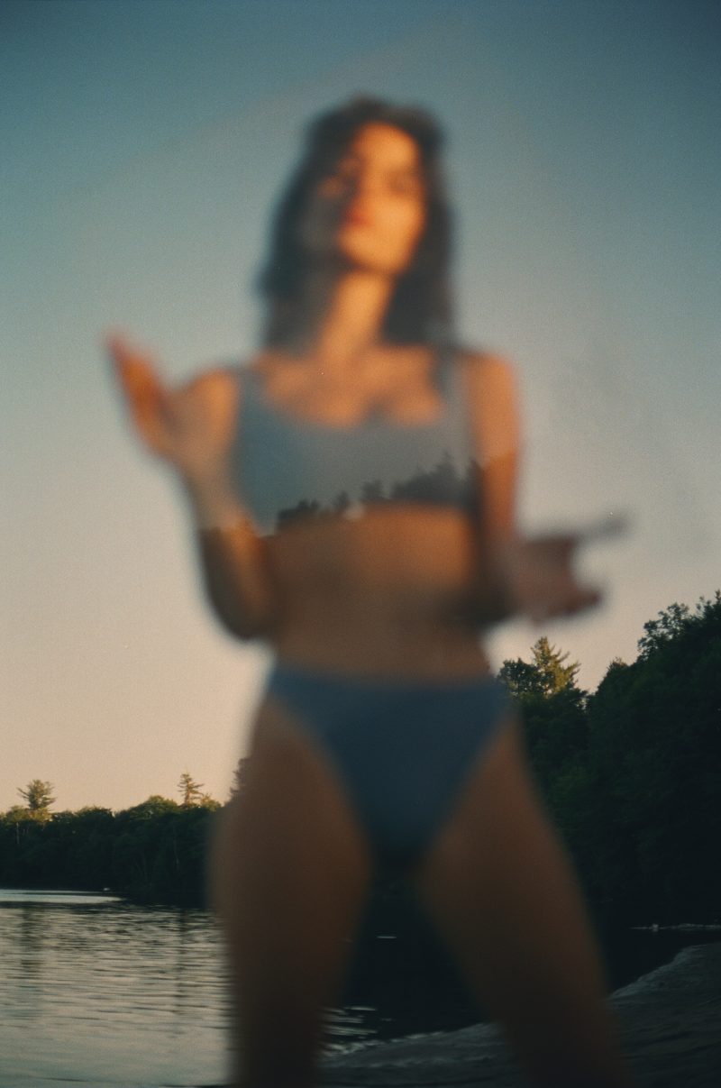 6. Écho. Image de campagne pour la marque de maillots, Gemstone. Ils sont fabriqués entièrement à Montréal avec des tissus recyclés. Lʼidée dernière cette image était de transposer lʼenvironnement sur la modèle.