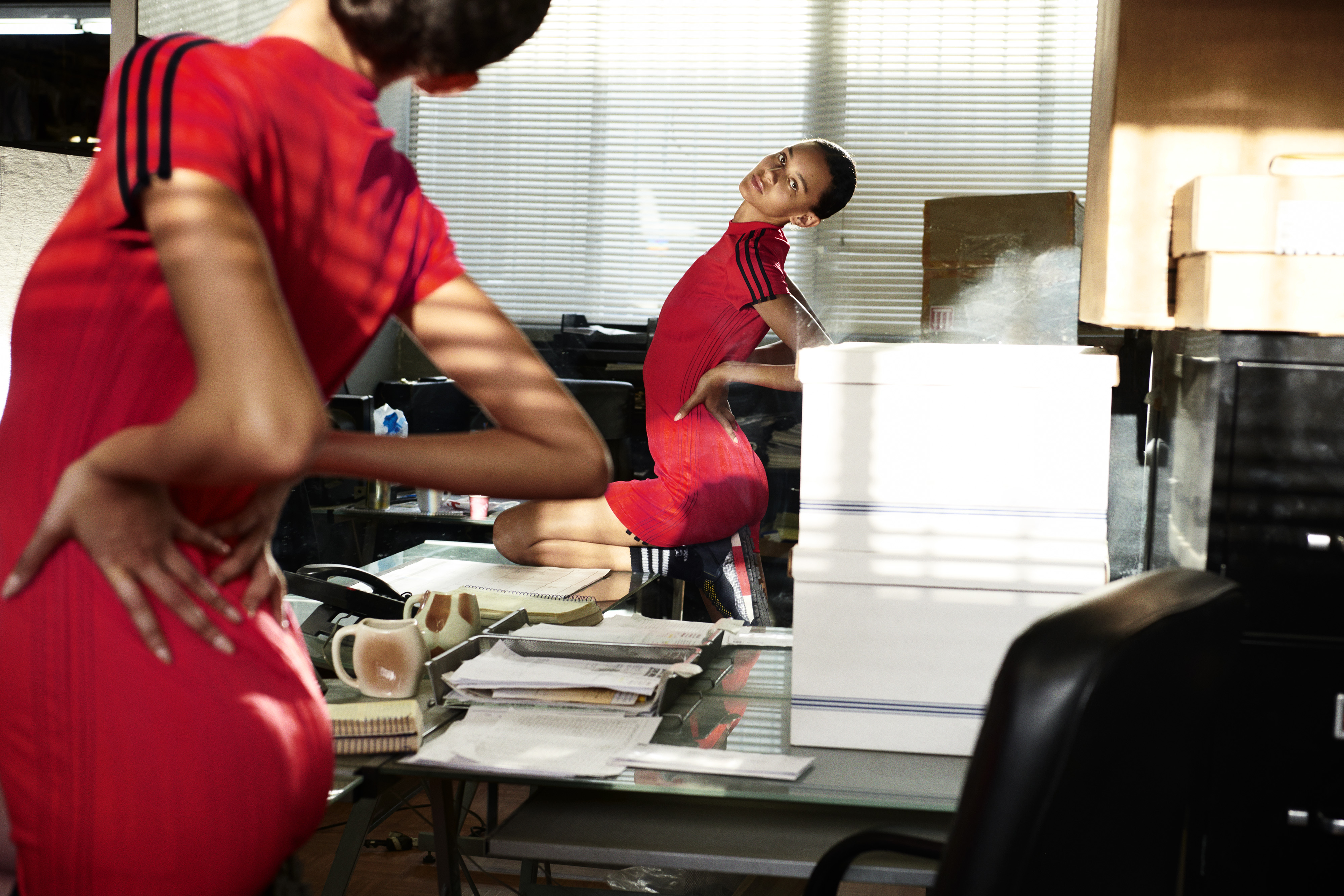 Après un lancement en grande pompe lors du dernier festival Coachella, adidas Originals et Alexander Wang sont de retour avec le deuxième drop de leur dernière collaboration estivale. On s’éloigne pour l’occasion du soleil californien pour retrouver une ambiance délurée de bureau. Shootée par Brianna Capozzi, cette campagne nous invite dans un univers totalement décalé au milieu de piles de photocopies. On adore !