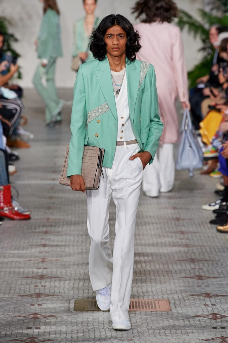 Il propose une couture décontractée qui se transforme en une véritable tenue de scène contemporaine. De la couleur, des coupes fluides, des teintes pastel …