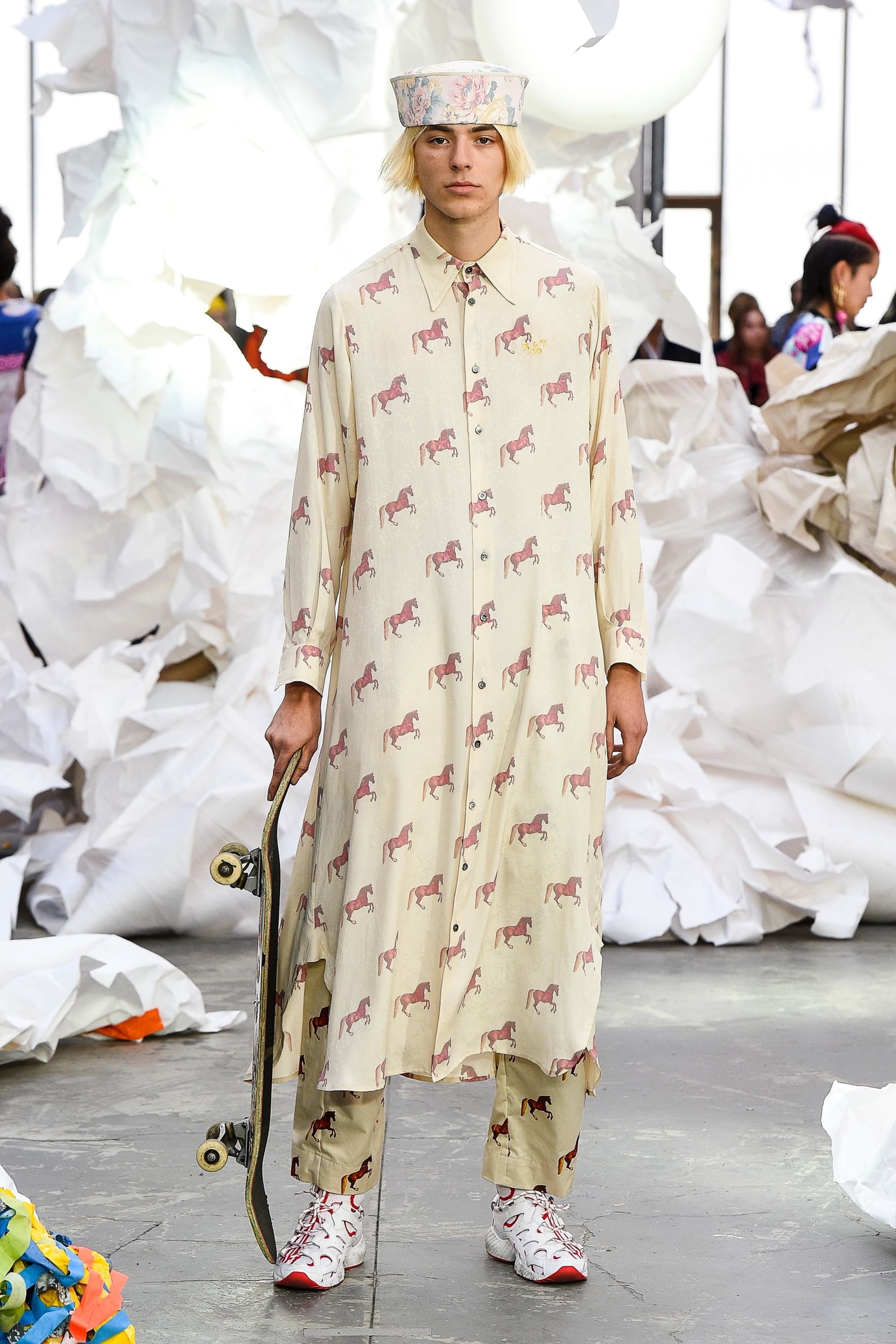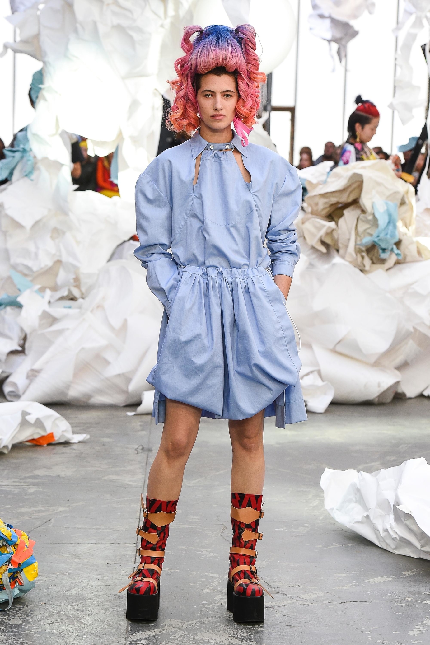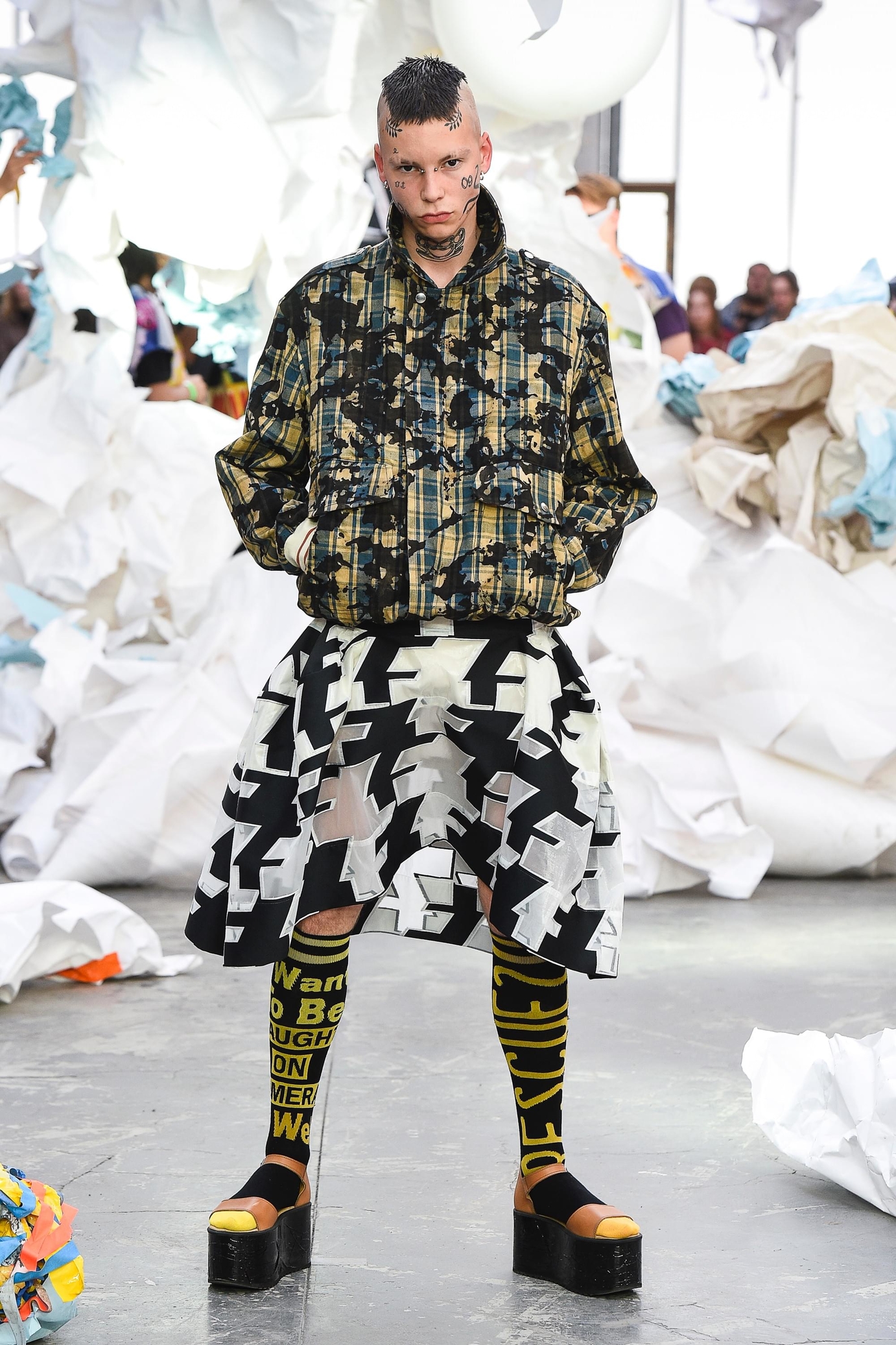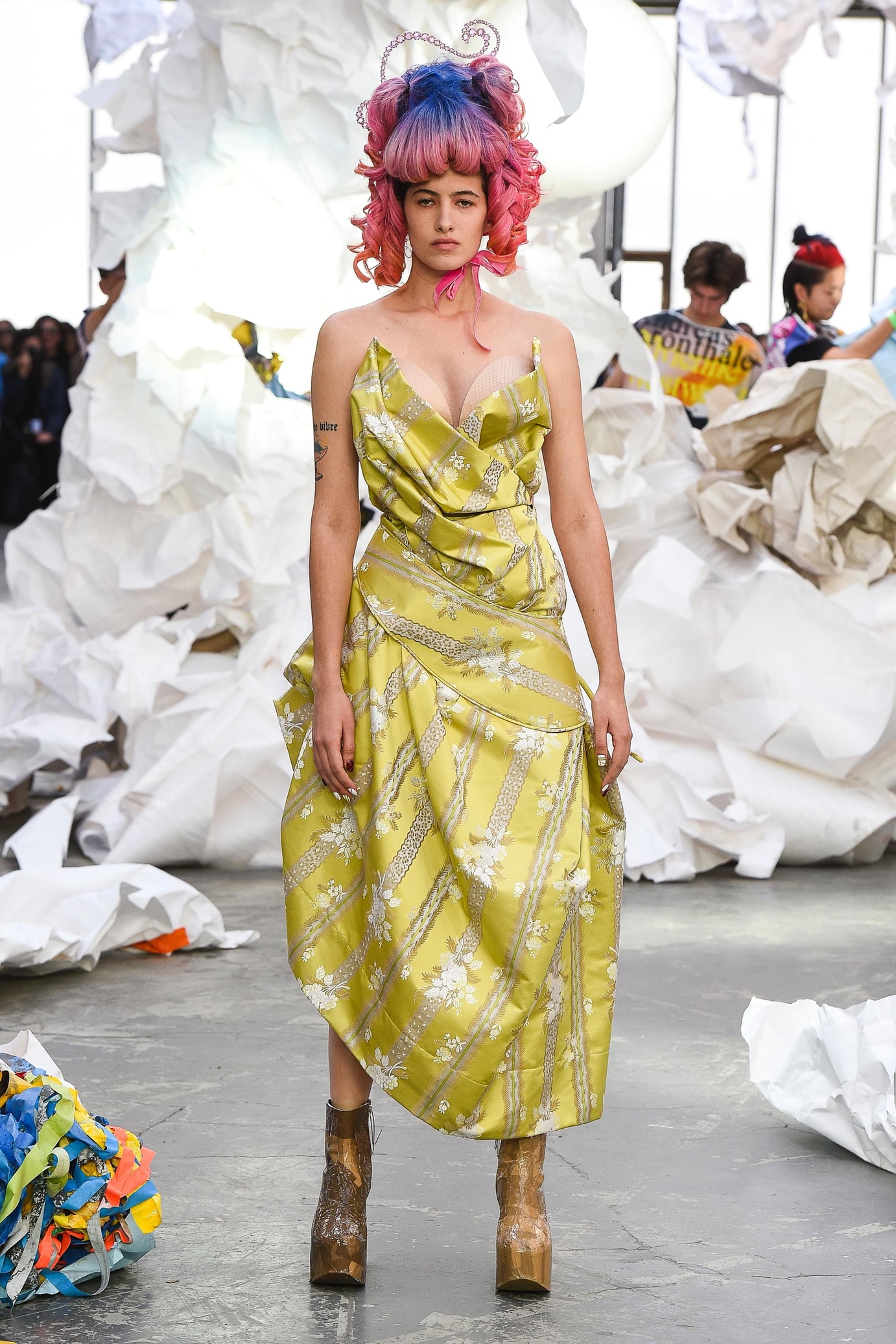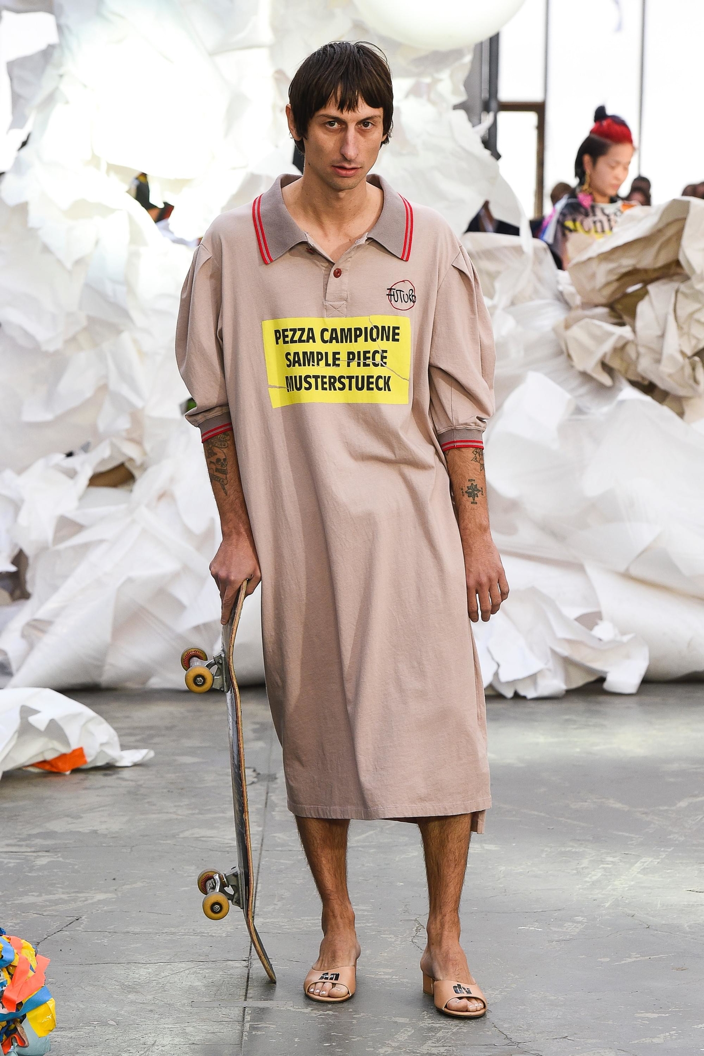C’est au cœur du garage Amelot, à Paris, que Vivienne Westwood a présenté sa collection printemps-été 2019. Un cadre en parfaite adéquation avec le style de la Maison. Andreas Kronthaler dévoile ici une collection pleine d’humour et de malice. Il nous invite à la rencontre de culturistes en slip, perchés sur des boots disco et trottinettes, et de skateurs en robe, le tout inspiré par les skateuses de Kaboul.