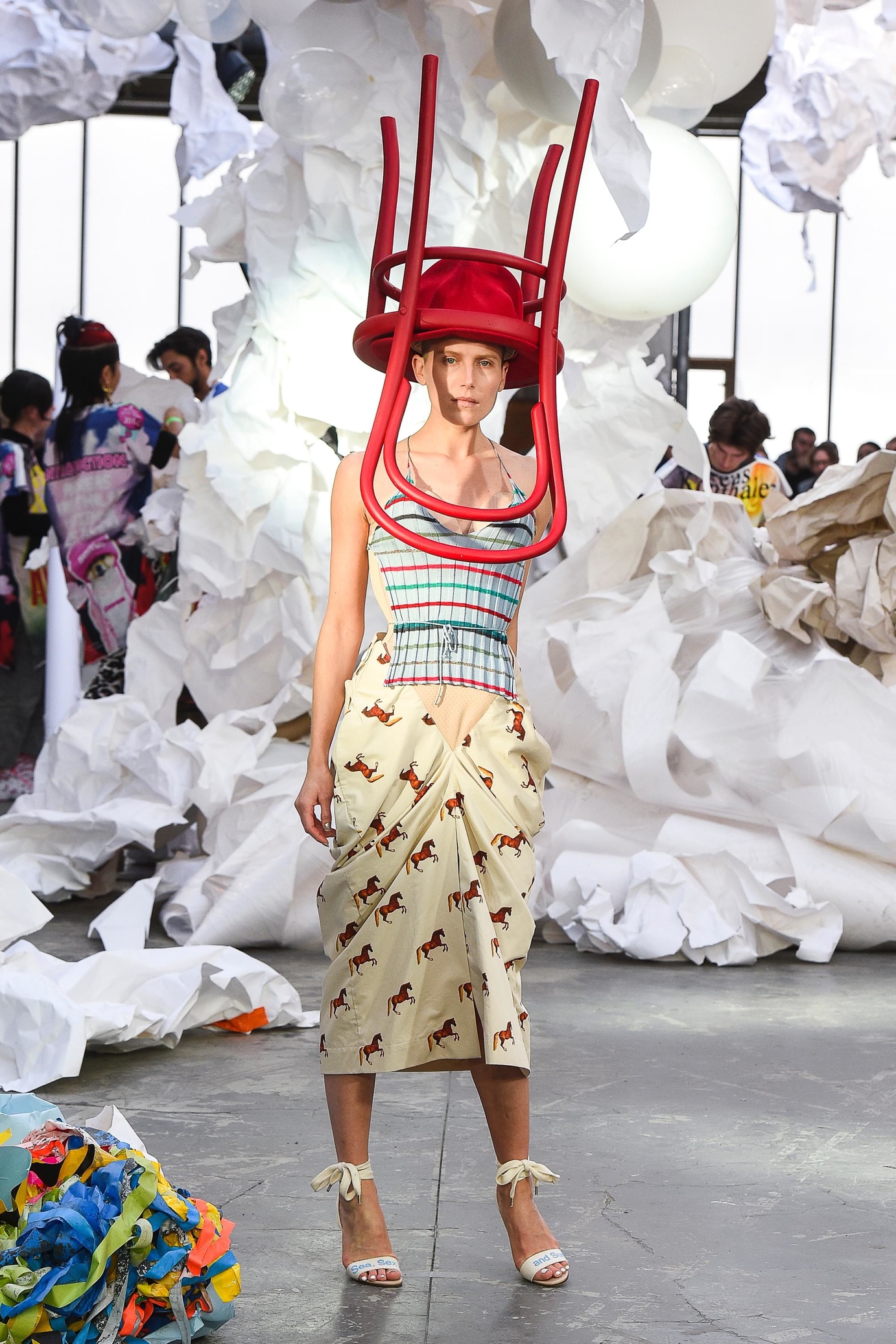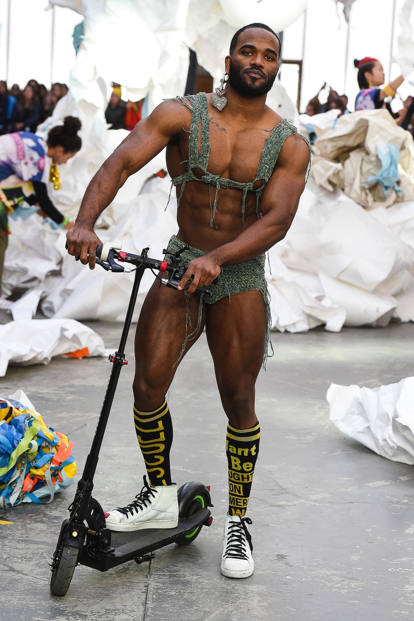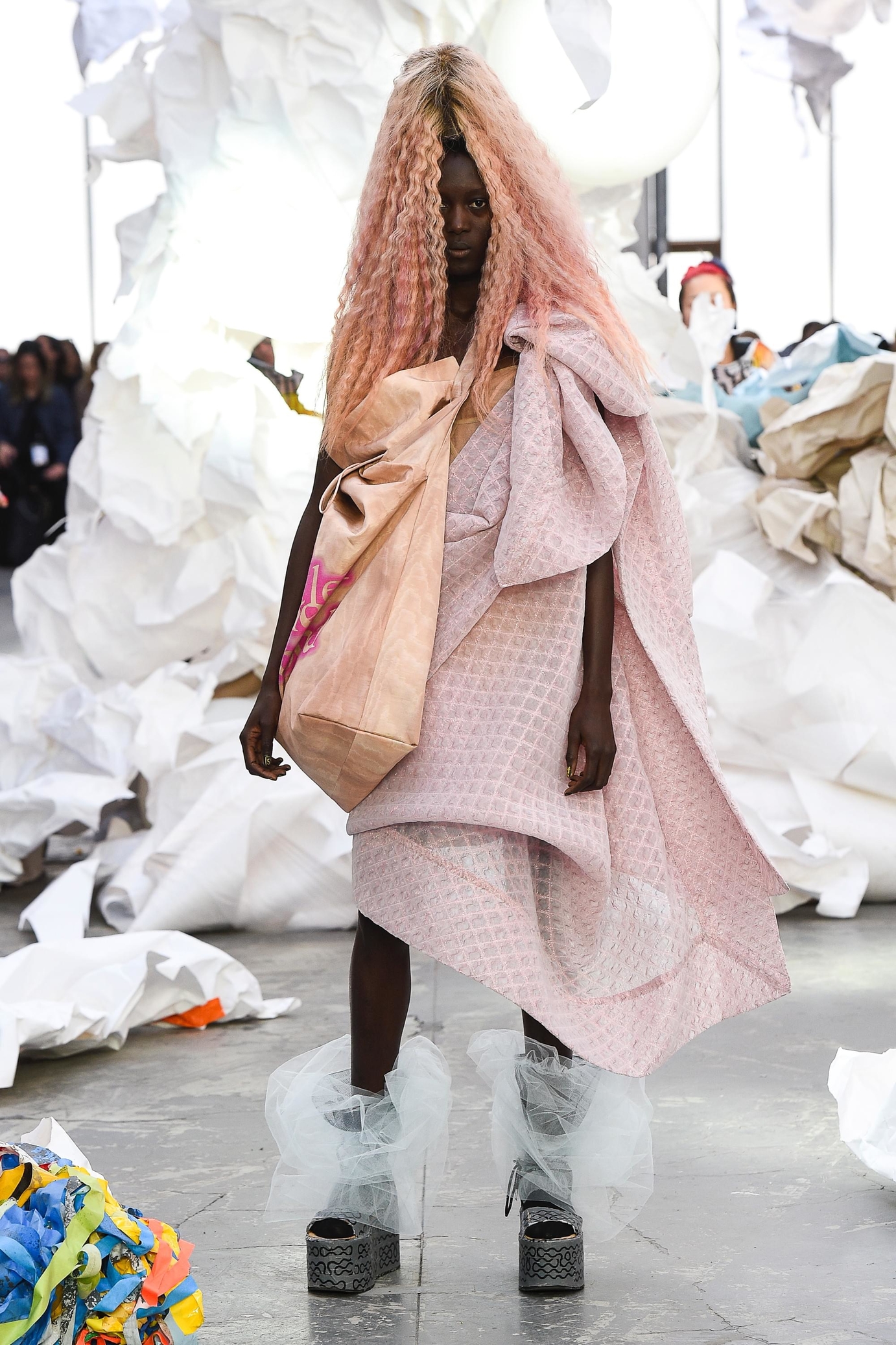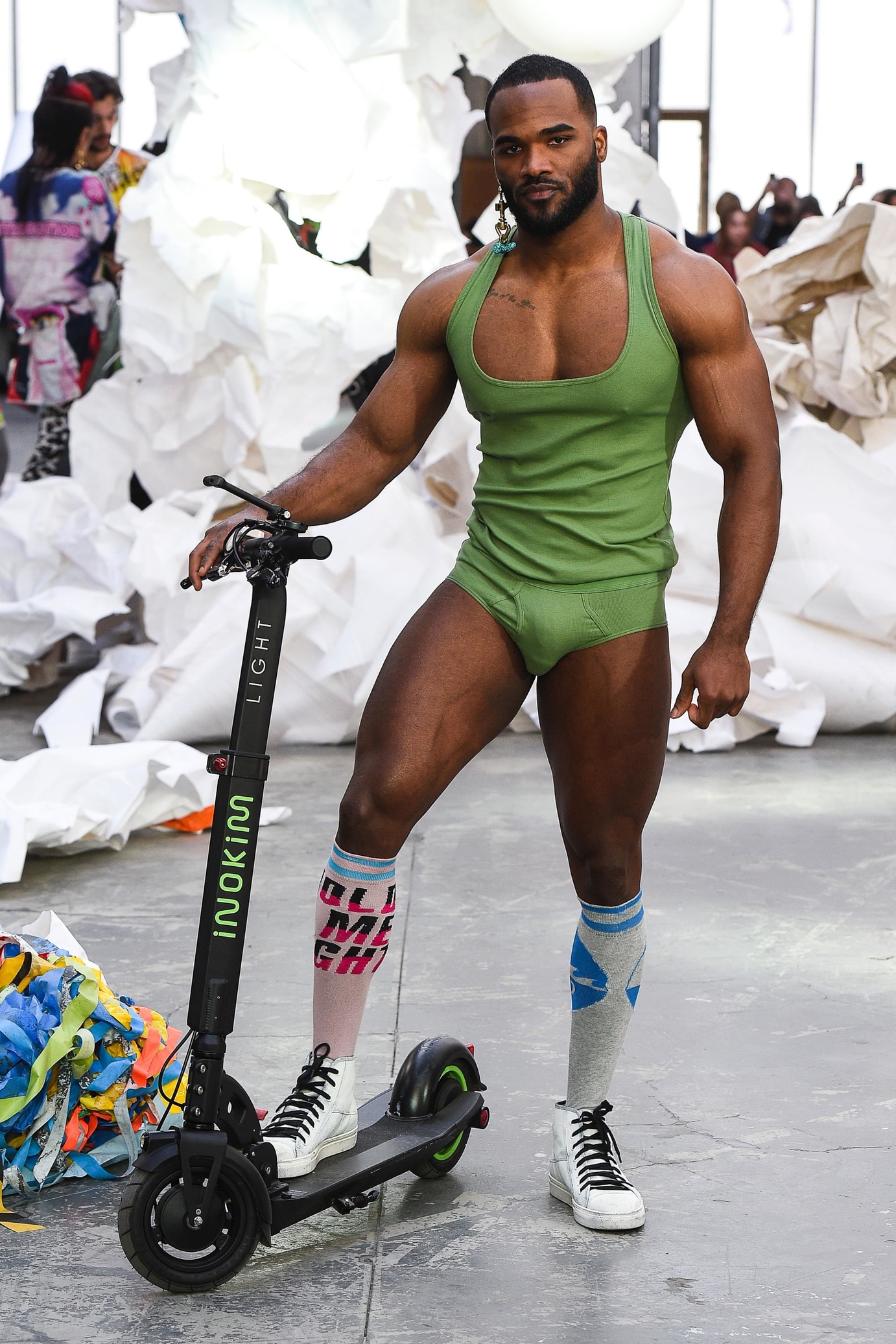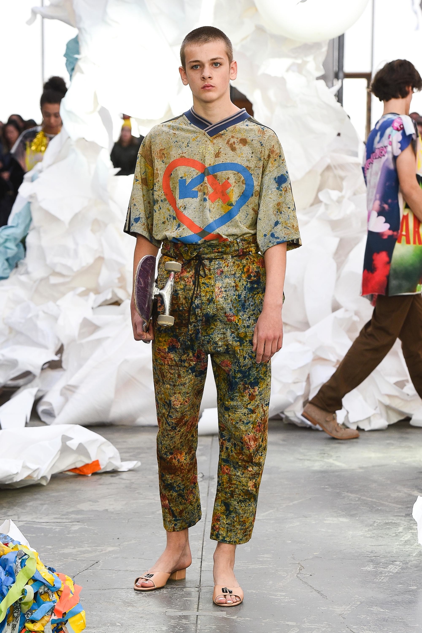 C’est au cœur du garage Amelot, à Paris, que Vivienne Westwood a présenté sa collection printemps-été 2019. Un cadre en parfaite adéquation avec le style de la Maison. Andreas Kronthaler dévoile ici une collection pleine d’humour et de malice. Il nous invite à la rencontre de culturistes en slip, perchés sur des boots disco et trottinettes, et de skateurs en robe, le tout inspiré par les skateuses de Kaboul.