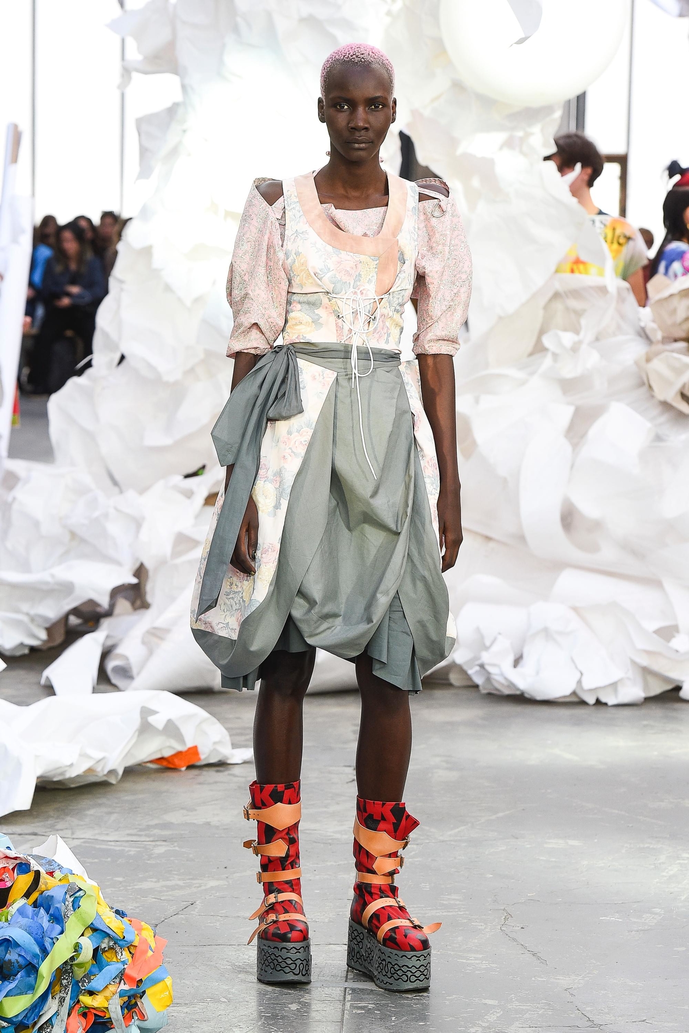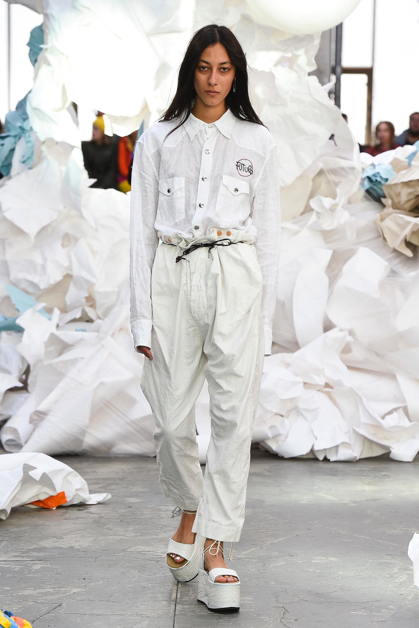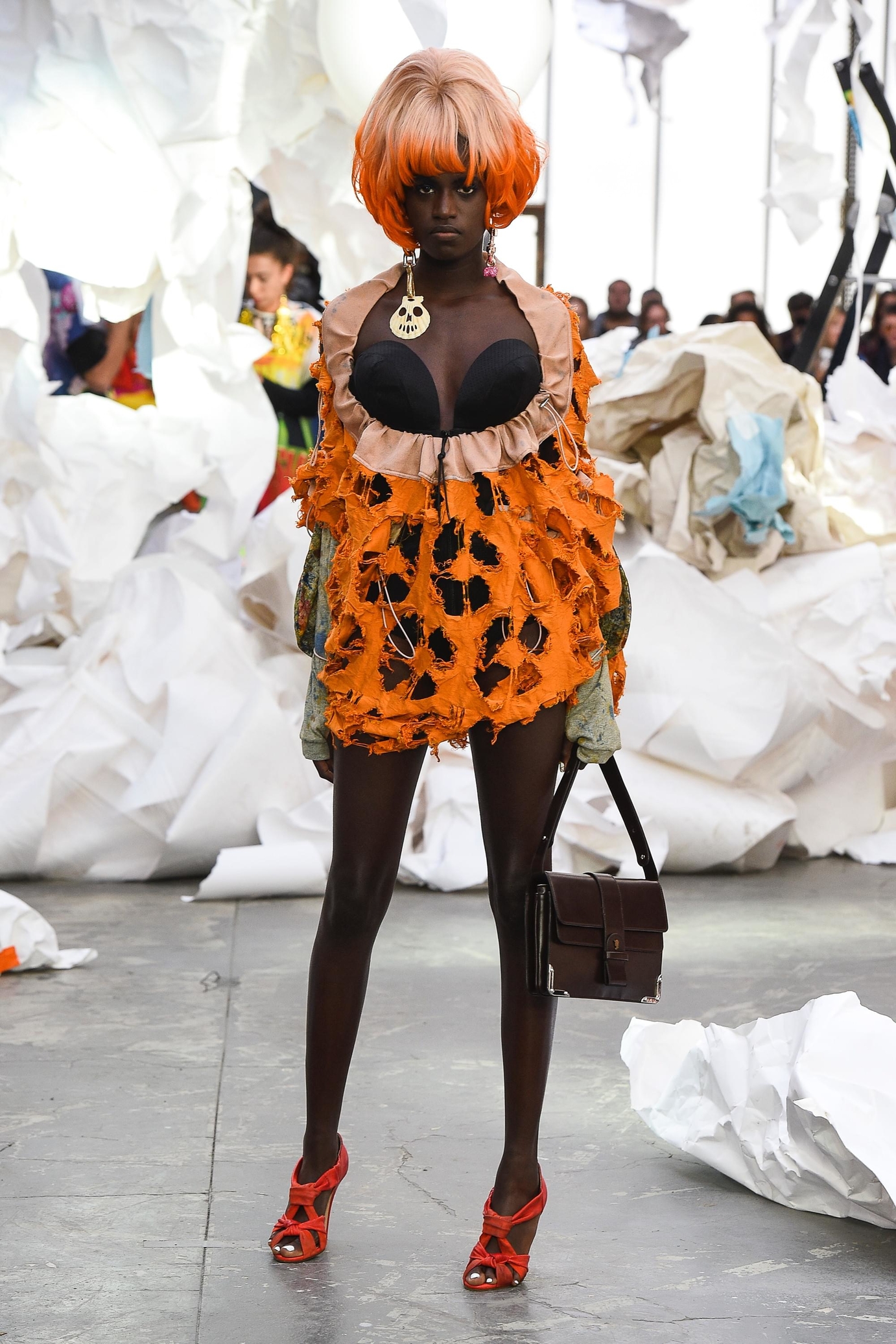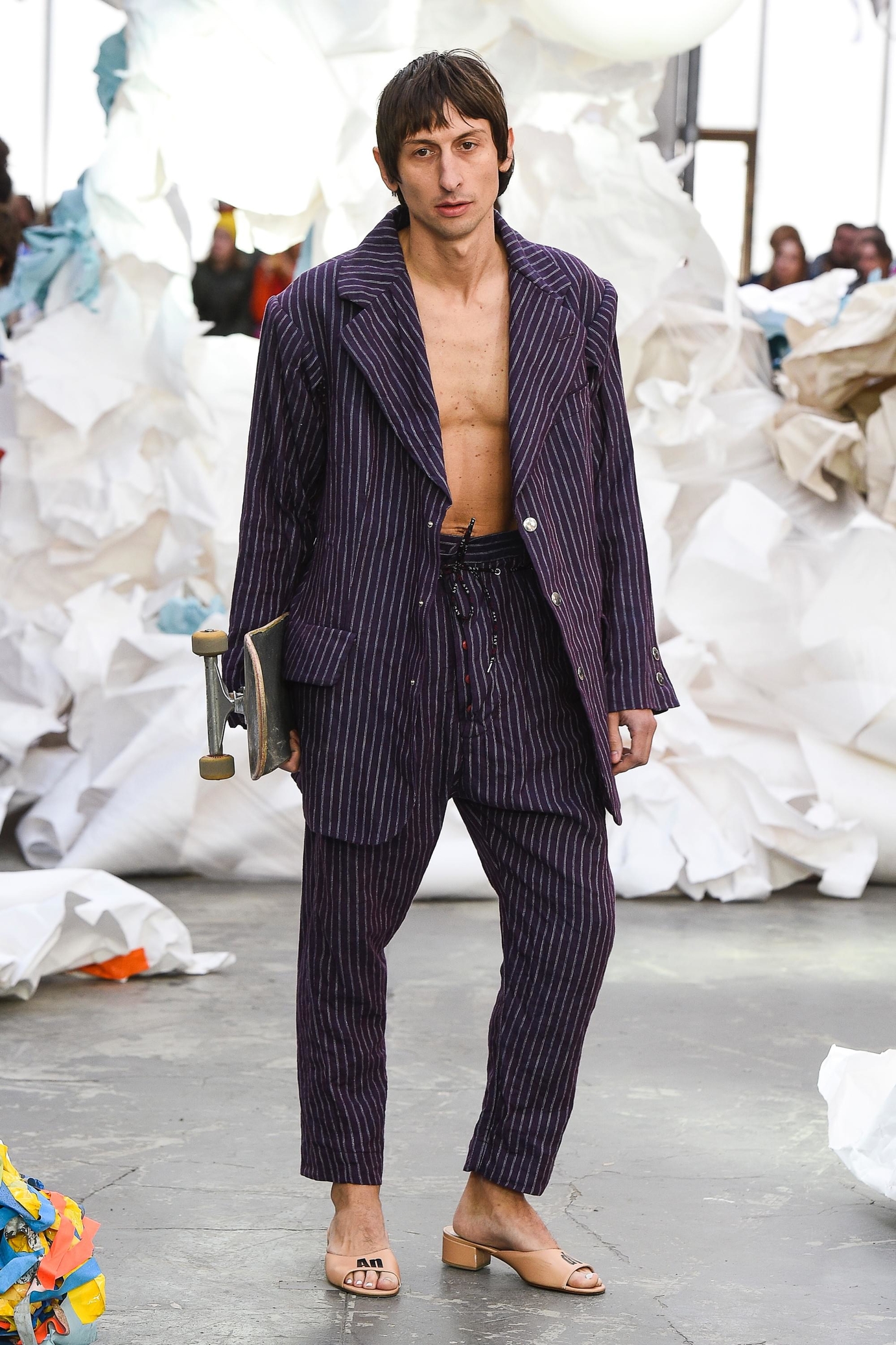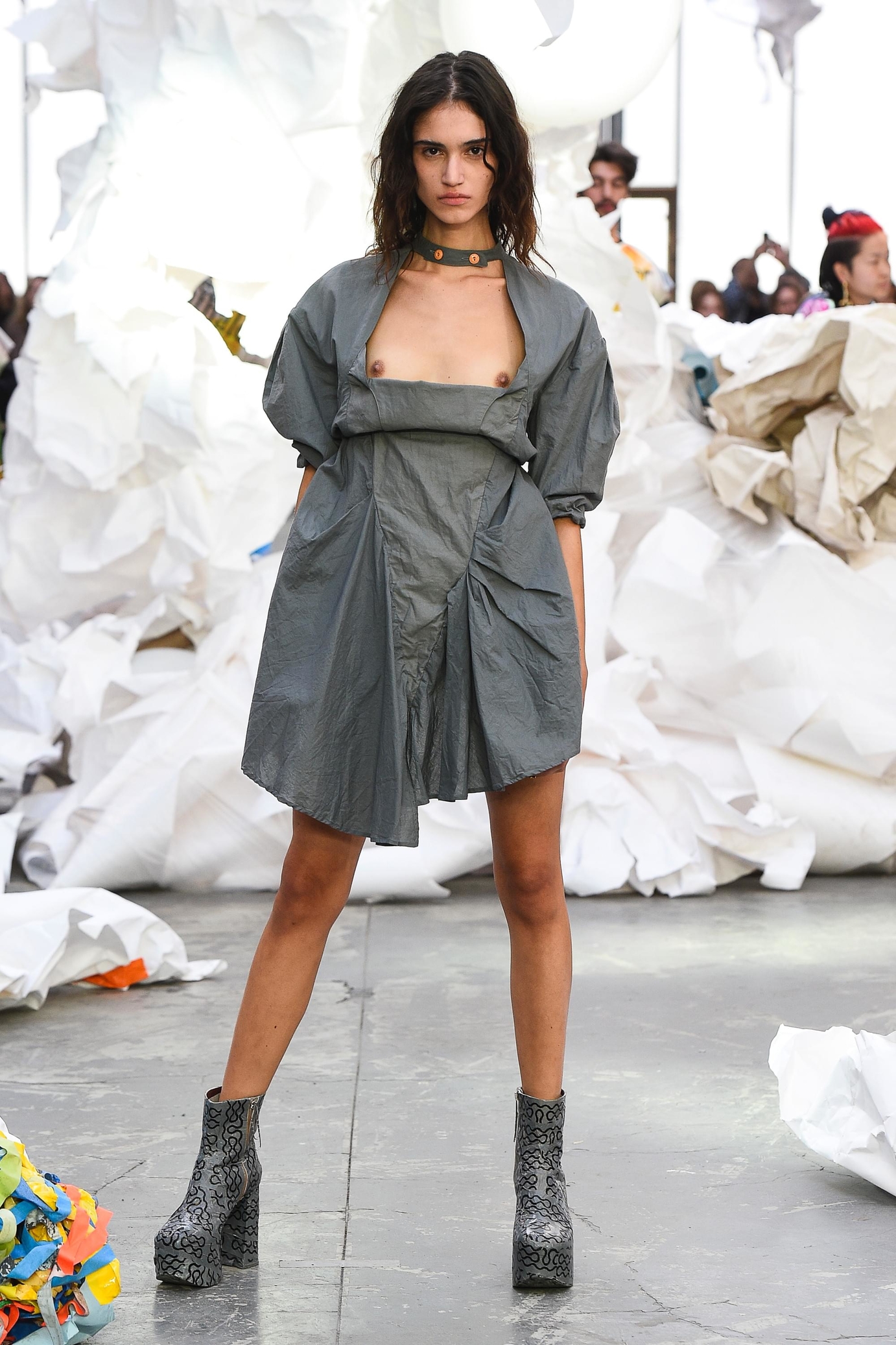 C’est au cœur du garage Amelot, à Paris, que Vivienne Westwood a présenté sa collection printemps-été 2019. Un cadre en parfaite adéquation avec le style de la Maison. Andreas Kronthaler dévoile ici une collection pleine d’humour et de malice. Il nous invite à la rencontre de culturistes en slip, perchés sur des boots disco et trottinettes, et de skateurs en robe, le tout inspiré par les skateuses de Kaboul.