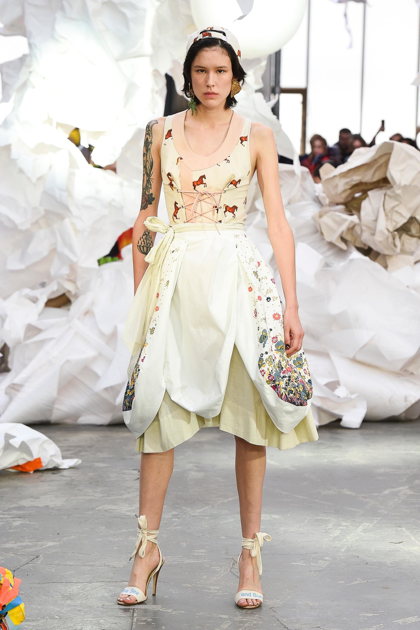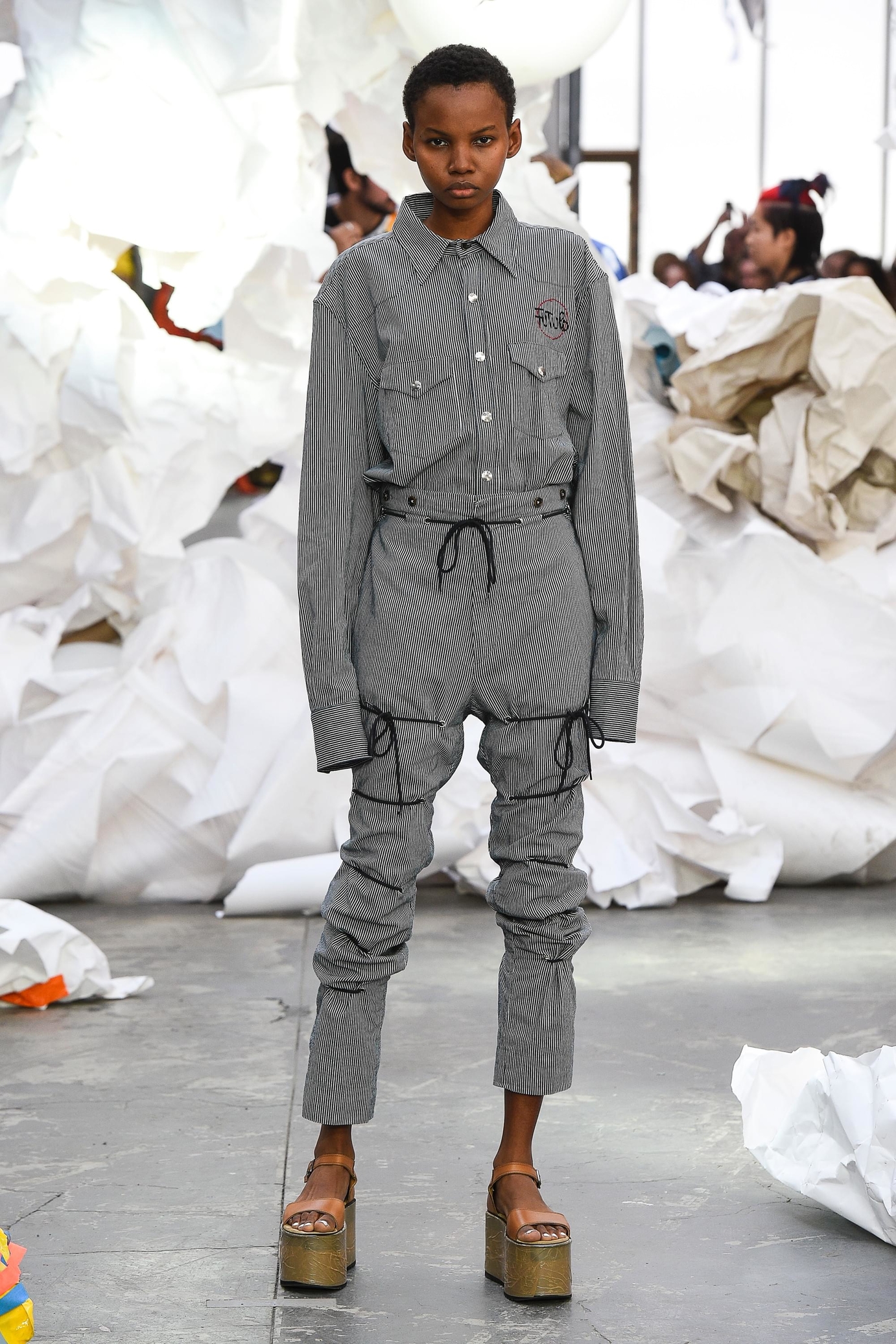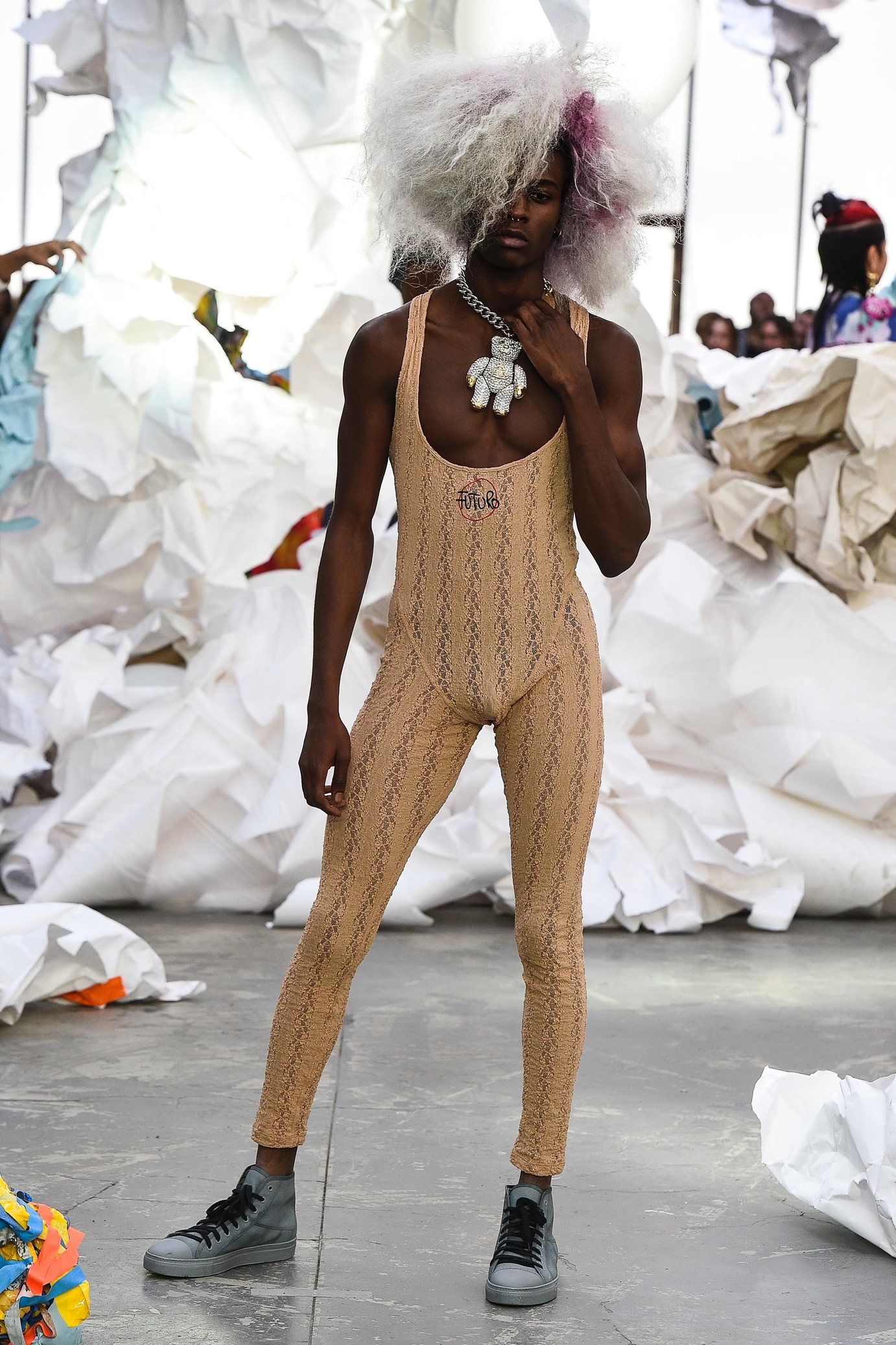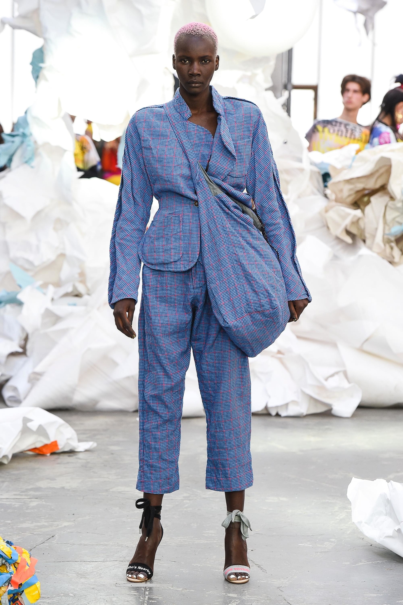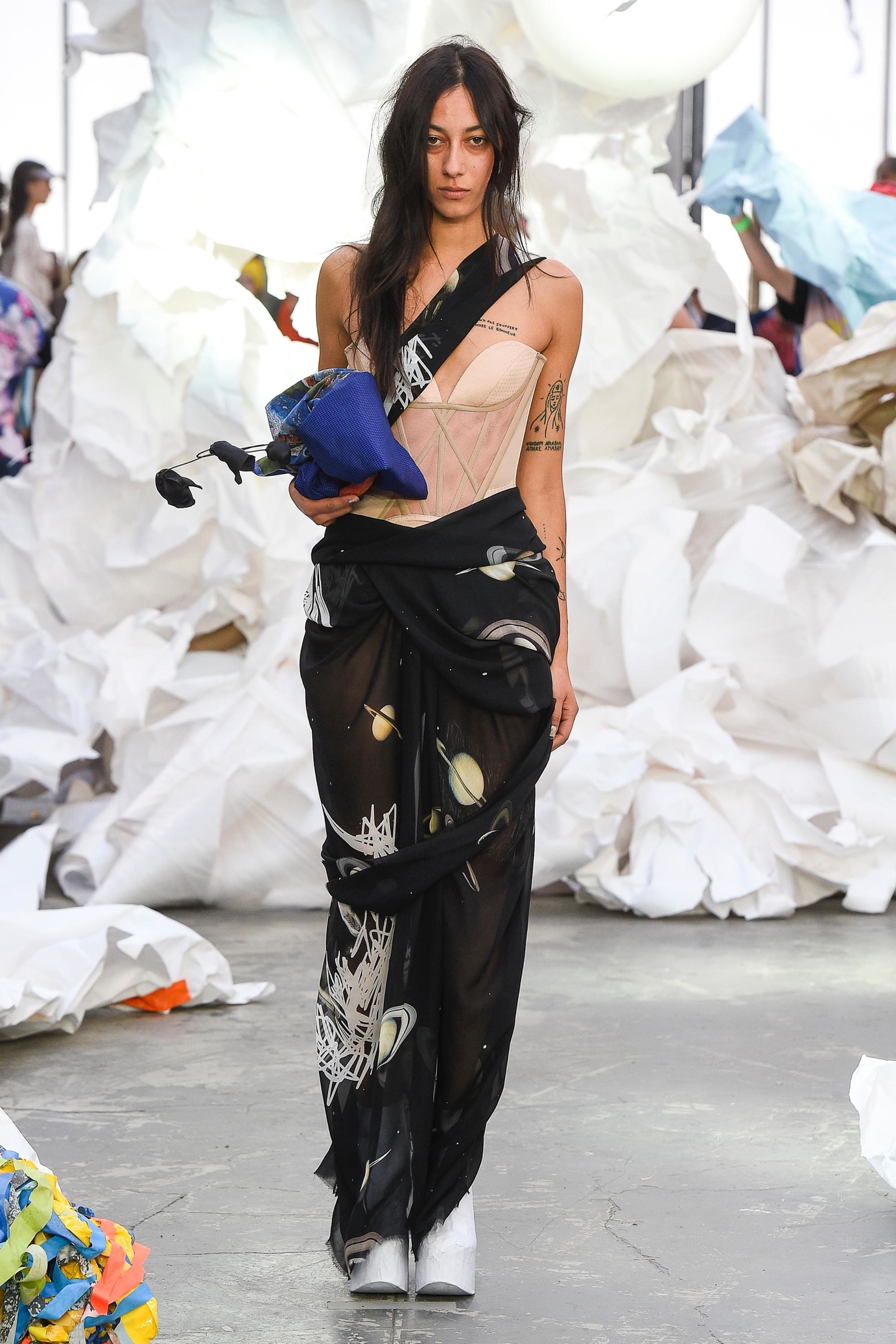 C’est au cœur du garage Amelot, à Paris, que Vivienne Westwood a présenté sa collection printemps-été 2019. Un cadre en parfaite adéquation avec le style de la Maison. Andreas Kronthaler dévoile ici une collection pleine d’humour et de malice. Il nous invite à la rencontre de culturistes en slip, perchés sur des boots disco et trottinettes, et de skateurs en robe, le tout inspiré par les skateuses de Kaboul.