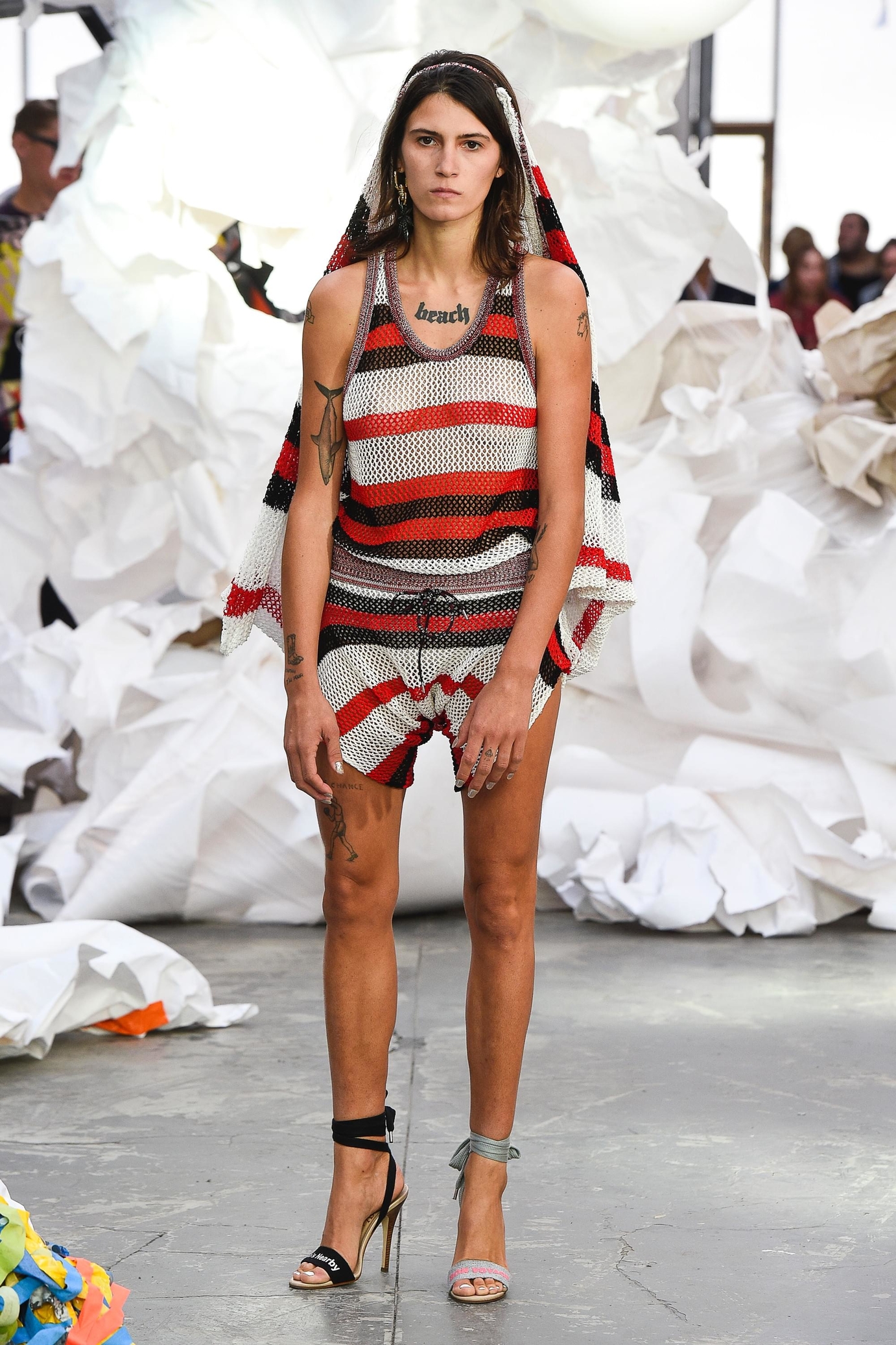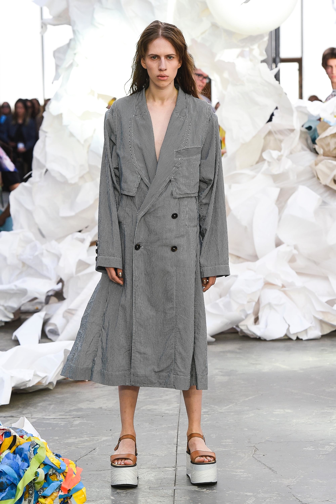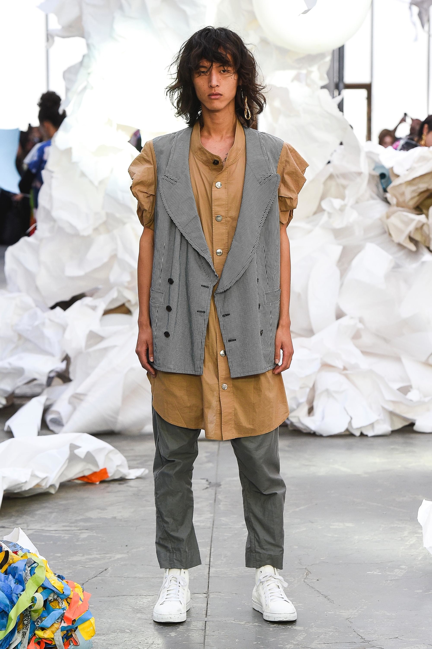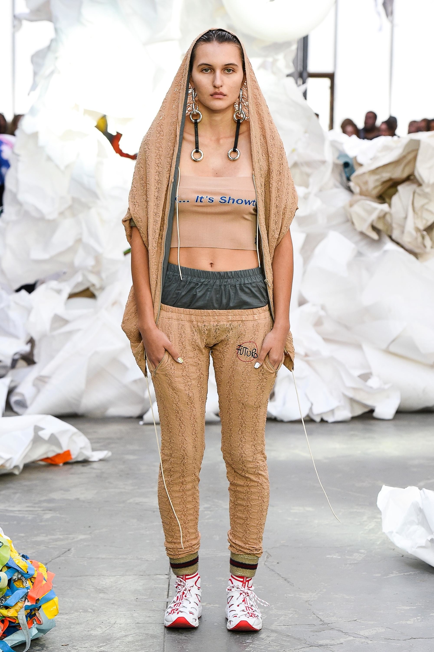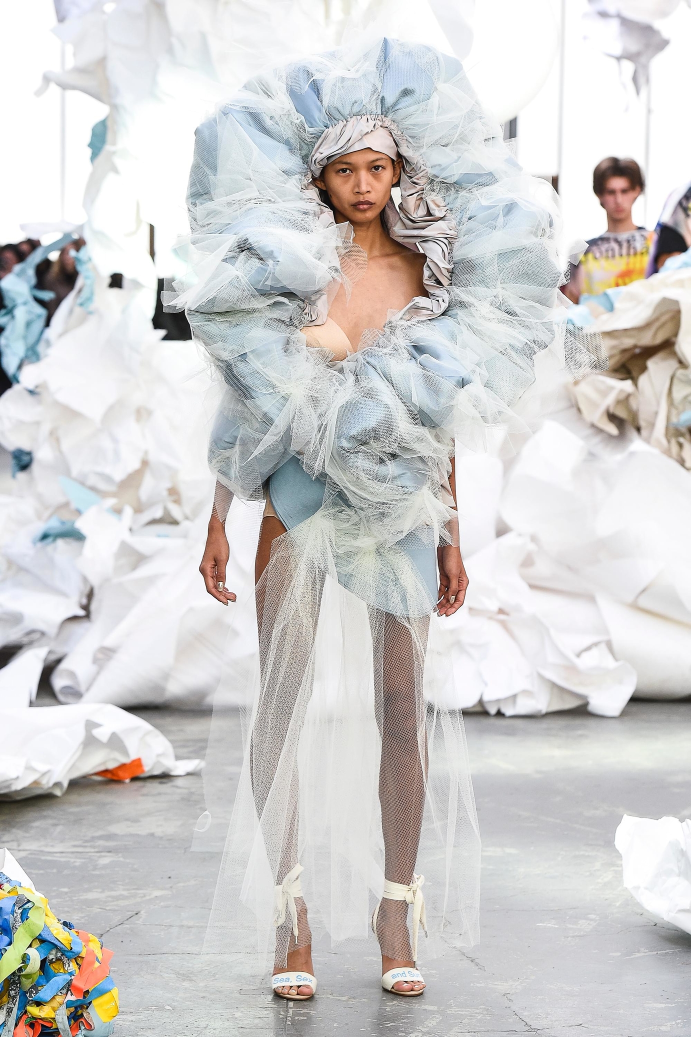 C’est au cœur du garage Amelot, à Paris, que Vivienne Westwood a présenté sa collection printemps-été 2019. Un cadre en parfaite adéquation avec le style de la Maison. Andreas Kronthaler dévoile ici une collection pleine d’humour et de malice. Il nous invite à la rencontre de culturistes en slip, perchés sur des boots disco et trottinettes, et de skateurs en robe, le tout inspiré par les skateuses de Kaboul.