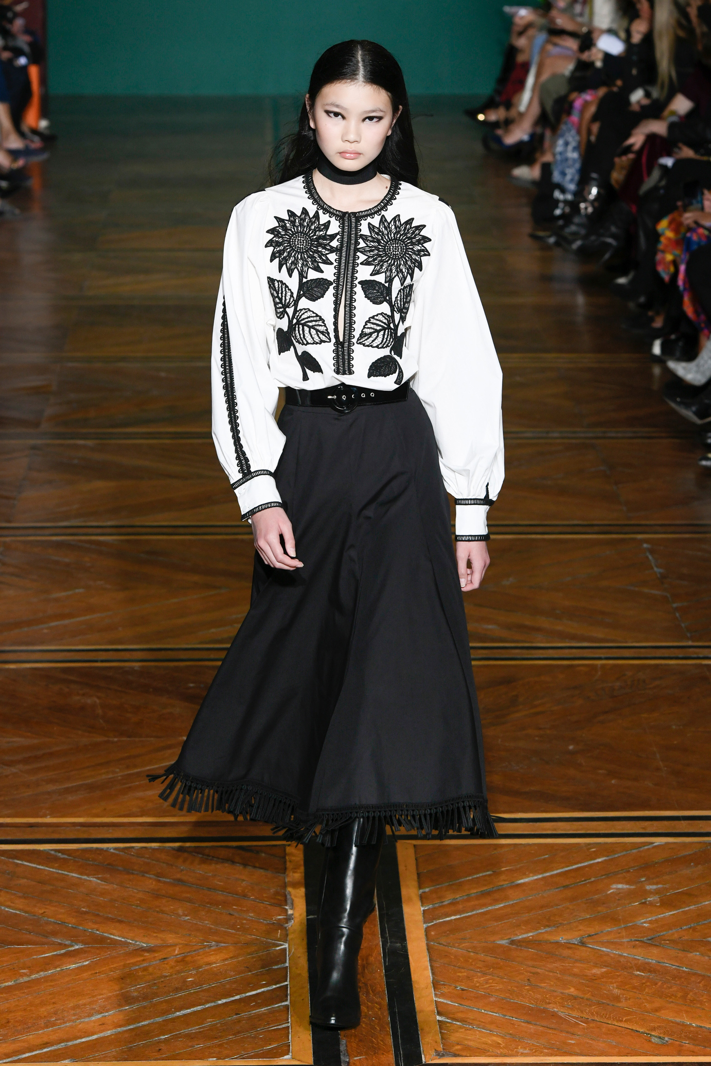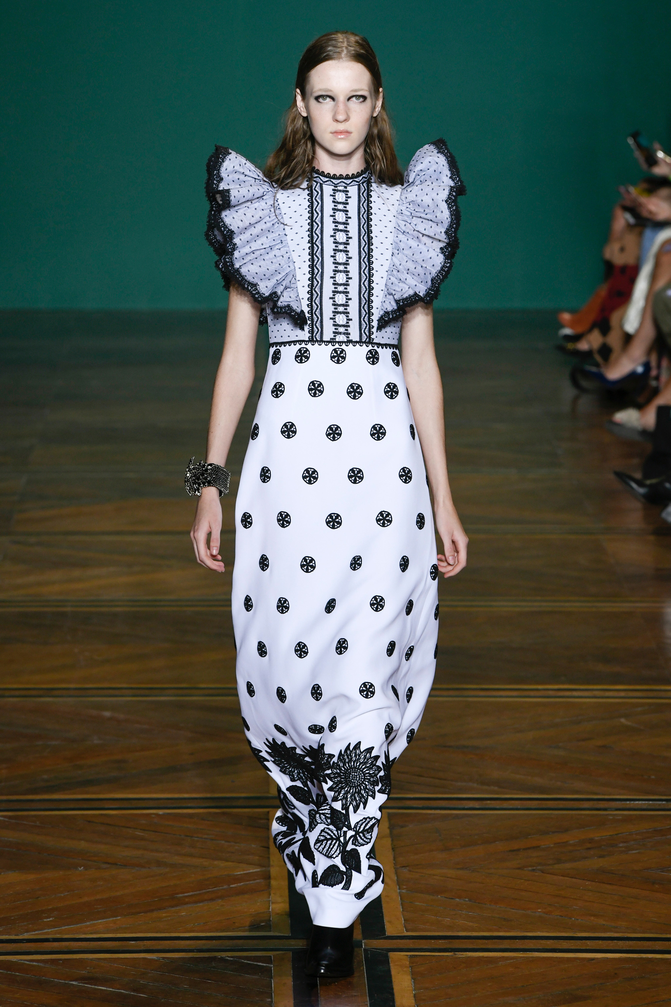 Andrew GN construit toujours ses collections à la croisée de multiples influences. Pour le défile de sa collection printemps-été 2019, les jeunes filles semblent être devenues des dames sophistiquées, se régalant de robes divines dignes d’une collection Couture. Sur le podium, des robes graphiques en noir et blanc précédent des inspirations plus bohèmes. Les imprimés et les matières évoluent à chaque passage. Fleurs, fruits, pois, dessins tout droit sortis de mangas, sequin… tout s’enchaîne à la perfection. Bottes ou talons, le mélange est enivrant !