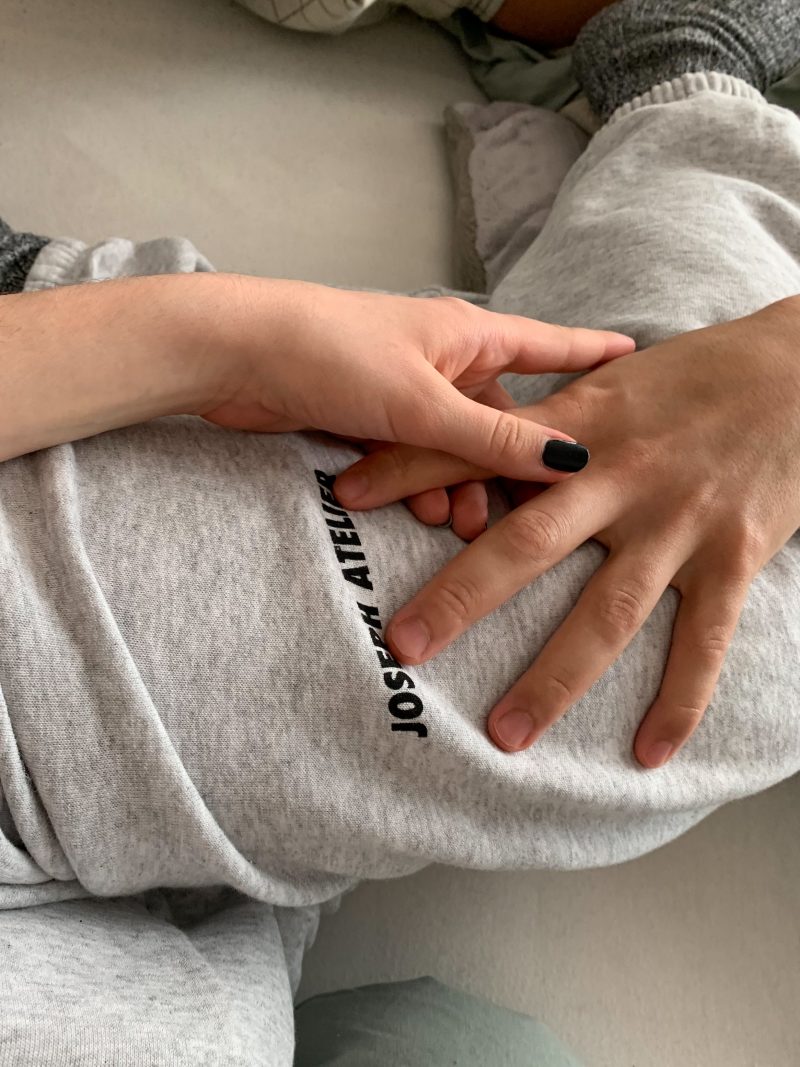 ‘Comment nous passons notre temps pendant le confinement ? Beaucoup de câlins, des séances de soins, du chant, des jeux et de la danse sur des musiques de toutes sortes ! Il y a quelque temps, mon petit ami et moi avons changé nos habitudes pour un régime à base de plantes ;  la cuisine est devenu un nouveau défi quotidien très amusant.’