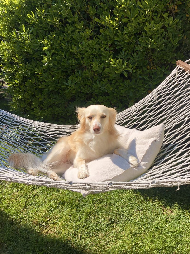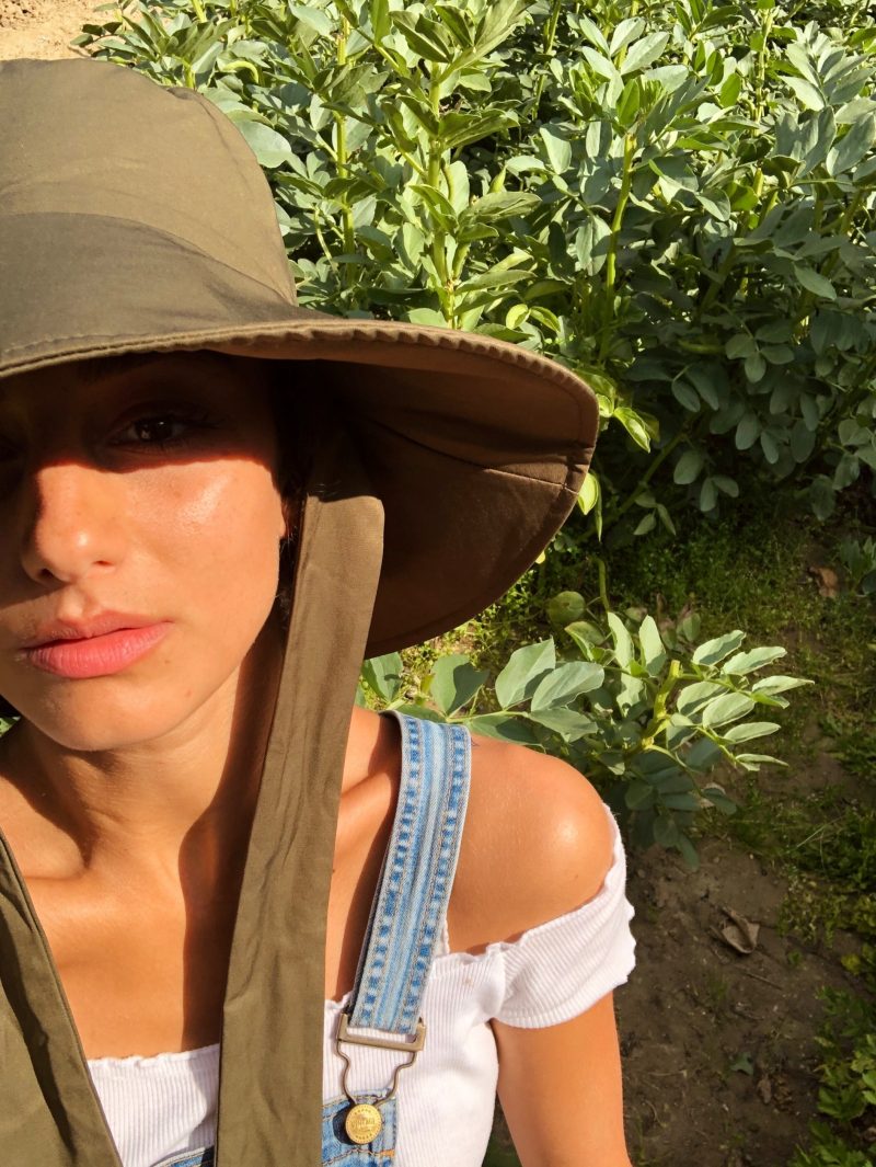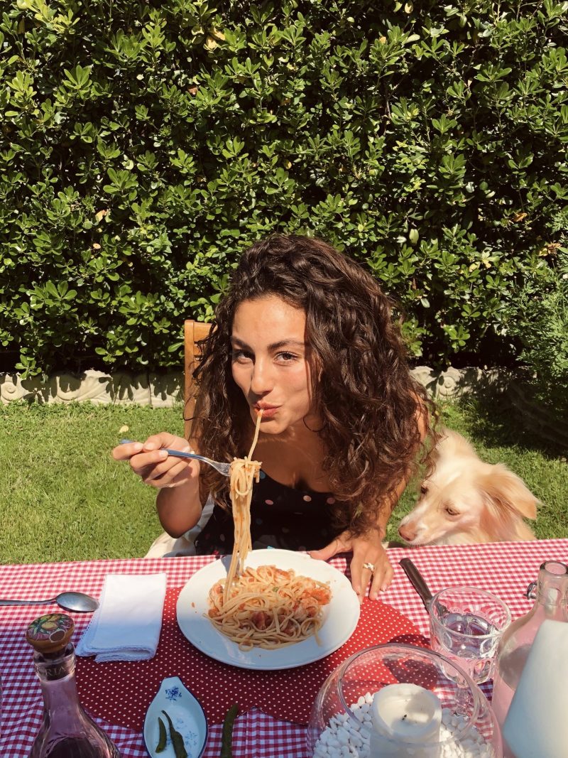 ‘En Italie, nous ne sommes pas loin de la mer ; cela me permet de me reconnecter avec la nature. Je passe parfois la journée pieds nus dans mon jardin, je cueille des fleurs pour ma chambre, mais aussi de la lavande, de la menthe et du romarin pour me faire des soins de beauté et prendre des bains. J’ai également un petit potager où j’adore aller prendre l’apéro au crépuscule avec des fruits et légumes à peine cueillis 100 % Bio. J’en profite aussi pour écouter ma playlist qui oscille entre des vieilles chansons françaises et italiennes en passant par de la musique brésilienne.‘