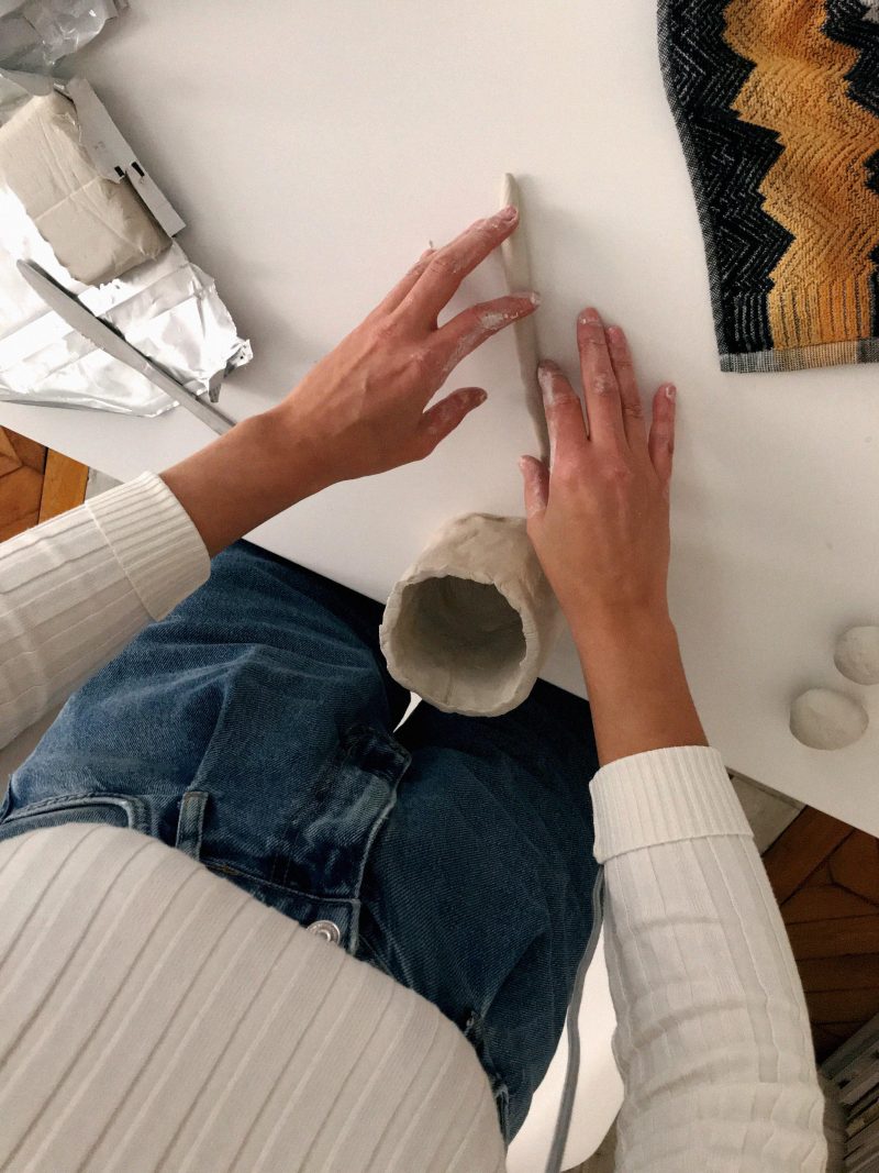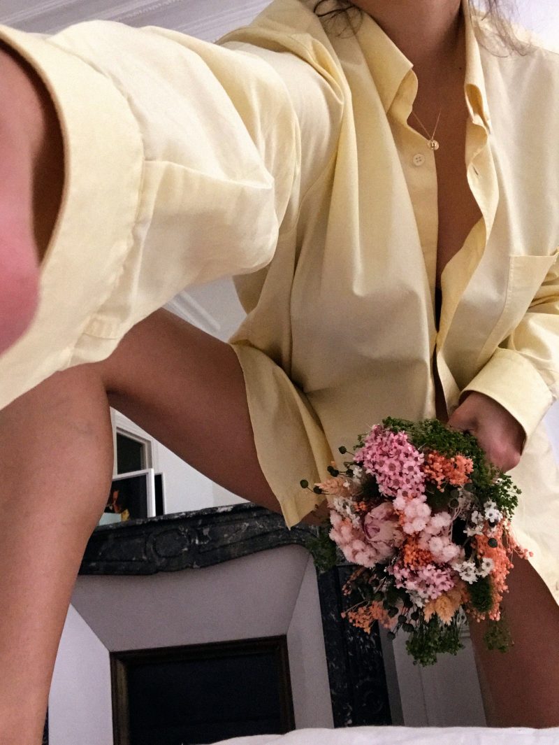 ‘Je suis confinée dans mon appartement à Paris avec mon copain (meilleure compagnie du monde). J’ai eu envie de vivre ce confinement comme un arrêt sur image, avec la chance de faire le bilan, et de se réinventer.’