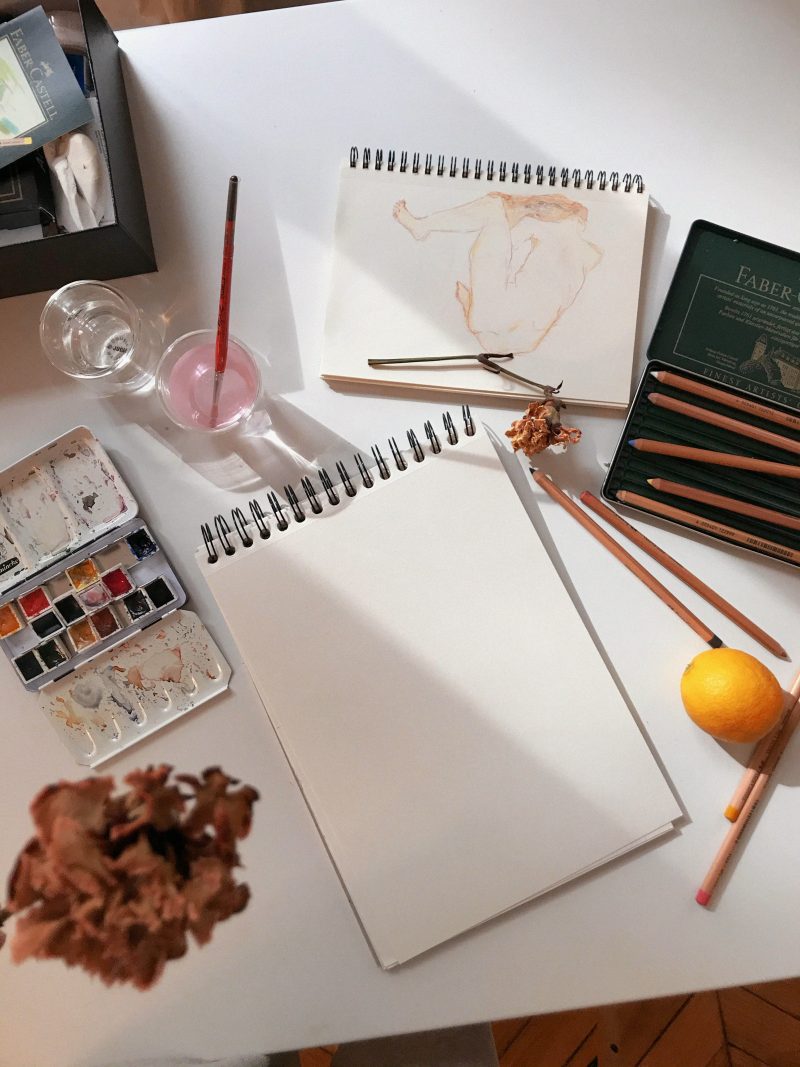 ‘L’après-midi est consacrée à un temps de création. J’ai démarré un journal où j’exprime ce qui me passe par la tête, ce que j’aimerais devenir après cette période, etc… puis durant les jours ensoleillés, je dessine et je peins. Je lis pas mal et remplis mes dossiers d’inspiration sur la peinture et l’architecture. Je viens de terminer ‘Le livre de ma mère‘ d’Albert Cohen, un chef-d’œuvre qui prône l’amour véritable.’