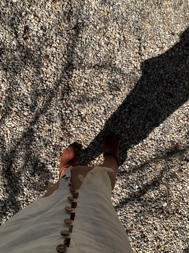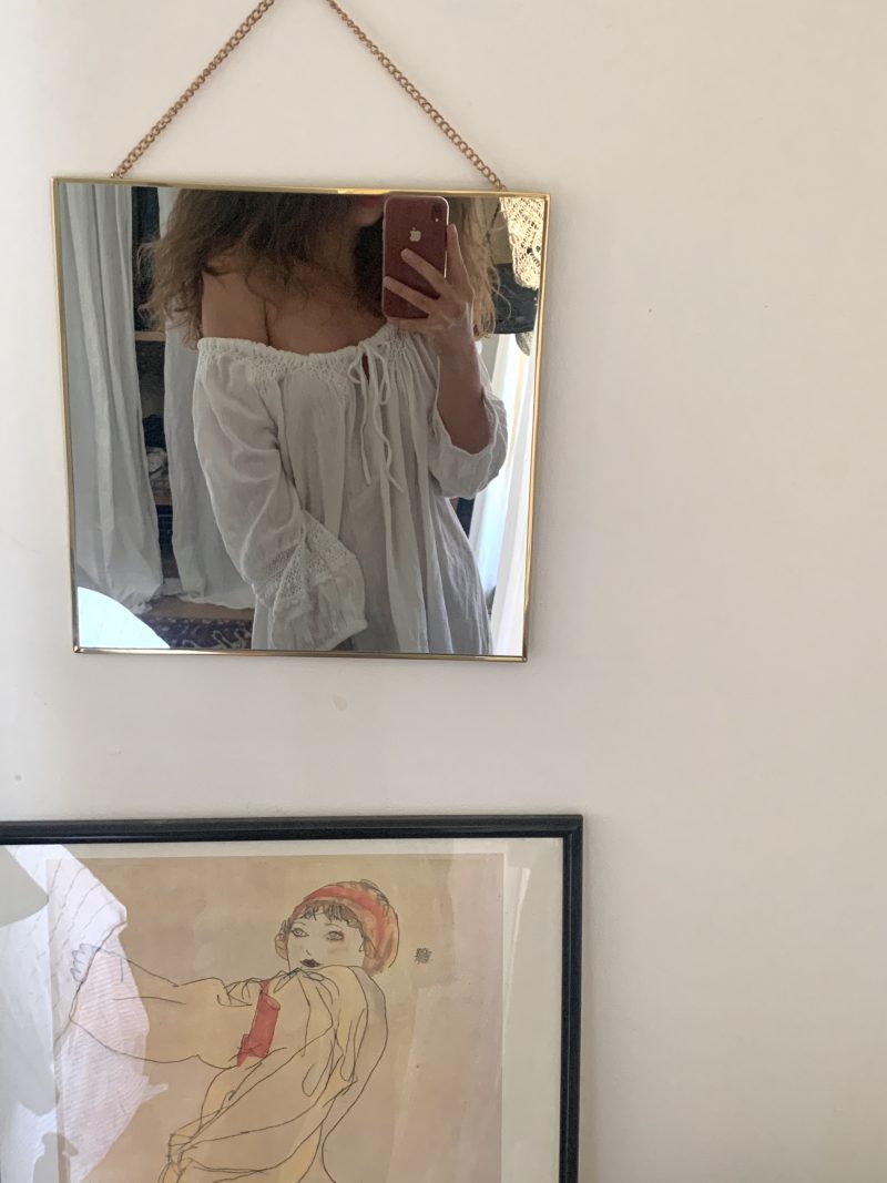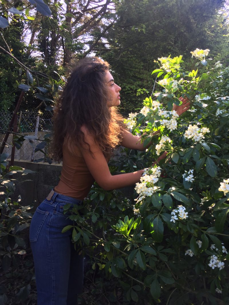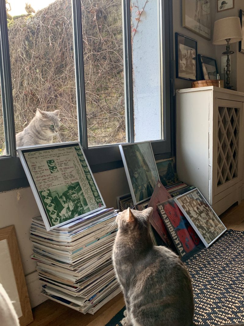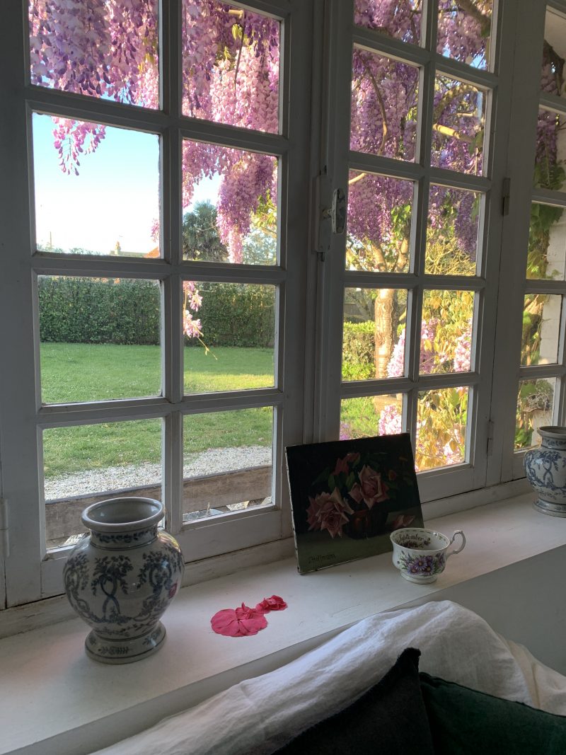 ‘Confiné en Normandie, à Carolles, un petit village près de la mer, dans la maison de mon enfance, entourée de ma famille, je suis consciente de la chance que j’ai. Le matin, je me lève tôt, voire très tôt pour être tranquille avec mon café. Je vais un peu dehors, je fais le tour du jardin (une vraie garde champêtre en devenir) La lumière est si belle ici.’