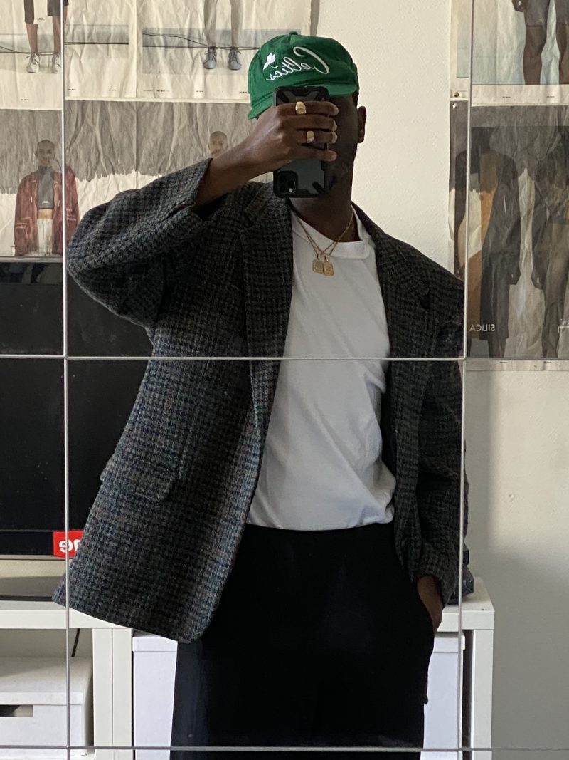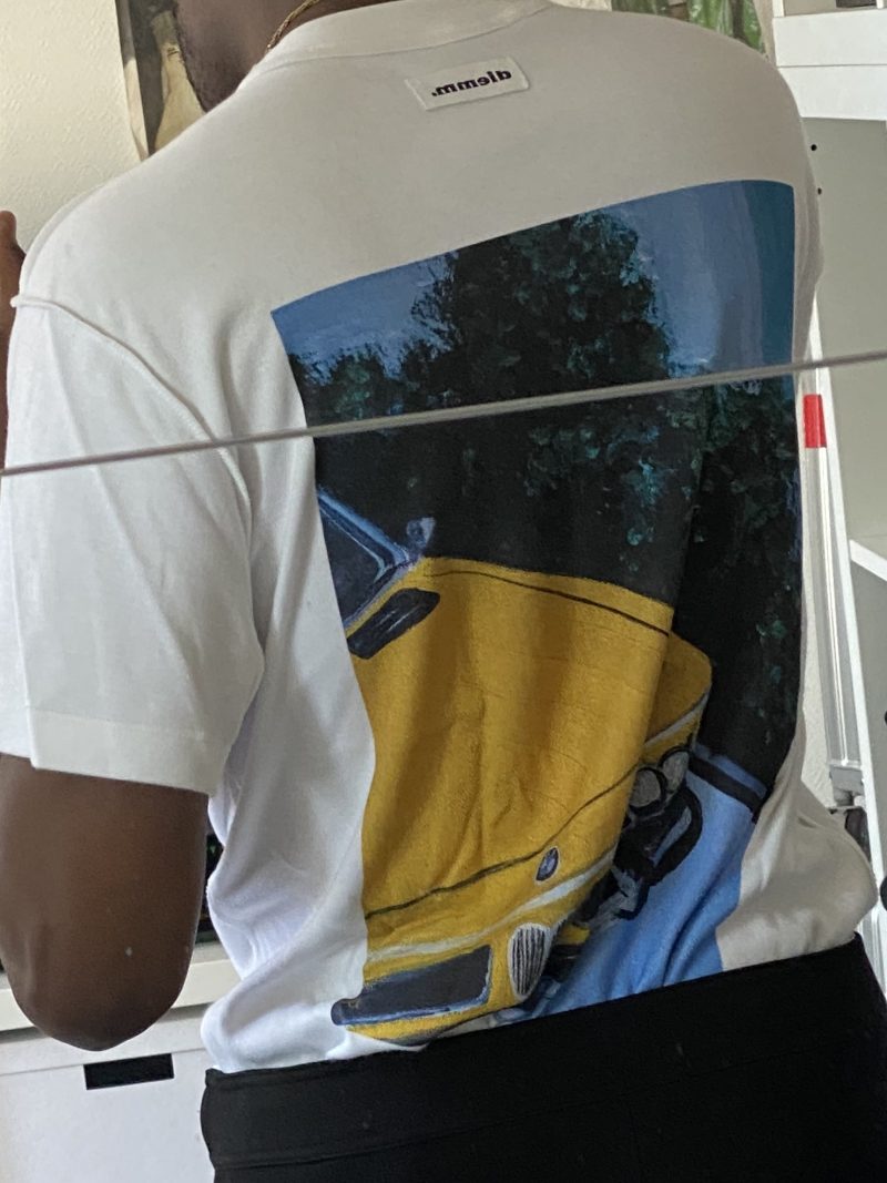 ‘Passionné de fringues, je me prépare des looks avec les vêtements de ma garde-robe. L’une de mes dernières acquisitions : le t-shirt diemm. avec la BMW dans le dos, que j’utilise juste pour aller faire mes courses du coup. J’adore aussi les casquettes et les bijoux en or.‘