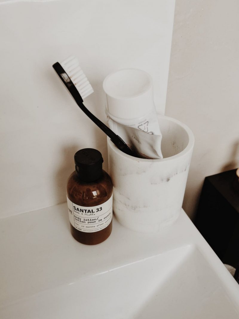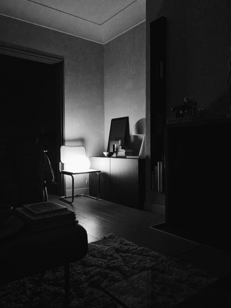 ‘Avec le temps, je développe une forme d’hyperactivité. Le confinement me le confirme, je ne sais pas m’ennuyer. J’ai la chance d’avoir pu maintenir mon activité professionnelle ‘intense’. Seulement, détachée des obligations d’un quotidien habituel : douche à 7 heures, bus, trajets, installations diverses… J’ai dégagé du temps que j’ai réinvesti dans des projets qui me tenaient à cœur depuis un moment. Notamment, soigner mon intérieur. J’ai repeint un repose-pied en tissu vieux rose en noir, mes toilettes, en noir, et enfin ma chambre (aucun doute possible sur la couleur).’