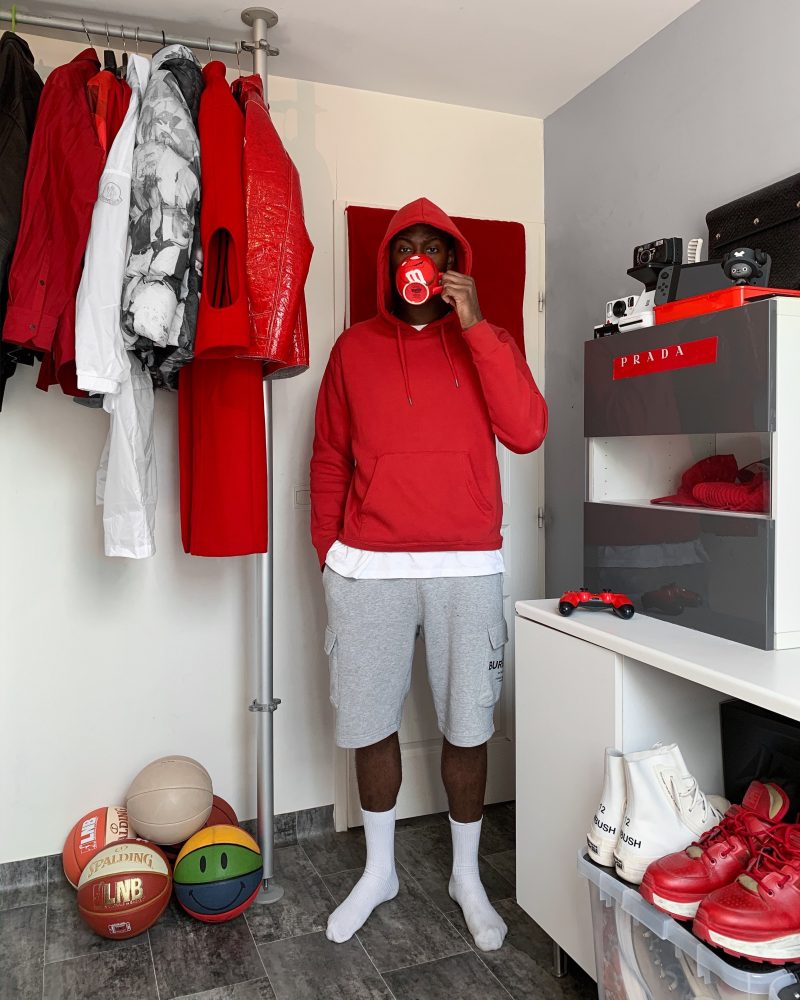 Basketteur, il continue de s’entrainer et de faire du sport, et s’accorde un peu de temps à jouer à la console. Au programme : PS4 ou battles de Mario Kart sur la Nintendo Switch. Il en profite aussi pour prendre des news de ses proches à l’étranger. Le confinement : l’occasion parfaite pour ce king de la sape de faire le grand tri dans son dressing.