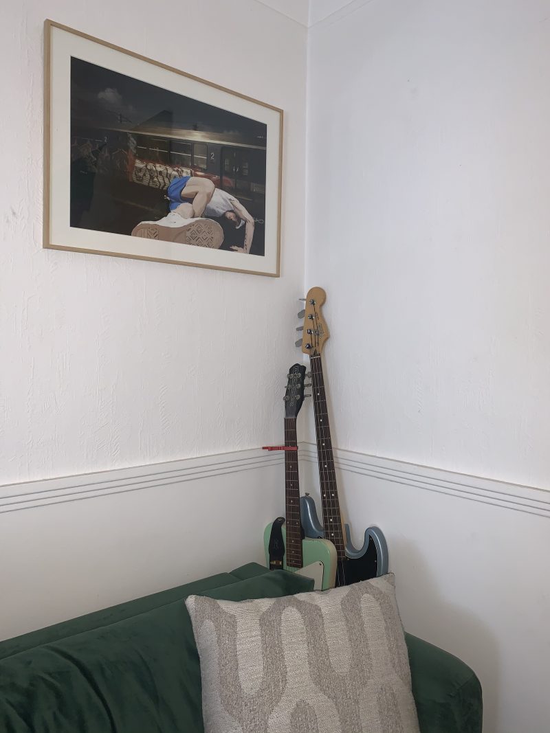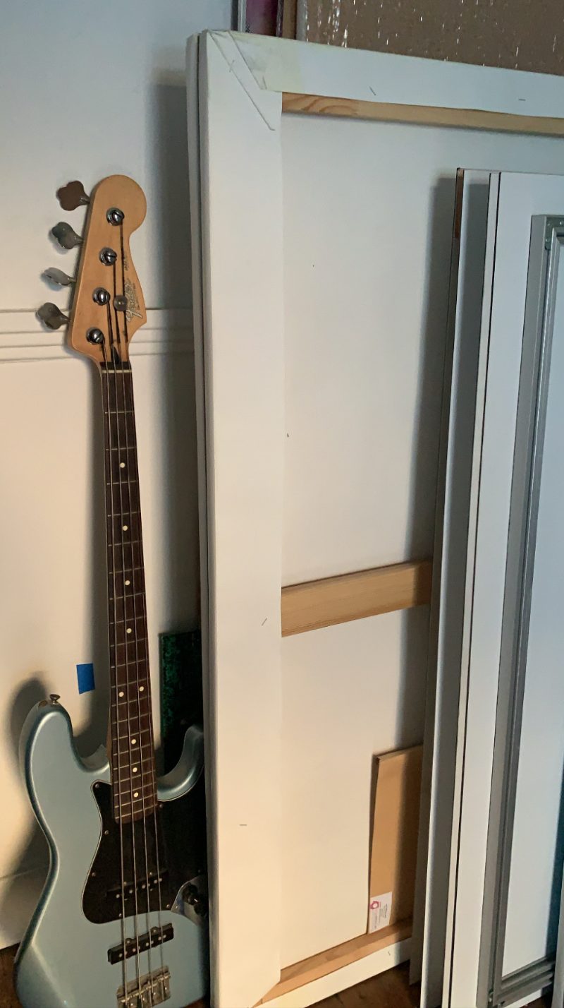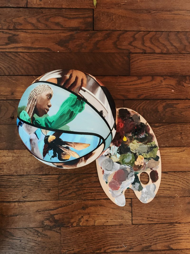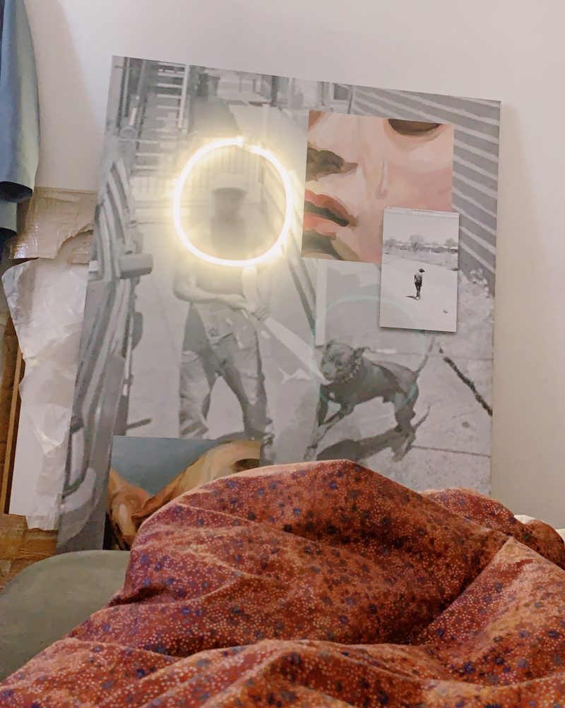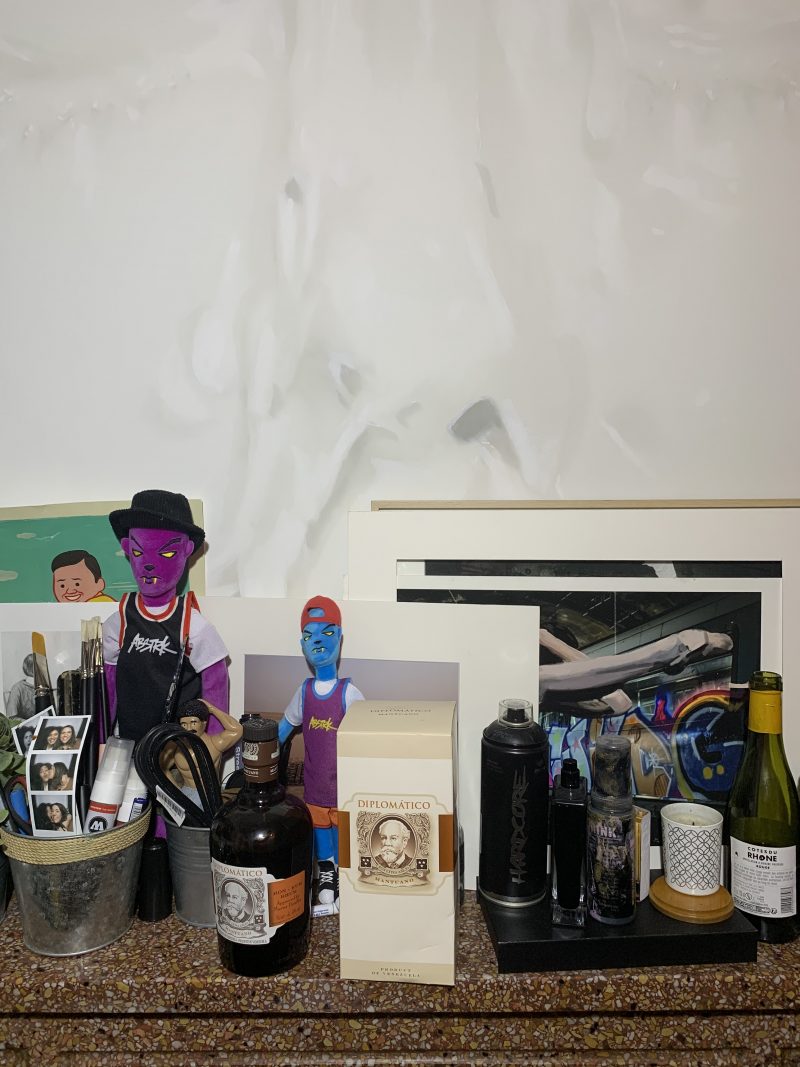 ‘Je peins beaucoup. Ne pouvant pas me rendre à mon atelier, j’ai improvisé un petit espace dans mon salon où je pouvais travailler. Je profite du confinement pour essayer et expérimenter de nouvelles choses. Je suis notamment en train d’apprendre le saxophone. Mes voisins détestent mais c’est vraiment cool de pouvoir s’essayer à un nouvel instrument. J’ai aussi ma petite routine de sport à laquelle j’essaie de me tenir mais je ne suis pas très assidue…’