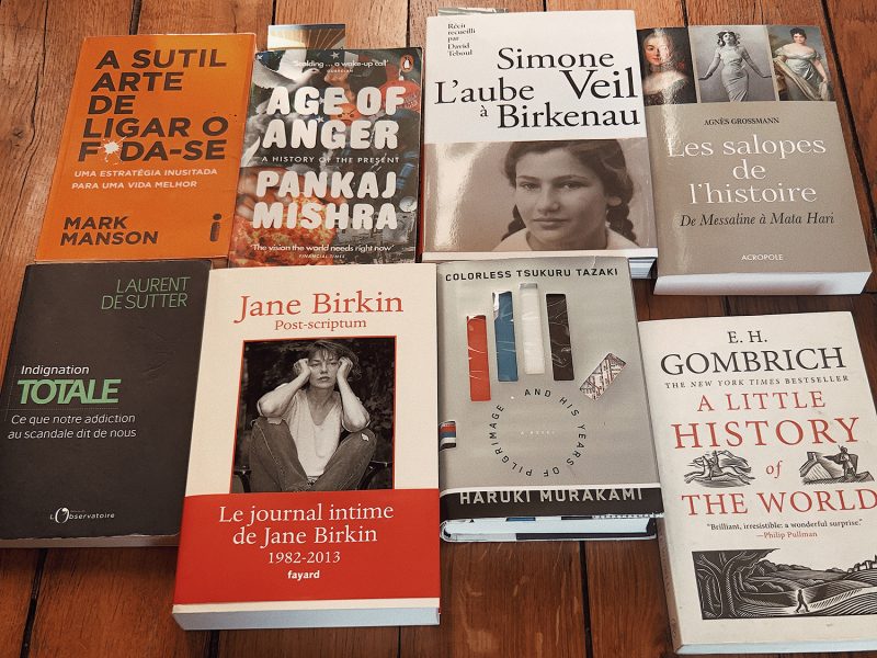 ‘J’ai fini de lire ‘Indignation Totale‘ qui parle de notre addiction au scandale et notre obsession pour la raison et maintenant je vais commencer ‘Colorless Tsukuru Tazaki and His Years of Pilgrimage‘ de Haruki Murakami pour m’éloigner un peu des faits actuels liés au virus. Vous trouverez sur les photos ci-dessous une sélection des livres qu’elle s’apprête à lire ou à relire.
