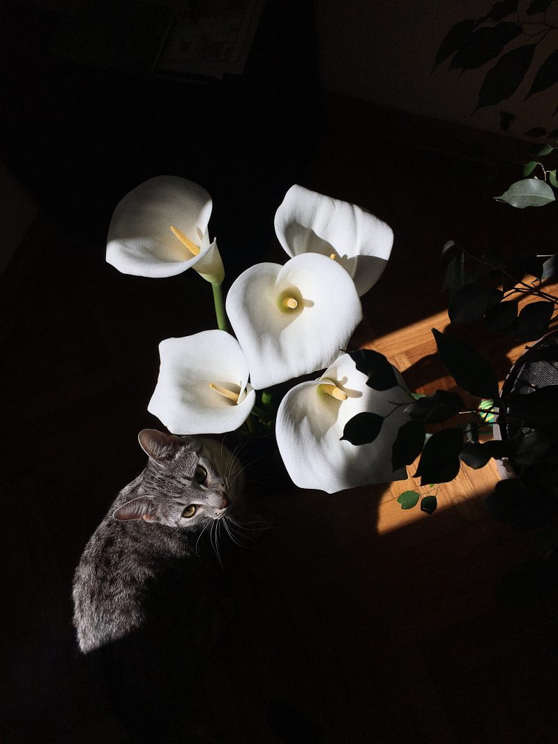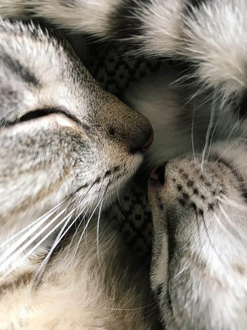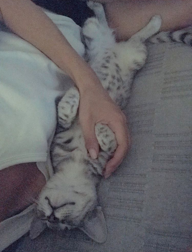 ‘J’ai aussi deux chats avec qui j’aime passer du temps. Ils sont comme des petits fantômes : Gia et Zoé (qui signifie ‘Vie’). Confinée avec mon copain, nous prenons le temps de faire des choses à deux. Nous cuisinons ensemble, nous lisons ensemble, nous méditons ensemble…. Je suis tellement contente de les avoir (lui et mes chats) dans ma vie.’