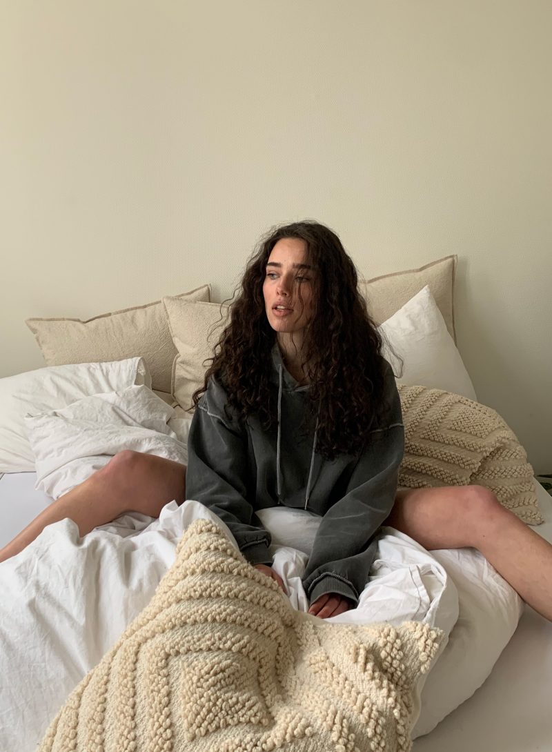 Elle cuisine beaucoup, s’occupe de ses plantes et fait du sport (du moins elle essaye). Elle préfère bronzer au bord sa fenêtre et travailler sur des projets pour l’université. Elle finalise en parallèle des vidéos pour sa chaîne YouTube. ‘J’ai hâte de recommencer à peindre bientôt‘ nous dit-elle.