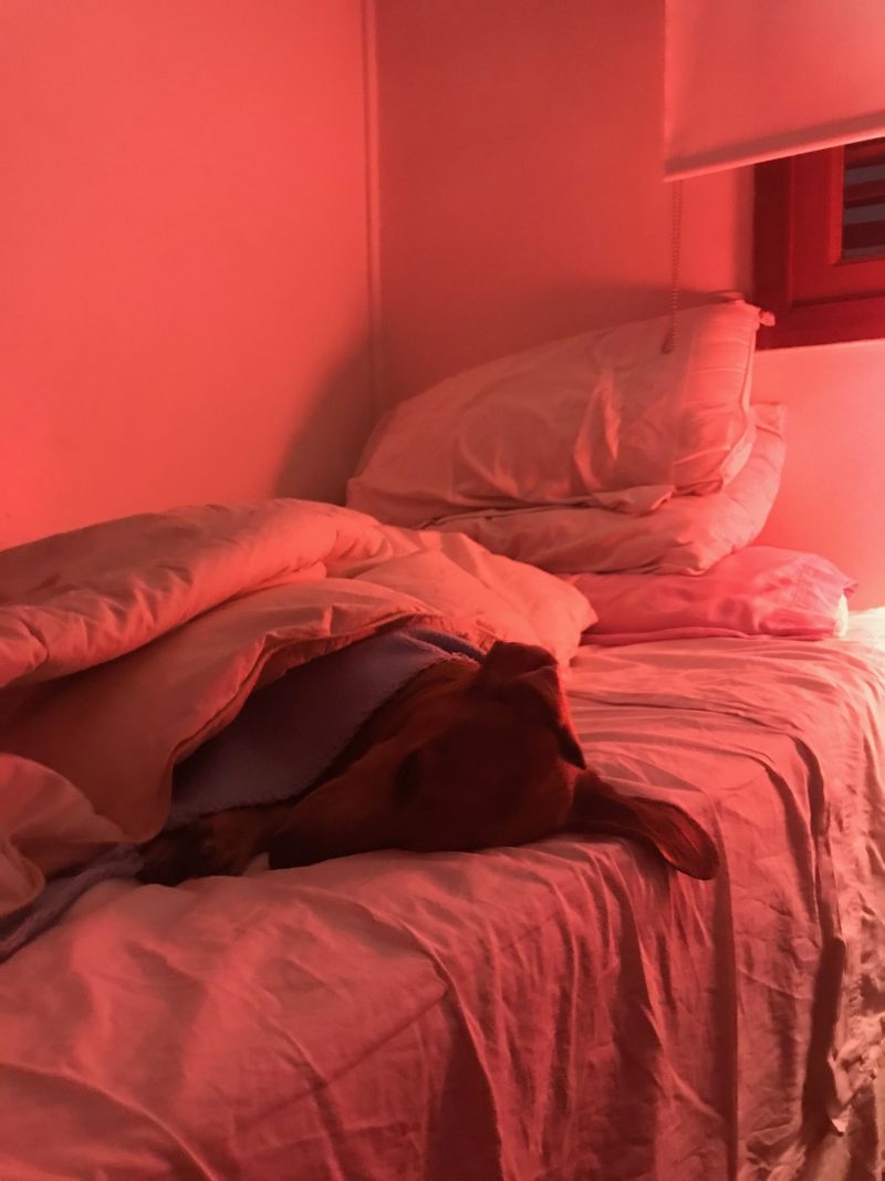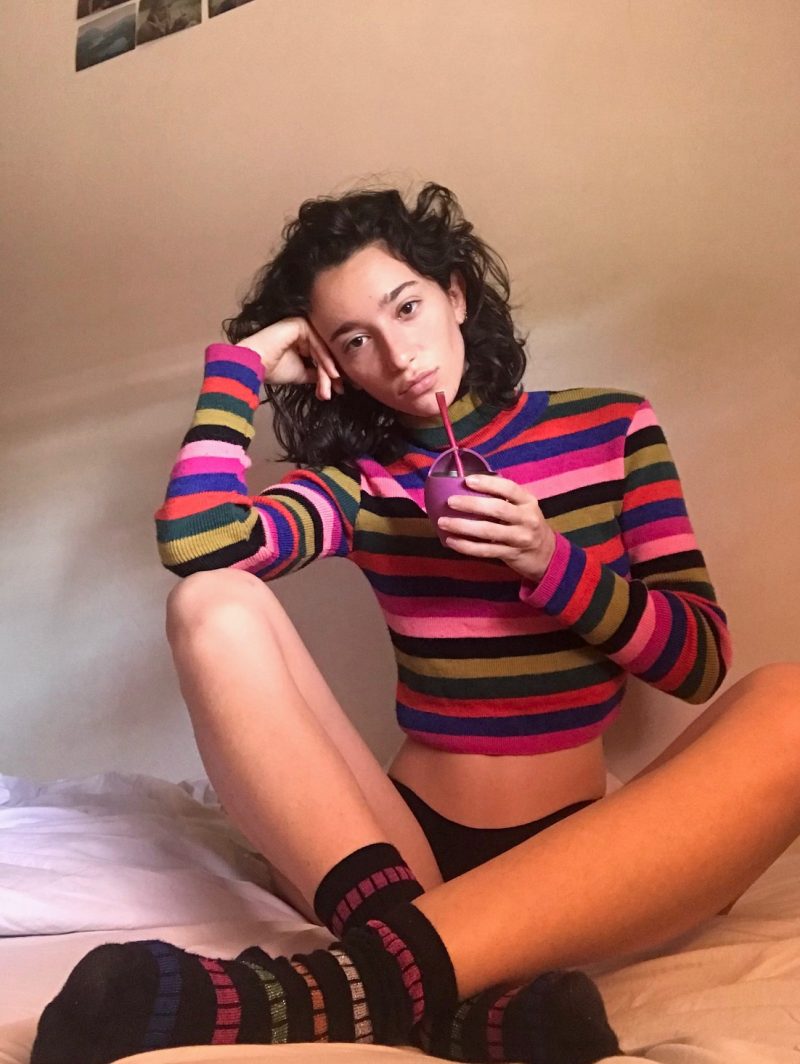 Elle écoute en boucle les albums suivants : ‘After Hours‘ de The Weeknd, ‘The New Abnormal‘ de The Strokes, ‘Bach‘ des Bandalos Chinos ou encore ‘Purple Rain‘ de Prince. ‘Je suis aussi une grande fan de podcast. J’écoute celui de Luke Meagher ‘Fashion Victim », ou encore ‘Potterless’ et tous les podcasts mystérieux que je puisse trouver.‘