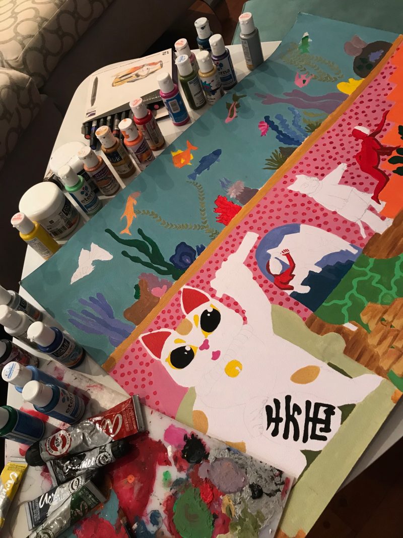‘J’ai beaucoup travaillé dans sur mon art et mes illustrations pendant le confinement. C’est vraiment difficile d’être productive, alors j’essaie de peindre et de produire de nouvelles choses chaque fois que je le peux. Comme un exercice mental.‘