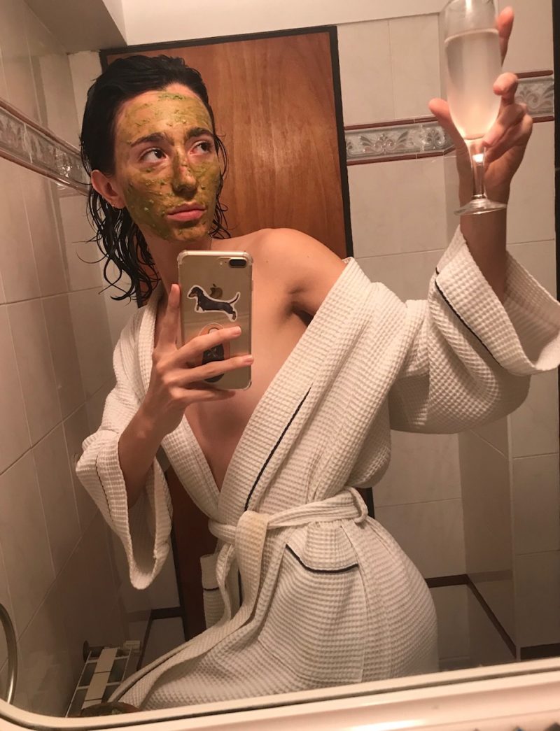 Comme beaucoup de mannequins, elle ne peut malheureusement plus travailler depuis des semaines. ‘J’essaye de m’organiser une nouvelle routine pour rester occupée et active. Je suis en parallèle des cours en ligne d’illustration et d’histoire de la mode et fais beaucoup de visites virtuelles de musées. L’une de mes activités préférées : regarder les opéras du MET et les ballets du ‘Teatro Colón’ de Buenos Aires.‘