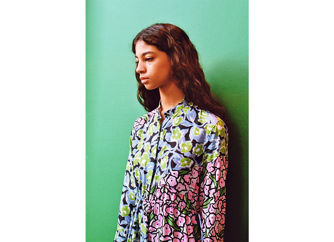Comme un clin d’œil à la signature si particulière de la marque, la collection comprend bien évidemment des imprimés à fleurs et des carreaux. Les motifs superposés apportent une géométrie insouciante aux manteaux, aux chemises oversize, aux jupes fluides et aux robes ultra-légères. Christian Wijnants donne vie à une élégance nouvelle, se jouant des volumes, pour laisser place à une femme androgyne avec une subtile touche de féminité.