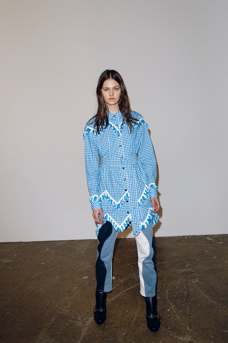Le duo a imaginé une collection poétique saupoudrée de rayures et de franges. Aux pieds des mannequins, on remarquera des bottines vernies et des santiags colorées ; un choix osé et affirmé. Ils ont su remanier cette saison les codes d’un vestiaire qui nous est familier en lui ajoutant un côté décalé, tout en augmentant sa désidérabilité.