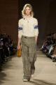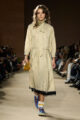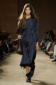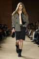 Cette saison, Coach dépasse les frontières géographiques de New York pour esquisser une vision élargie de la mode américaine. Entre glamour hollywoodien des années 30 et 40, esprit varsity des campus et énergie brute de la culture skate, la collection compose une fresque intergénérationnelle où se croisent tailoring 40’s et sportswear 70’s. Pantalons flare, jupes trapèze, blazers structurés, parfois portés à l’envers, dialoguent avec des robes longues à col montant mêlant classicisme couture et accents grunge.