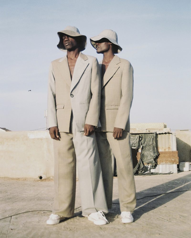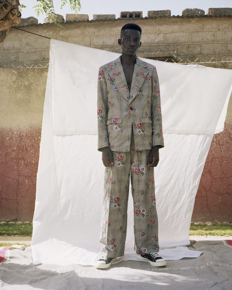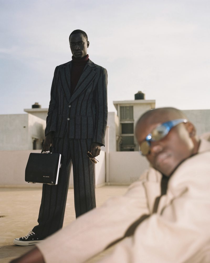 Inspiré des années 70, il réinterprète ses souvenirs d’enfance, avec comme principale source d’inspiration les costumes que portait son père pour aller travailler. Beni, en référence au mot bénédiction, est une belle démonstration de force, de fierté et d’élégance. Les costumes sont unisexes et fabriqués à la main entre Paris et le Sénégal.