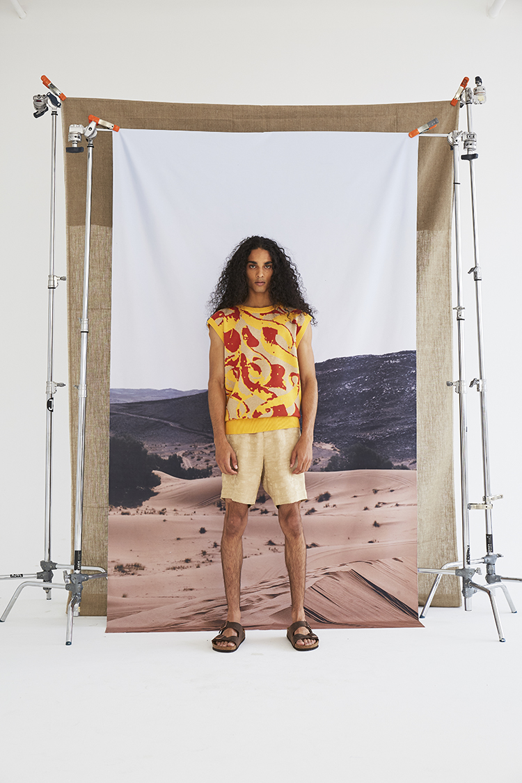 À travers les dunes du Sahara, des sentiers de chameaux dessinent des ombres entre le soleil et le sable. À proximité, des lampes incandescentes éclairent les médinas alors que le ciel rose du soir se cache dernière les riads. Victor Li dévoile pour l’été prochain une collection aussi solaire et vibrante que cette ville aux multiples facettes.