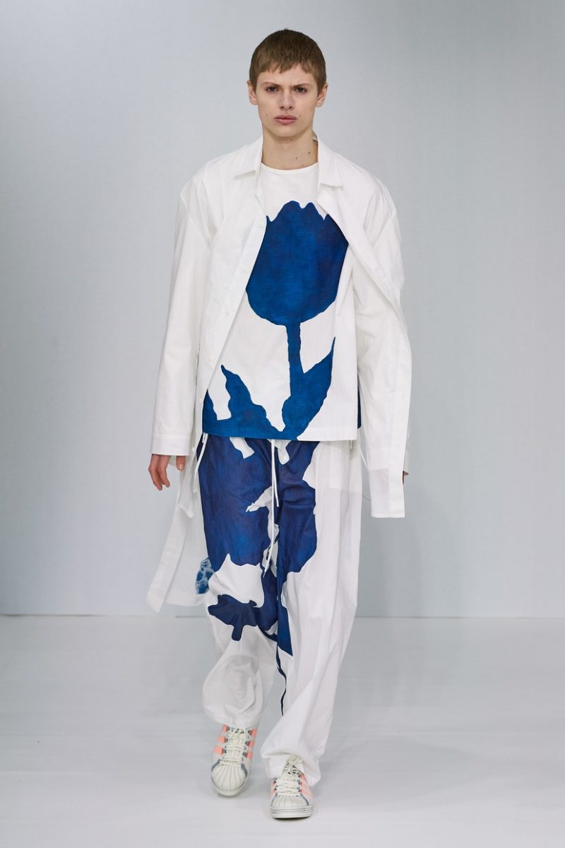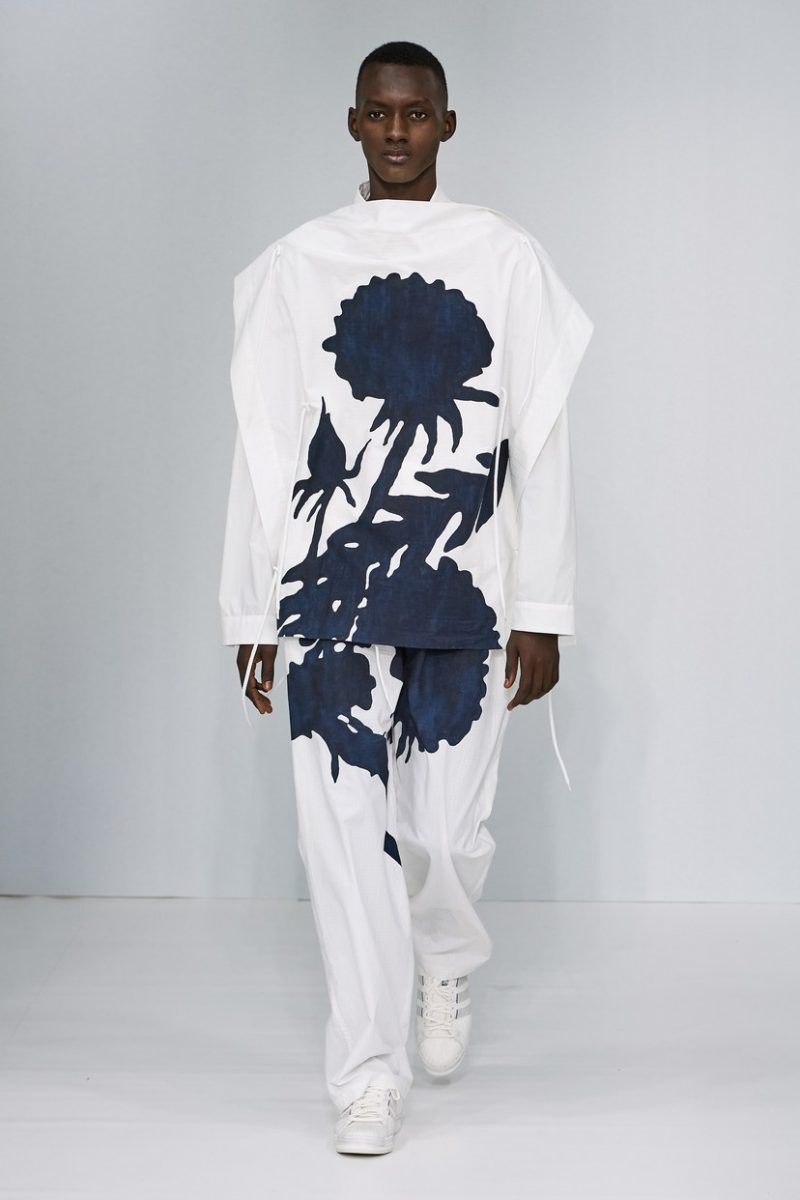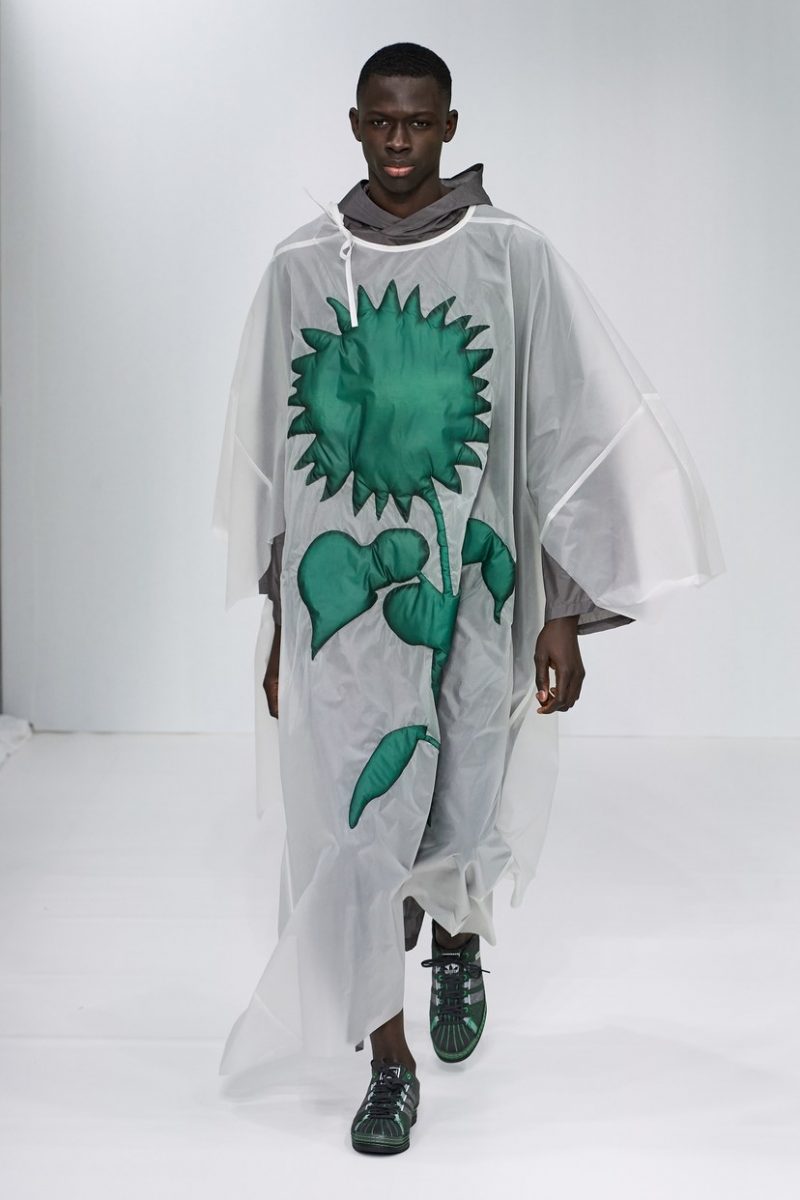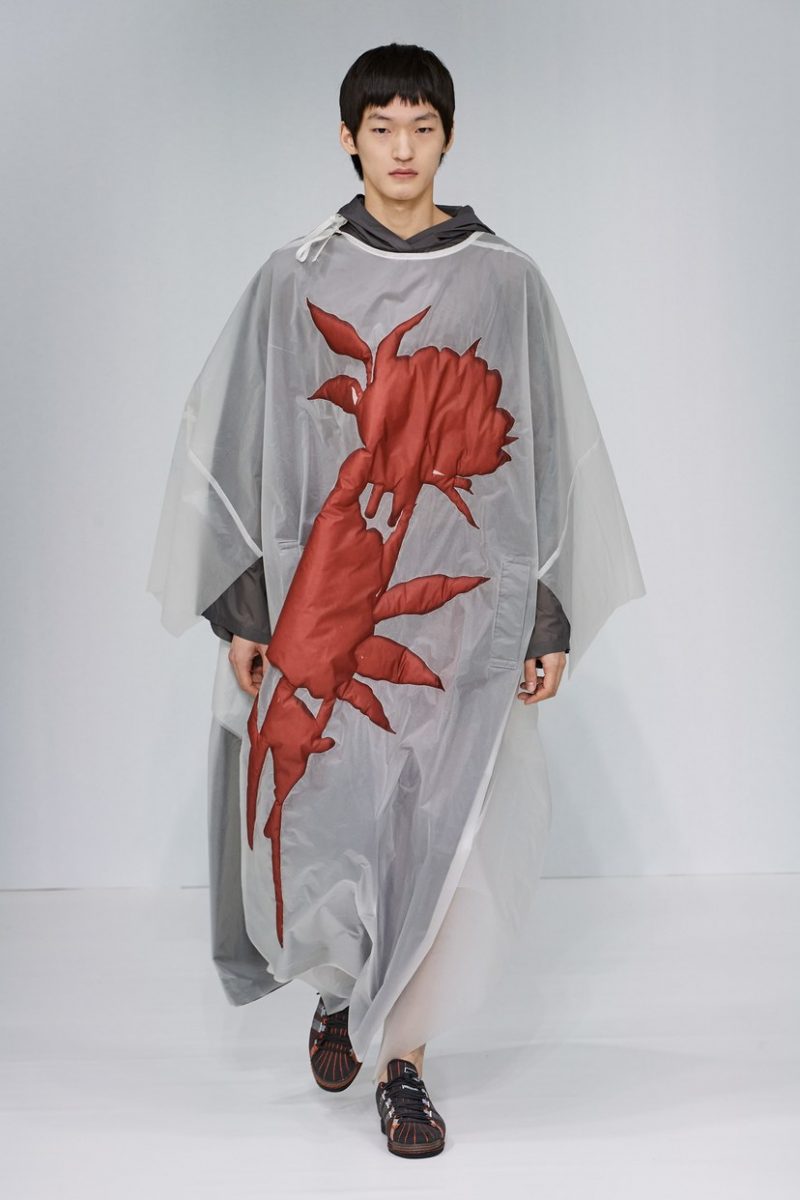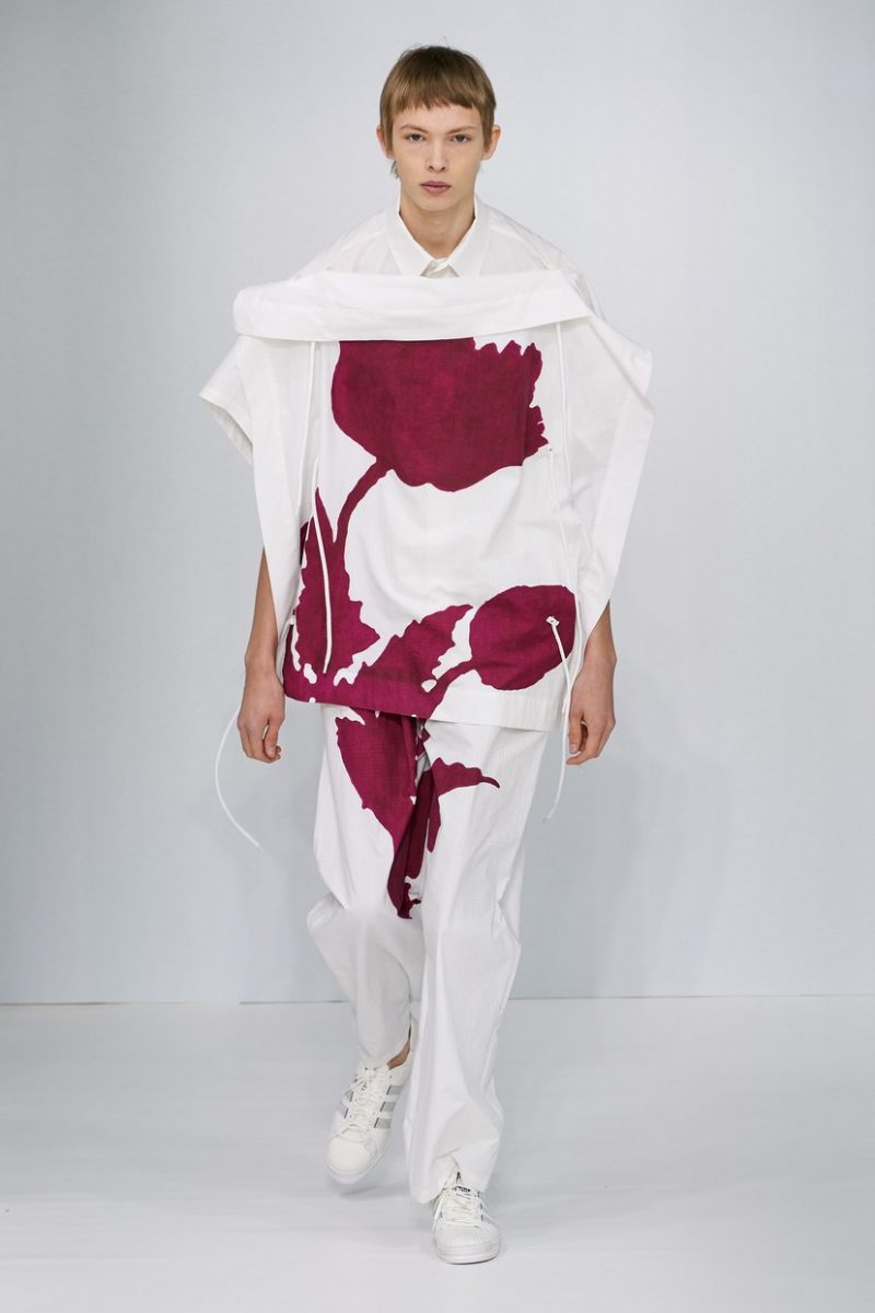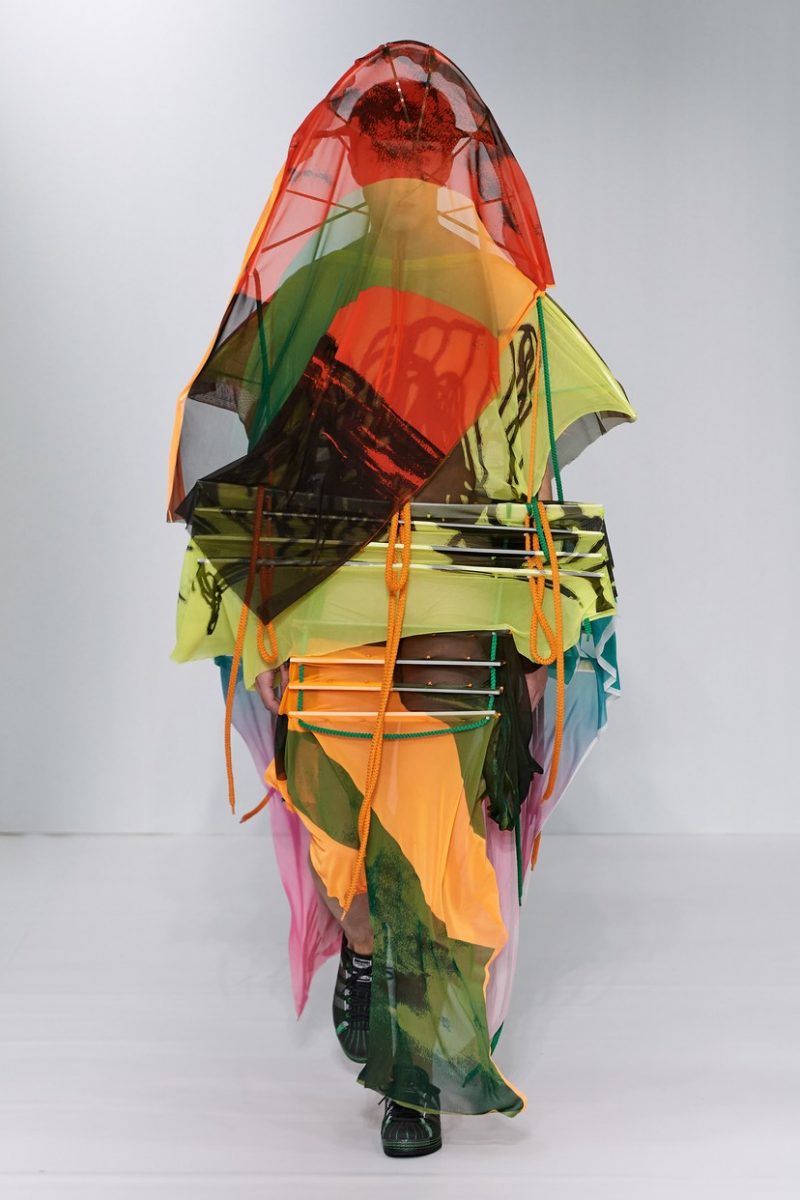 Inspirées des uniformes de travail, les silhouettes de Craig Green sont plus qu’ingénieuses : cordons, sangles, suspensions, rembourrages et superpositions sont au programme de cette nouvelle collection.