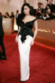 Autre signal fort : la montée du contraste. Noir profond contre blanc immaculé, minimalisme graphique face à l’opulence, les looks jouent sur l’opposition pour captiver l’attention. Cette dualité se retrouve dans les matières, mêlant satin, velours, transparence et textures sculpturales, donnant au tapis rouge une dimension à la fois contemporaine et tactile.