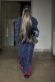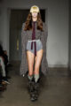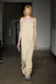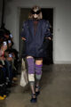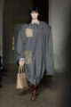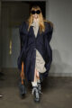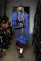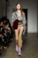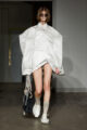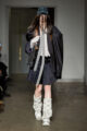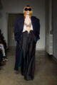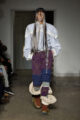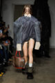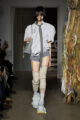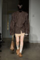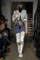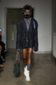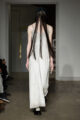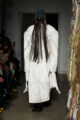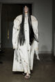 La collection s’articule autour d’un mouvement essentiel : marcher. Un geste simple capable de transformer l’équilibre du corps, et peut-être même la direction du futur. Sur le podium, les silhouettes se déstabilisent. Les visages disparaissent derrière des constructions capillaires sculpturales, brouillant les repères et rendant les corps presque anonymes.