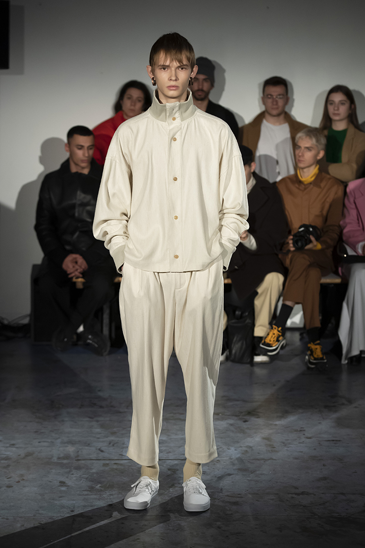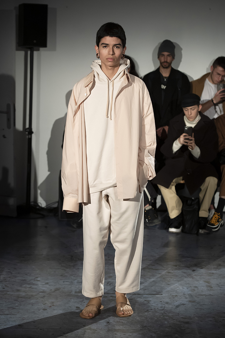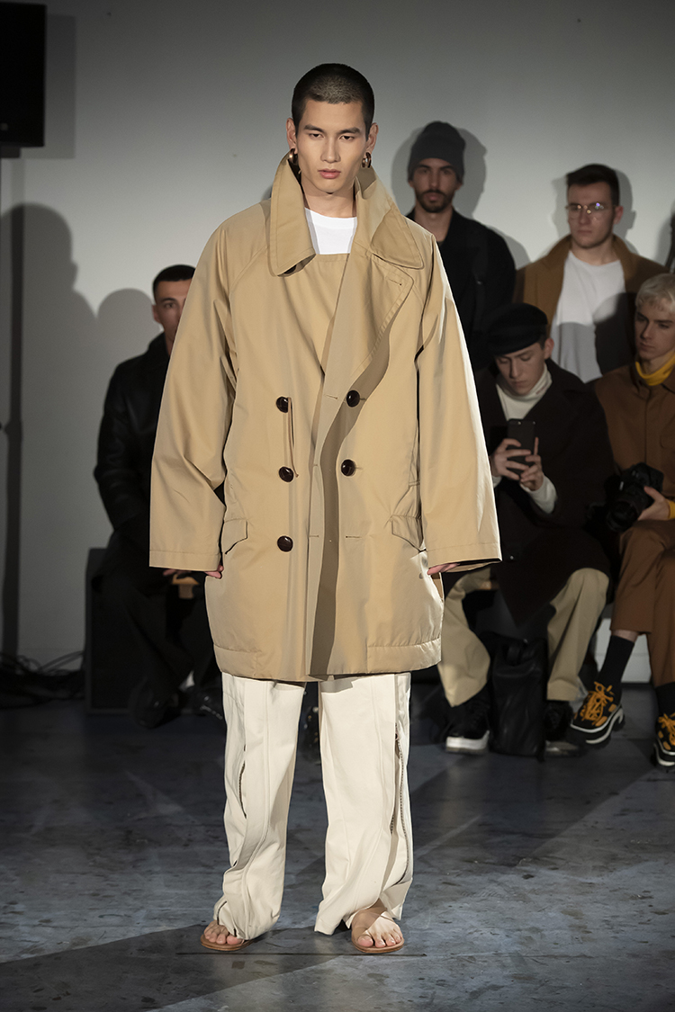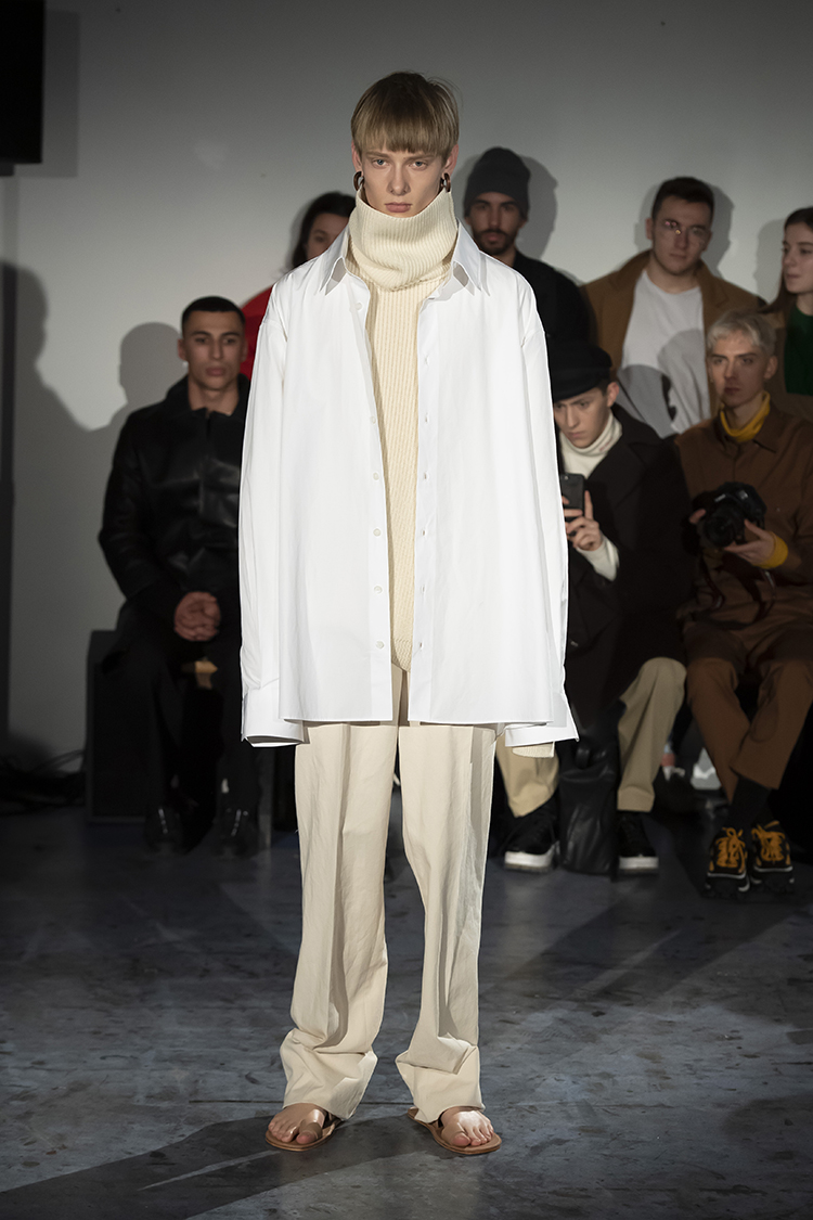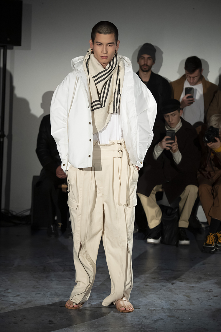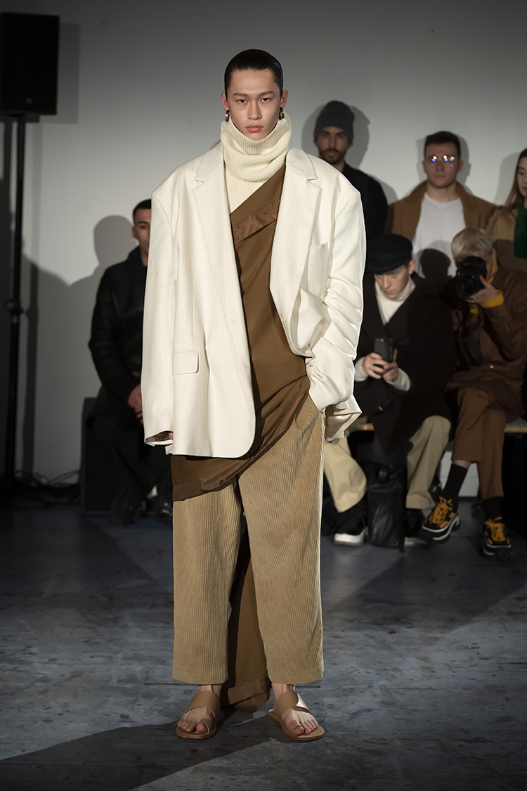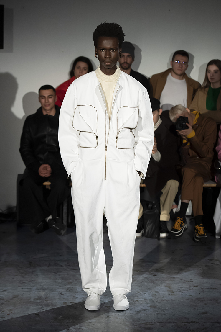 Pour sa nouvelle collection Hed Mayner imagine ses vêtements comme des sculptures. Il propose des silhouettes aux identités multiples, parfois floues, comme un questionnement sur qui nous sommes. Hed conçoit des collections d’une simplicité rare, sans fioritures, avec un équilibre parfait. Entre rêve et réalité, il propose des pièces qui allient parfaitement confort et fonctionnalité. Cette saison, ce rêve provient d’une recherche sur élégance et le calme. Découvrez dès maintenant les looks du défilé automne-hiver 2019/2020 de Hed Mayner.