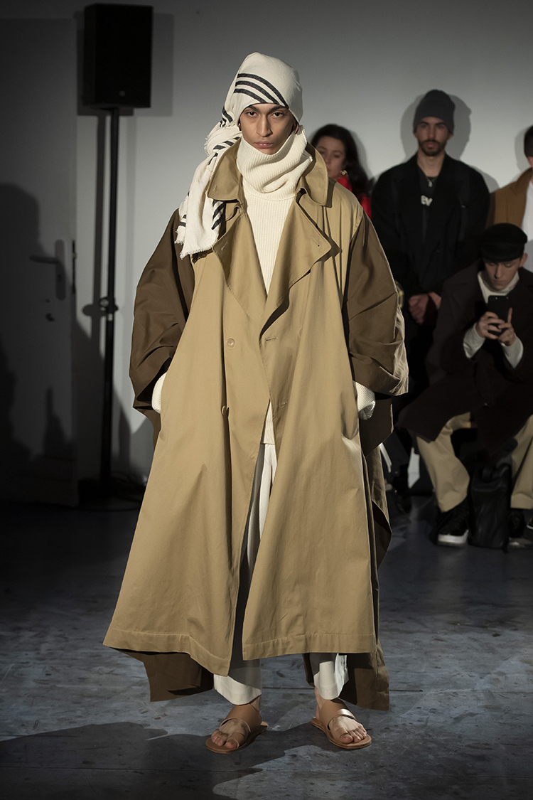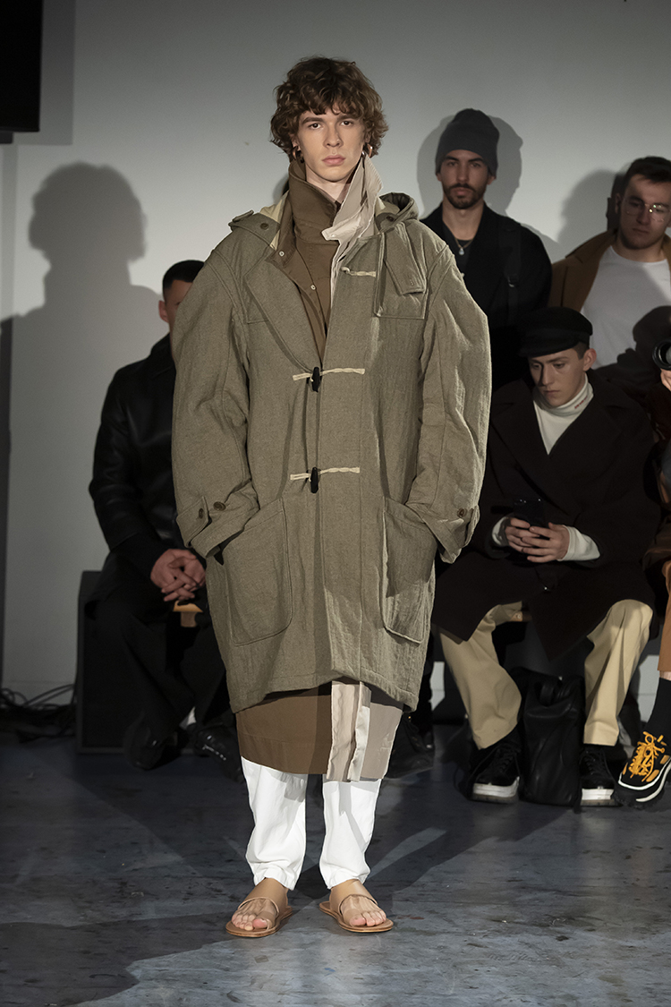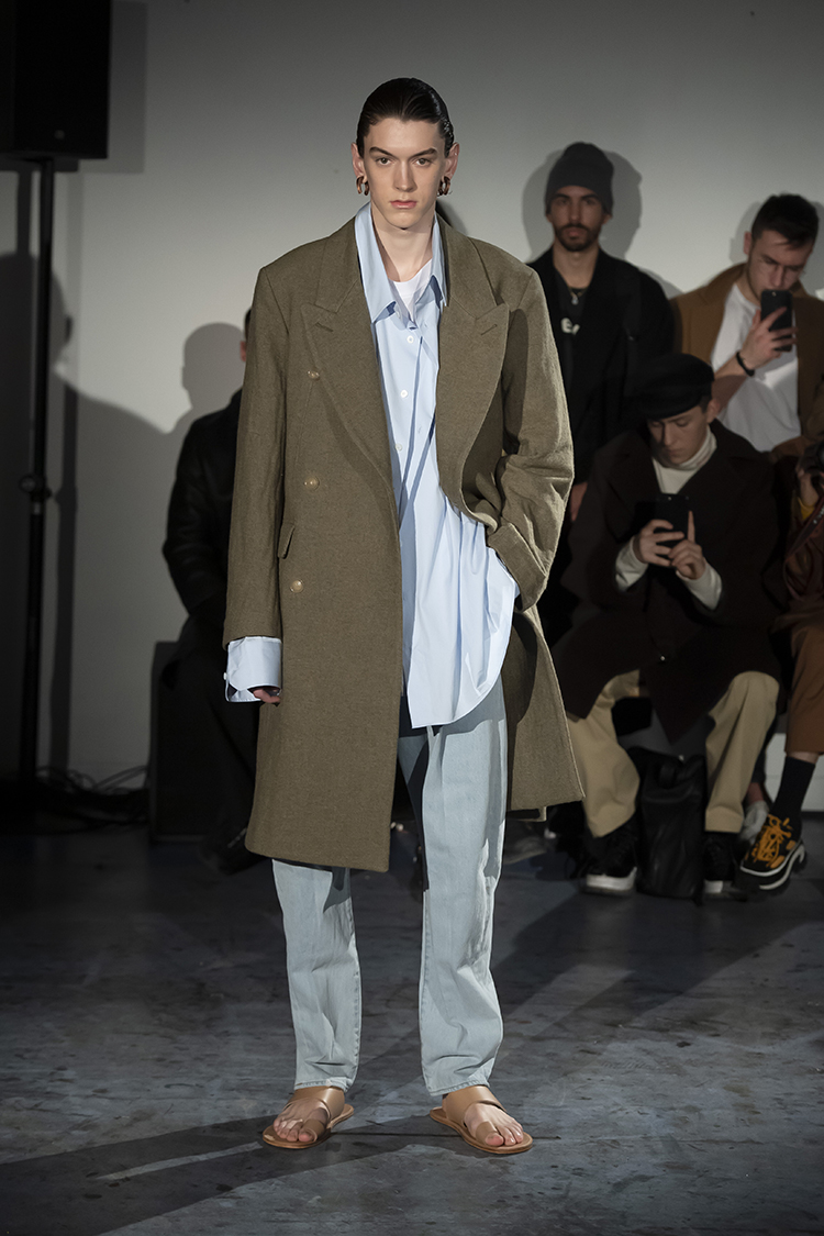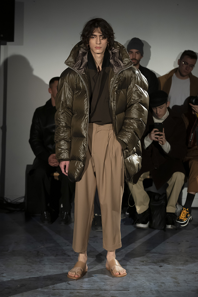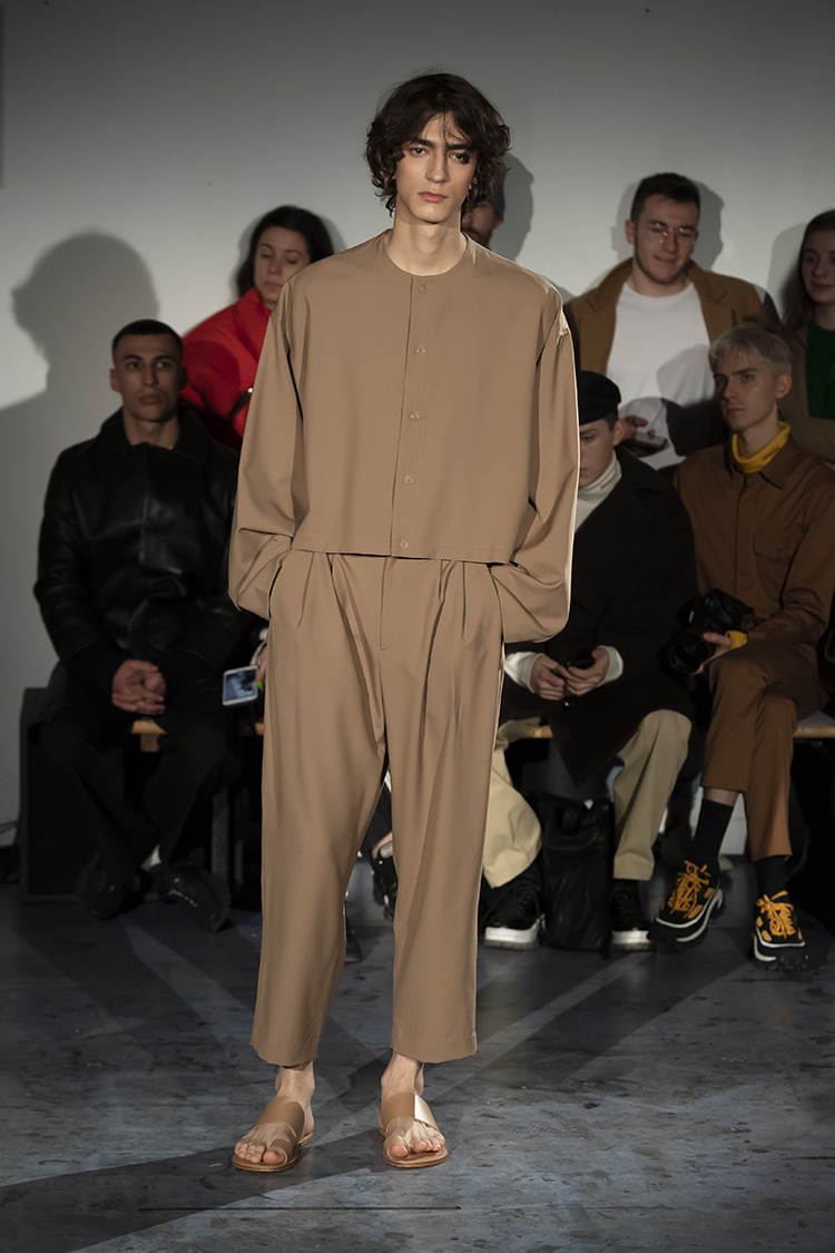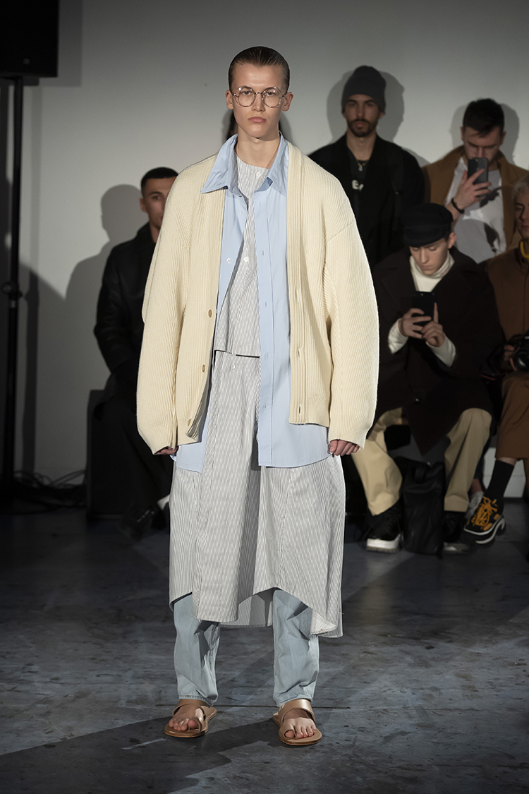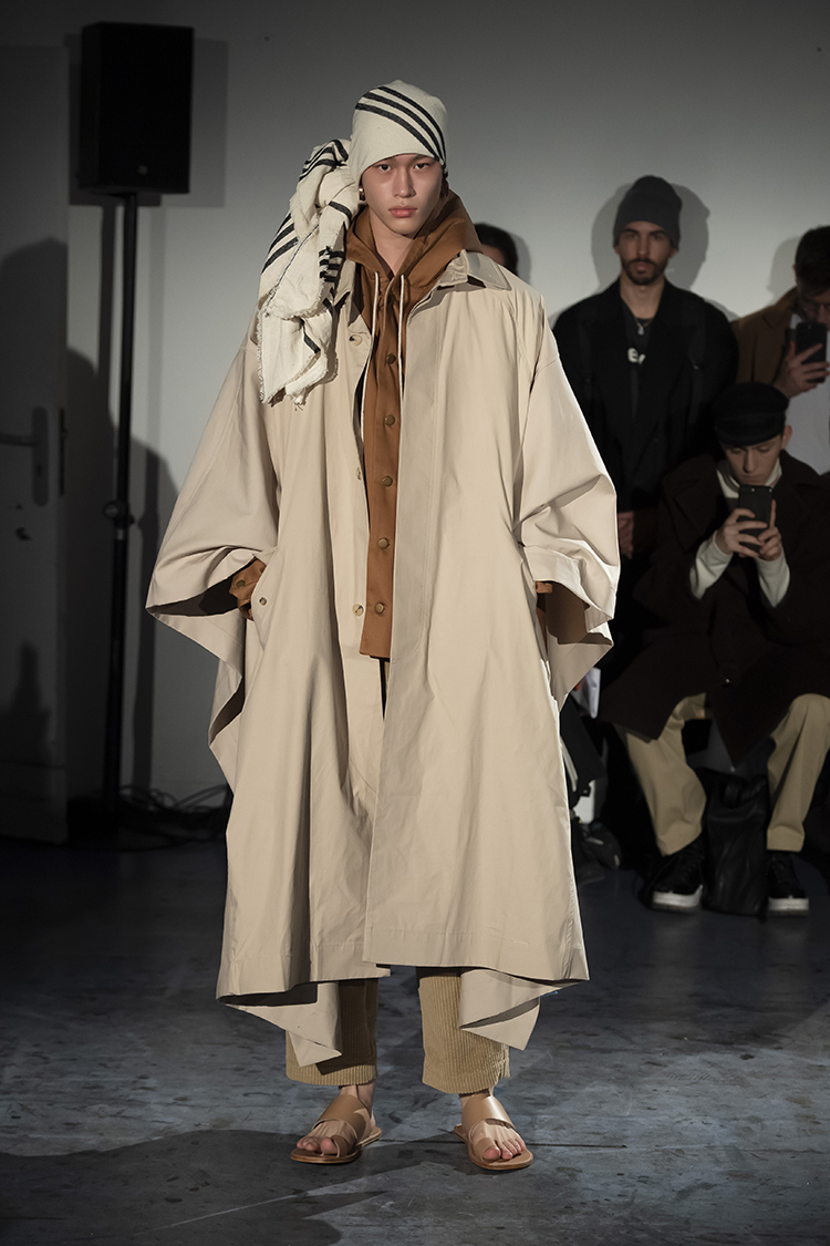 Pour sa nouvelle collection Hed Mayner imagine ses vêtements comme des sculptures. Il propose des silhouettes aux identités multiples, parfois floues, comme un questionnement sur qui nous sommes. Hed conçoit des collections d’une simplicité rare, sans fioritures, avec un équilibre parfait. Entre rêve et réalité, il propose des pièces qui allient parfaitement confort et fonctionnalité. Cette saison, ce rêve provient d’une recherche sur élégance et le calme. Découvrez dès maintenant les looks du défilé automne-hiver 2019/2020 de Hed Mayner.