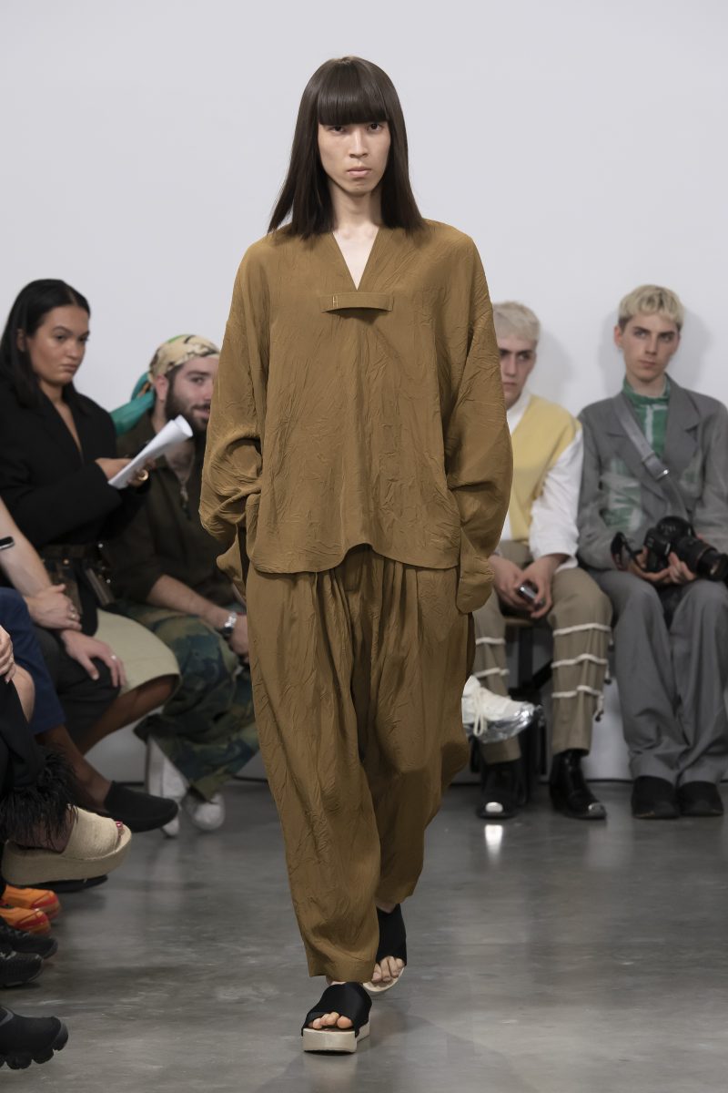 Pour la saison printemps-été 2020, Hed Mayner explore l’idée de minimalisme en réduisant les vêtements à leur fonction première. Abandonnant l’influence militaire des saisons précédentes, ses silhouettes migrent doucement vers de nouvelles formes, beaucoup plus légères.