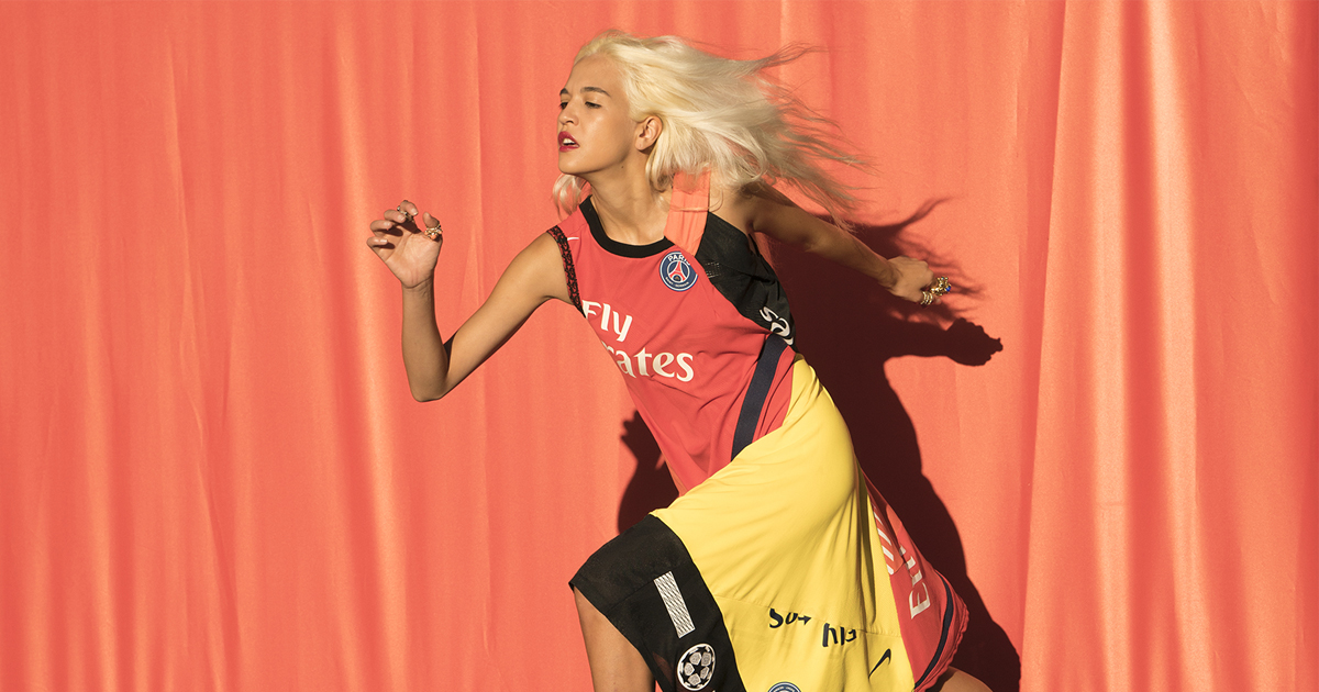 Lors de son dernier show, la marque parisienne Koché dévoilait une collaboration unique avec le club de football du Paris Saint-Germain. Une collection placée sous le signe de l’anticonformisme où maillots, joggings et écharpes font le show. Le vestiaire du club parisien se refait une beauté pour l’été 2018. Robes du soir et maillots de foot se côtoient sans embrouille, le mix est surprenant mais bien joué.