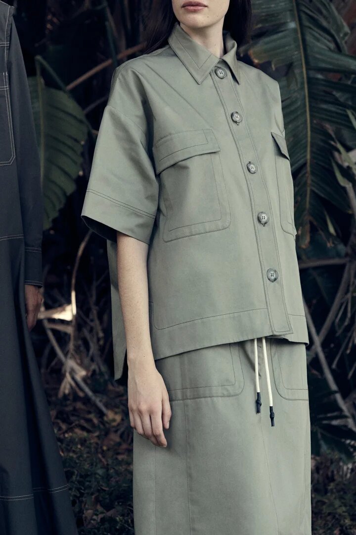 Avant de considérer la forme d’un vêtement, vient le tissu ; à la fois un début et une fin dans la création des vêtements de Lee Mathews. Les cotons, le lin, le denim, la toile, le tweed, la laine et la georgette de soie proviennent du monde entier. Les imprimés sont eux conçus en interne et la signature finale est typiquement australienne.