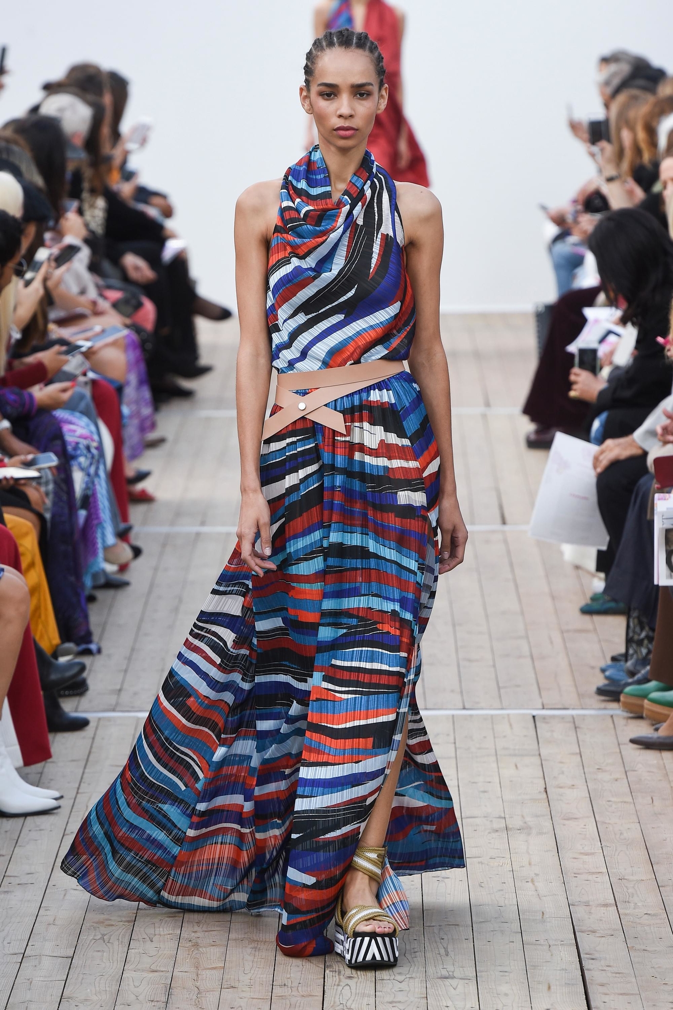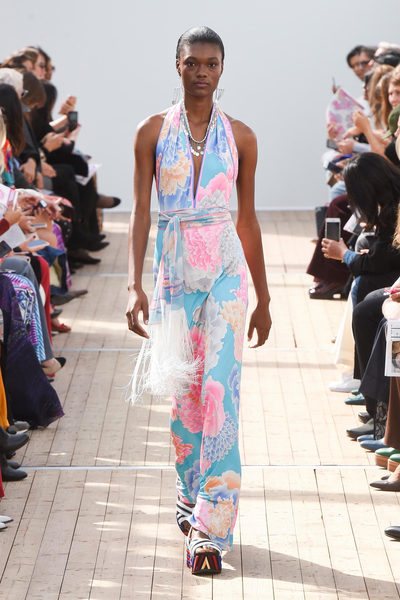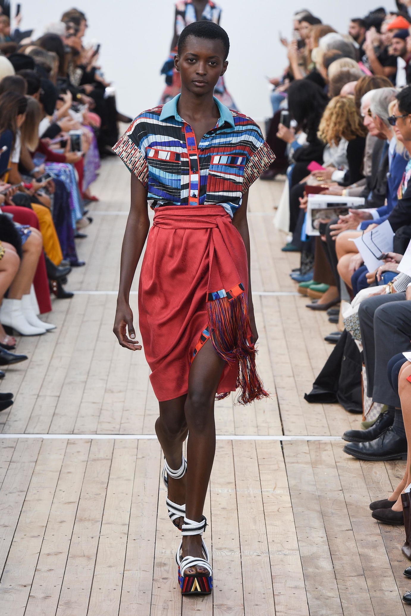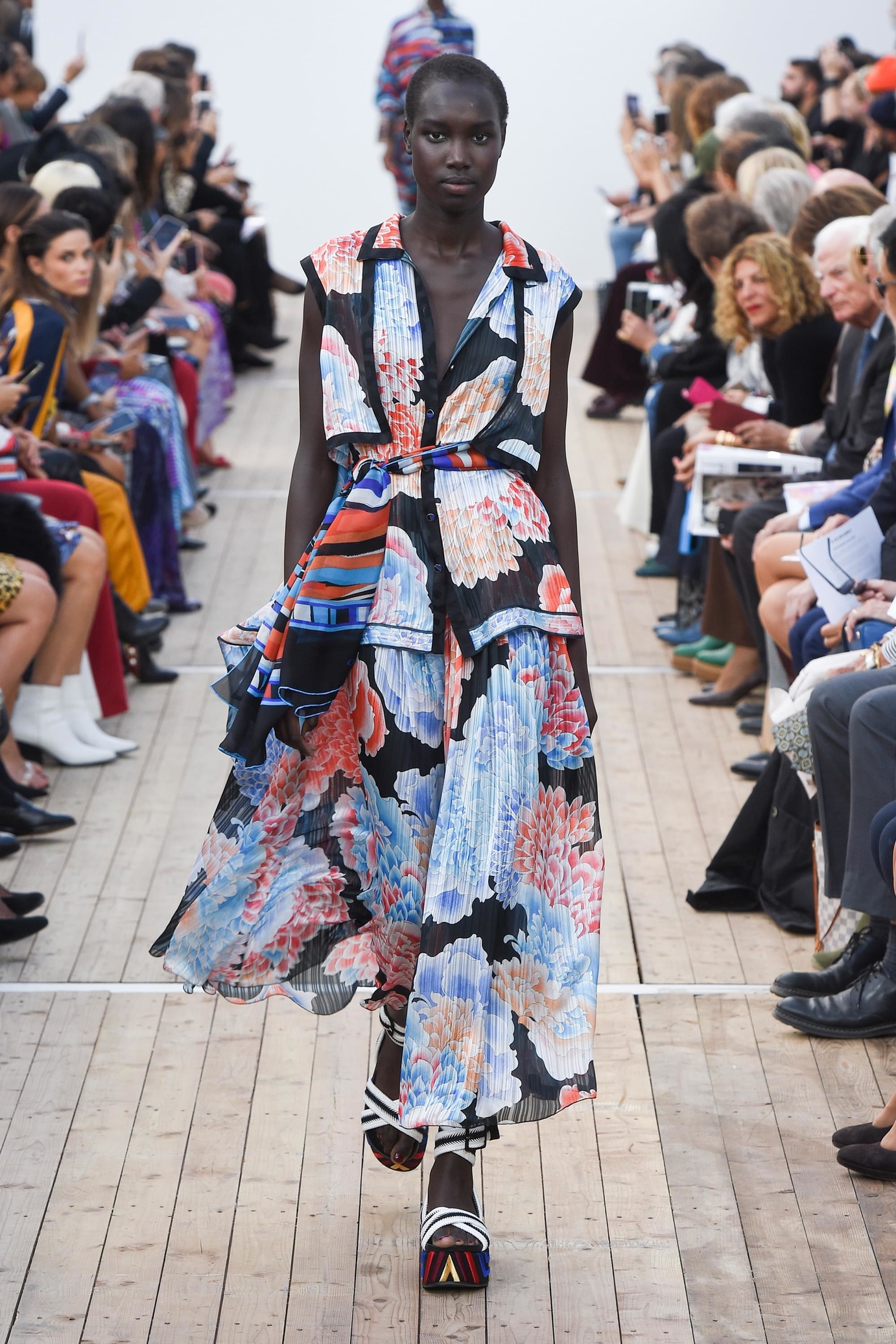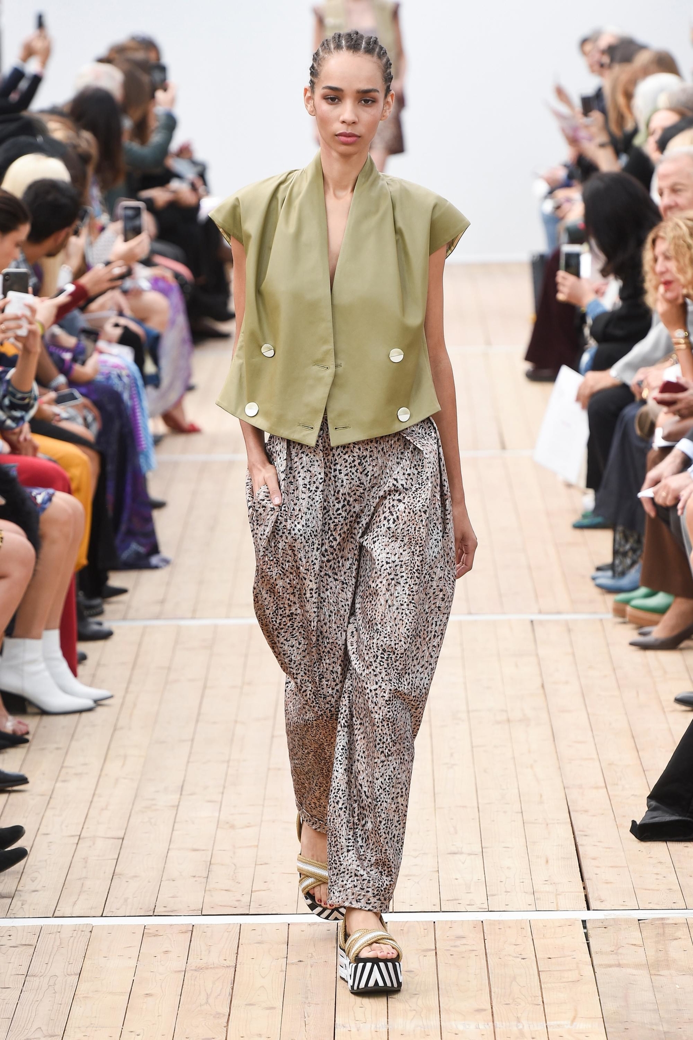 Pour son défilé printemps-été 2019, Leonard Paris – qui célèbre ses 60 ans cette année – nous transporte entre les frontières de la Tanzanie et du Kenya. Un show qui sonne comme une ode au voyage et à l’évasion. Imaginée par Christine Phung, cette collection combine parfaitement le mélange esthétique, entre mode française et inspirations venues d’ailleurs. Un défilé haut en couleur : des drapés, de l’asymétrie, des imprimés qui s’inspirent de la savane du Masai Mara et des tissus de la région. Sandales à plateforme aux pieds, prenez le chemin de la plage avec style !