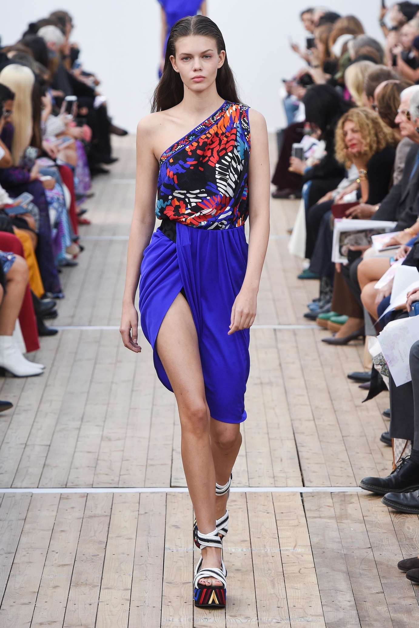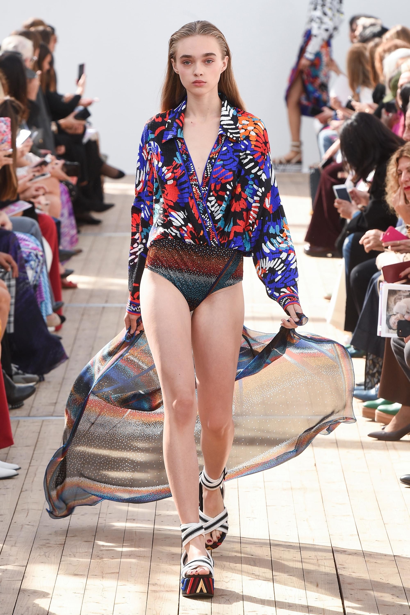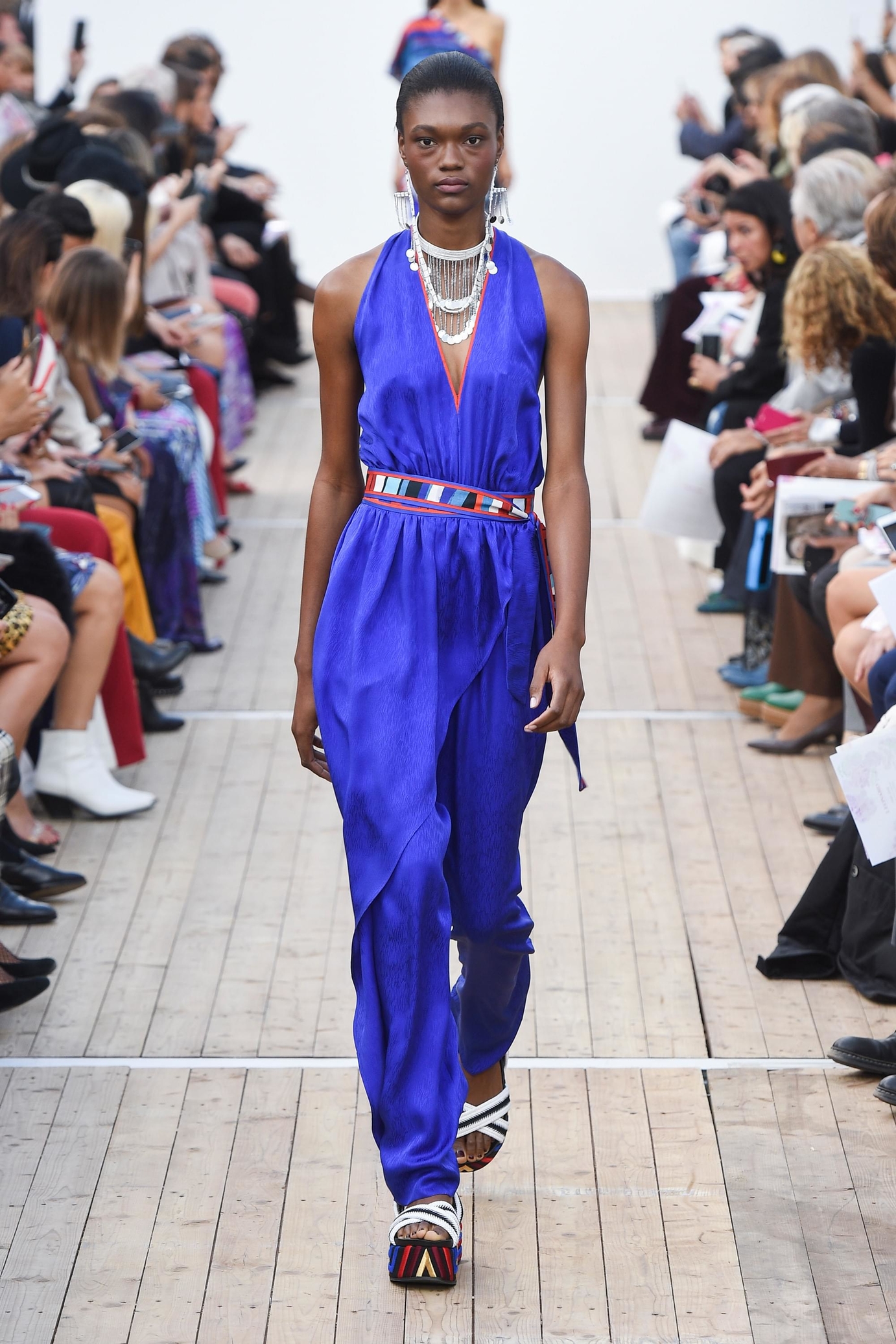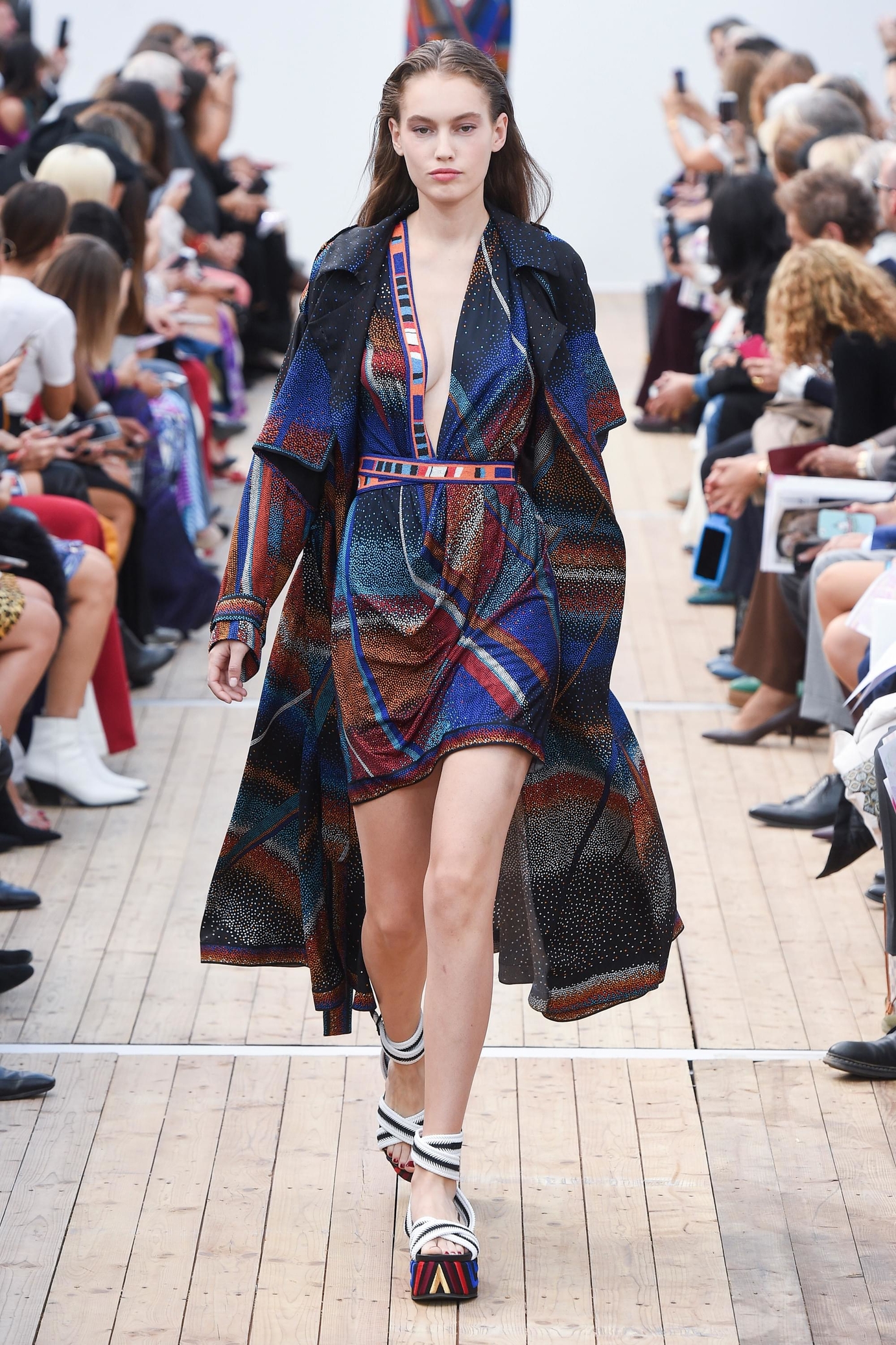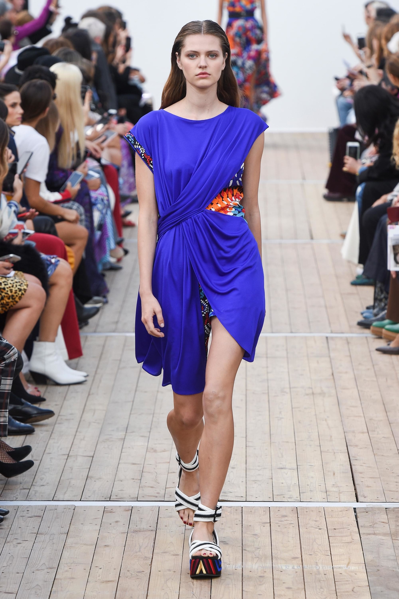 Pour son défilé printemps-été 2019, Leonard Paris – qui célèbre ses 60 ans cette année – nous transporte entre les frontières de la Tanzanie et du Kenya. Un show qui sonne comme une ode au voyage et à l’évasion. Imaginée par Christine Phung, cette collection combine parfaitement le mélange esthétique, entre mode française et inspirations venues d’ailleurs. Un défilé haut en couleur : des drapés, de l’asymétrie, des imprimés qui s’inspirent de la savane du Masai Mara et des tissus de la région. Sandales à plateforme aux pieds, prenez le chemin de la plage avec style !