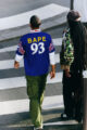Au cœur du vestiaire, deux maillots supporters incarnent cette rencontre. L’un, à manches longues et col classique, se distingue par un imprimé denim et un graphisme BAPESTA affirmé. L’autre revisite un maillot iconique du Japon des années 90, twisté par des flammes signature sur les manches et un marquage « BAPE 93 » au dos.