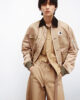 À travers ce dialogue stylistique, la collection affirme l’esthétique hybride propre à sacai, mêlant construction sophistiquée et fonctionnalité utilitaire. Les silhouettes se distinguent par des jeux de surpiqûres contrastées et l’ajout de cols en velours côtelé sur certains modèles, clin d’œil assumé aux racines workwear de Carhartt WIP.