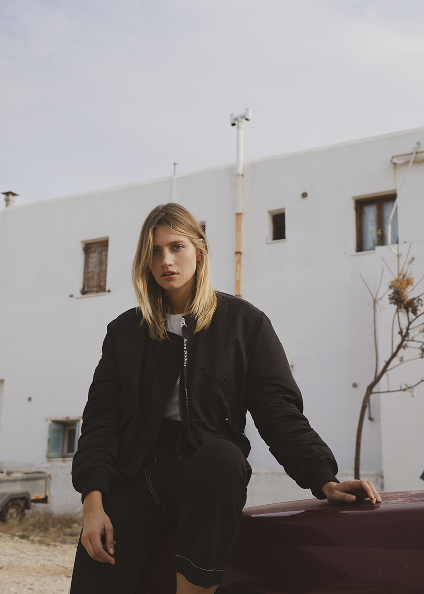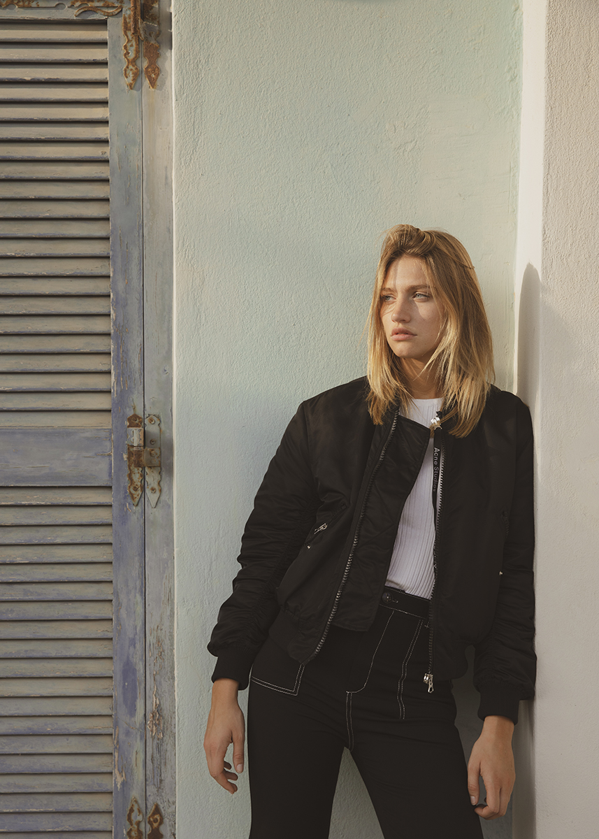 Marine porte : Bomber Acne Studios + Top Zara + Pantalon Bershka
