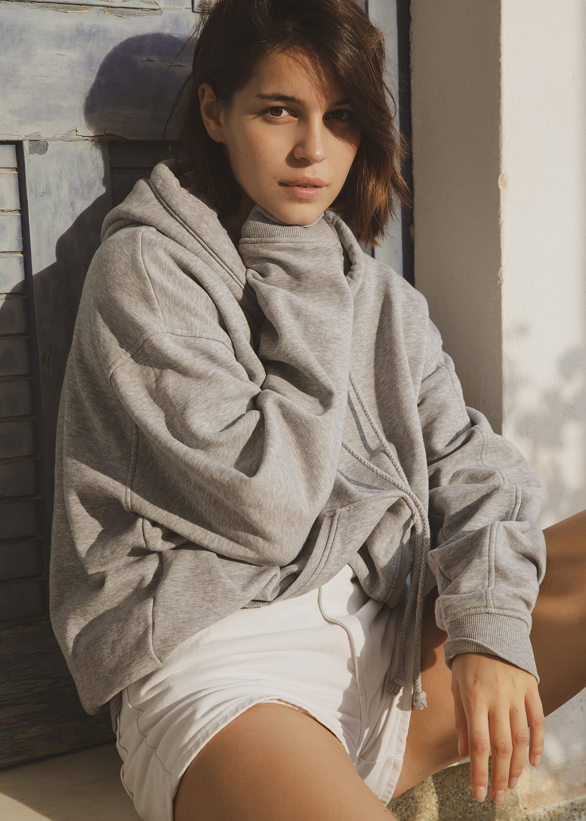 Zoé porte : Sweat vintage + Short vintage + Baskets Arkyn adidas Originals