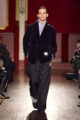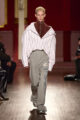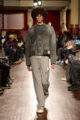 Cette idée de flou se traduit visuellement par un jeu subtil de désalignement et de dissonance. Les silhouettes semblent volontairement déformées : outerwear oversize, mailles reconstruites et pièces assemblées à partir « d’erreurs structurelles » deviennent les marqueurs d’un vestiaire à la fois familier et étrange. Fidèle à son approche expérimentale, Mihara Yasuhiro transforme l’irrégularité en langage poétique, révélant une douceur cachée dans des formes apparemment instables.